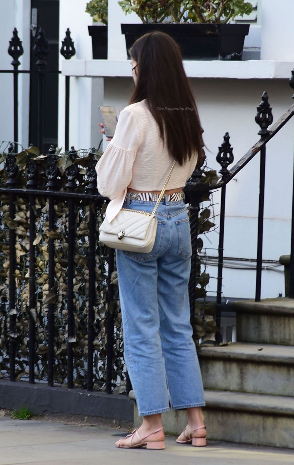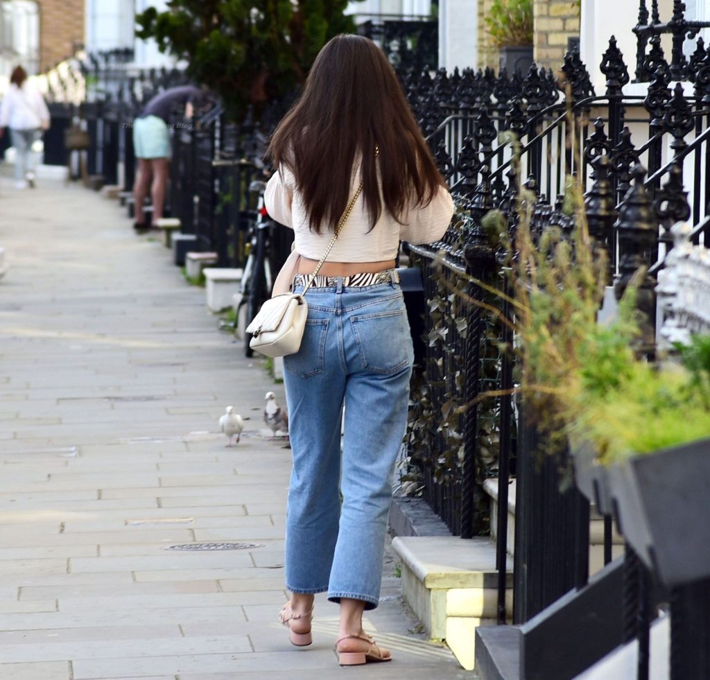 La actriz y modelo británica Amy Jackson, conocida principalmente por su trabajo en películas indias, fue vista luciendo sexy y estilosa con su blusa blanca y jeans en Chelsea, 03/39/2021.