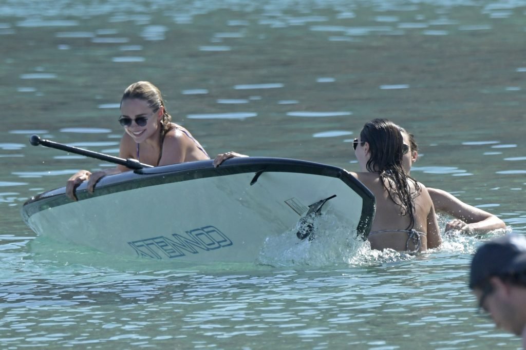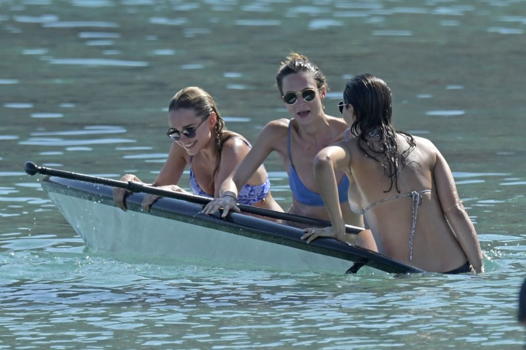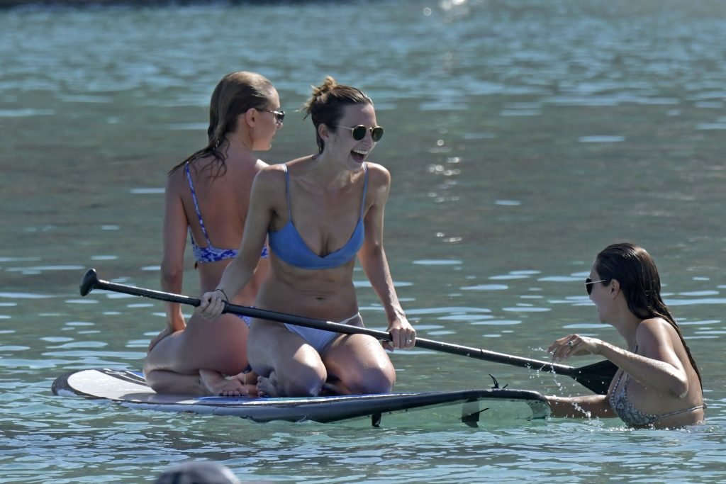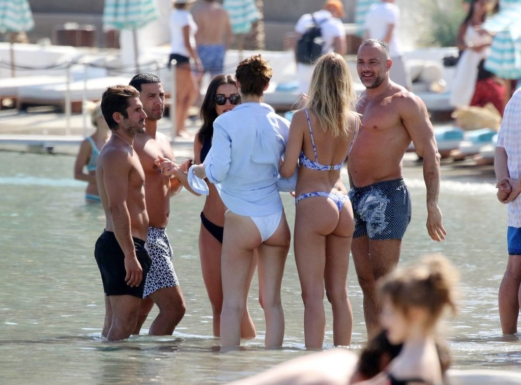 Amy Jackson, Kimberley Garner fueron vistas en la playa mientras estaban de vacaciones con Alice Jeffrey y otros amigos en Grecia, 13/06/2018.