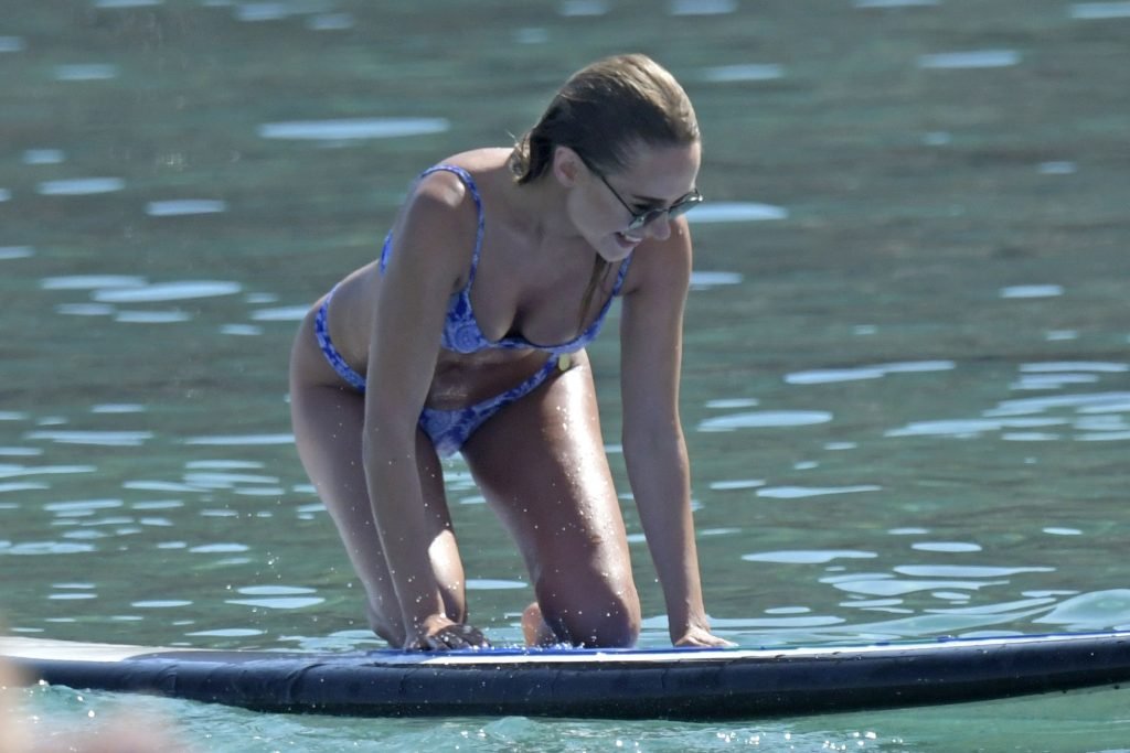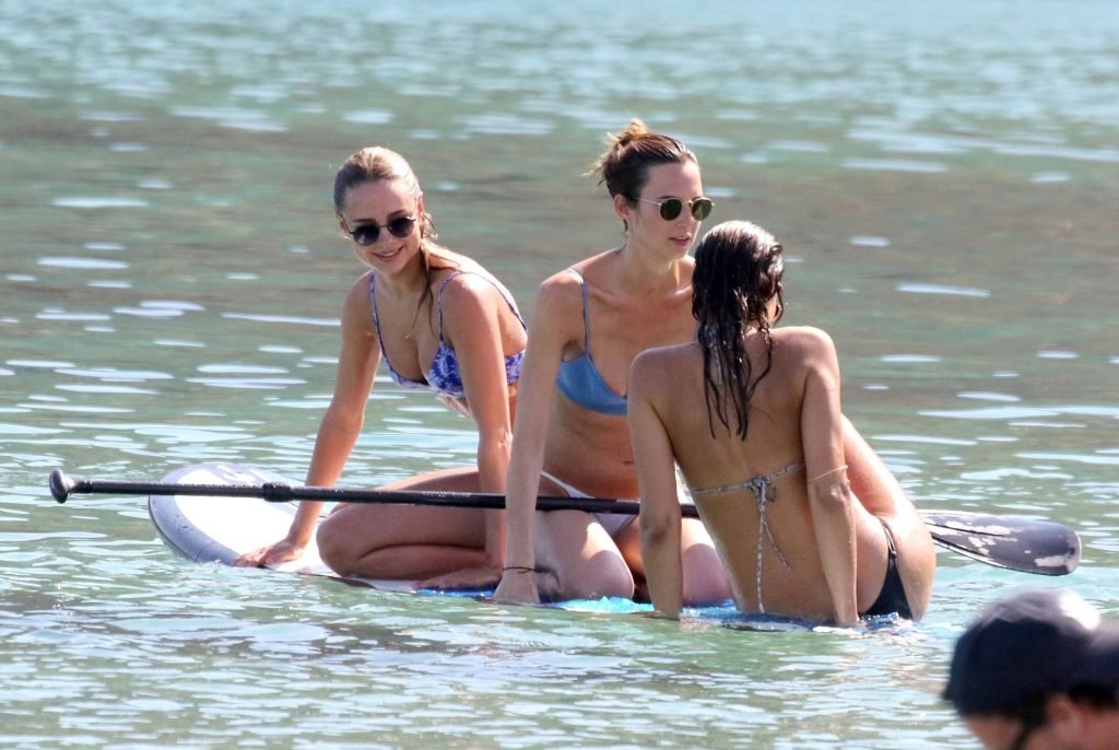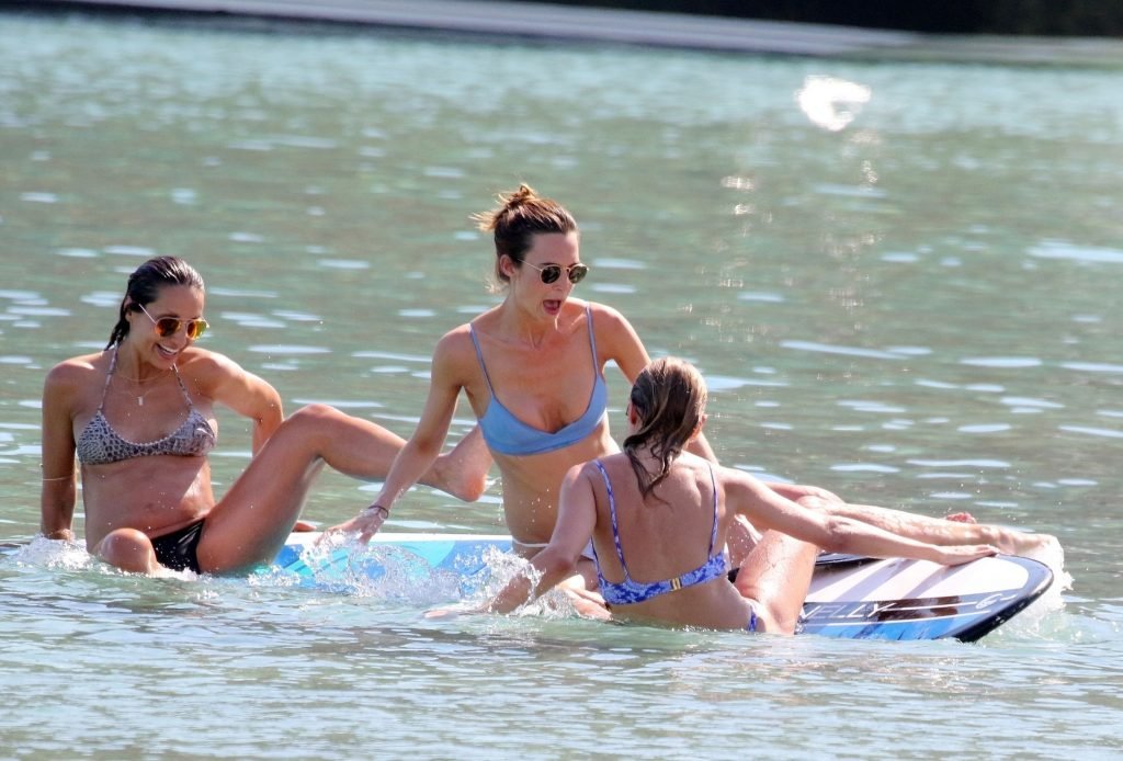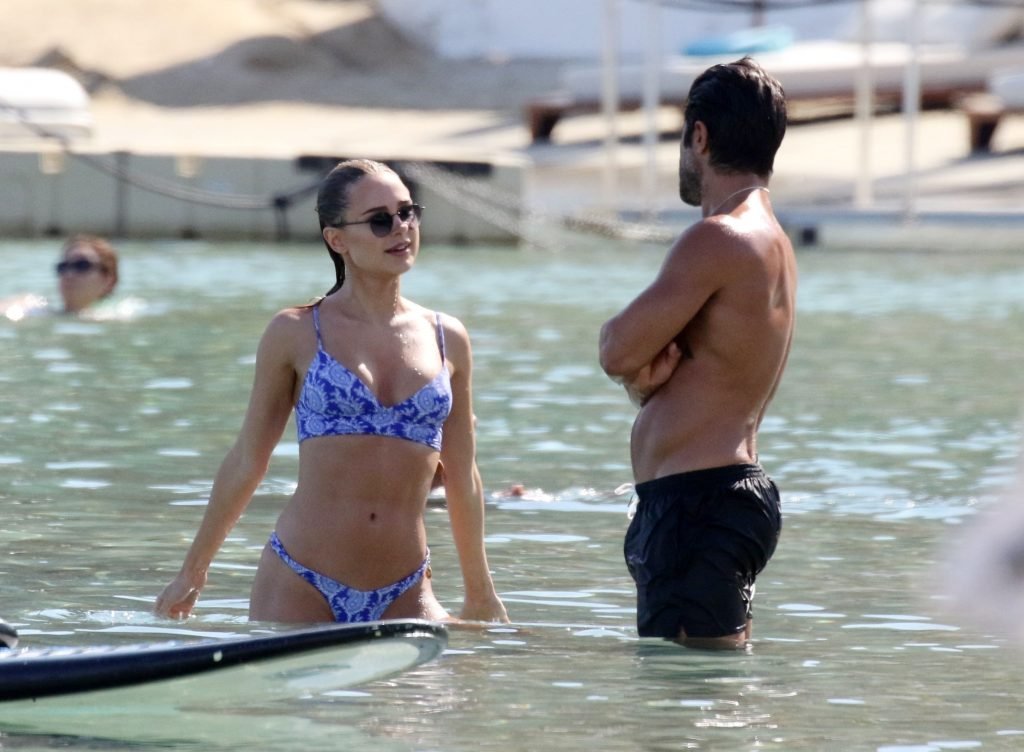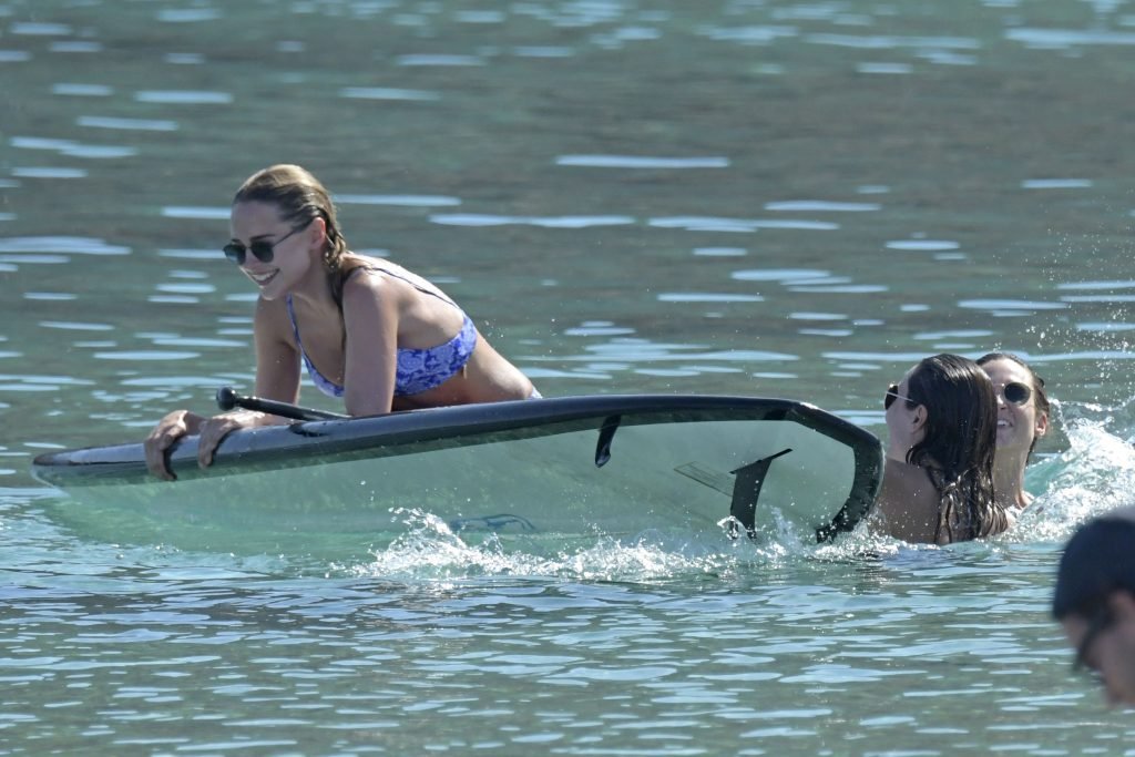 Amy Jackson, Kimberley Garner fueron vistas en la playa mientras estaban de vacaciones con Alice Jeffrey y otros amigos en Grecia, 13/06/2018.
