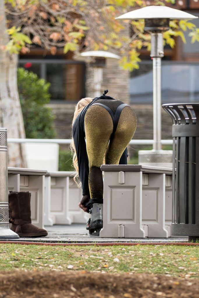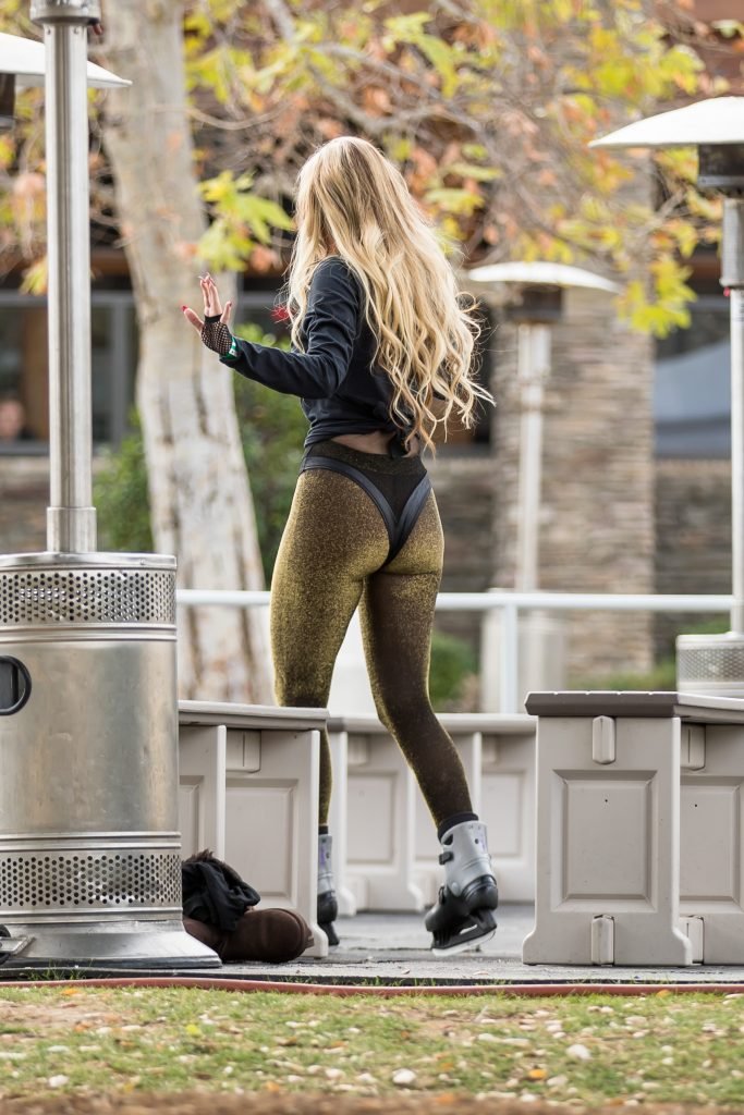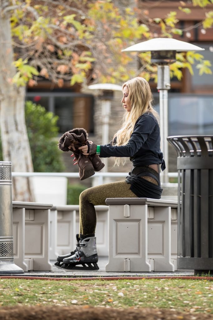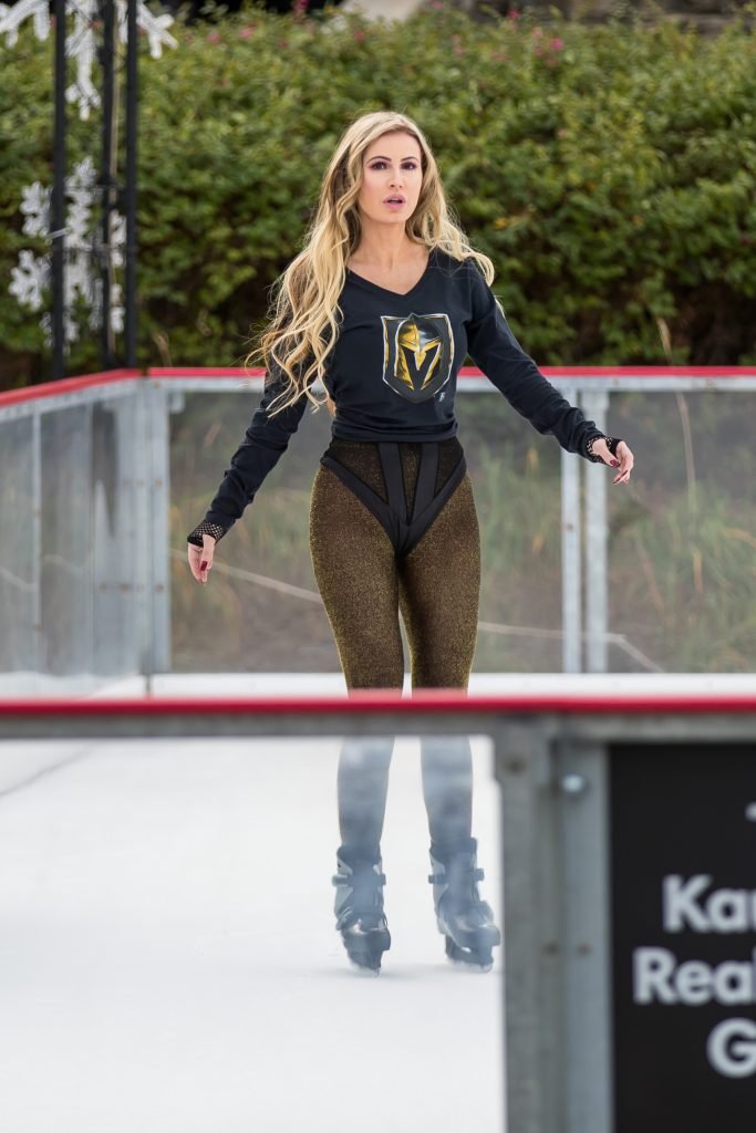 Ana Braga se ve usando una camiseta de los Vegas Golden Knights mientras patina sobre hielo en Calabasas, 30/01/2018. Ana Braga es una modelo nacida en Brasil. Edad – 36.