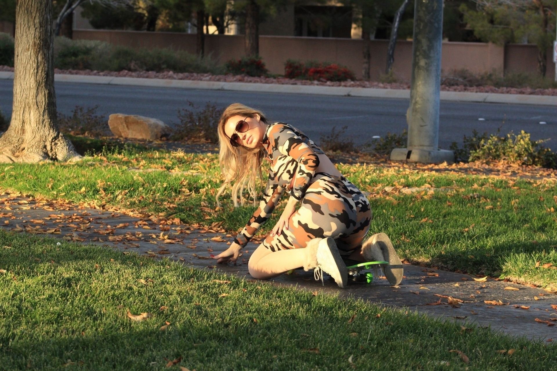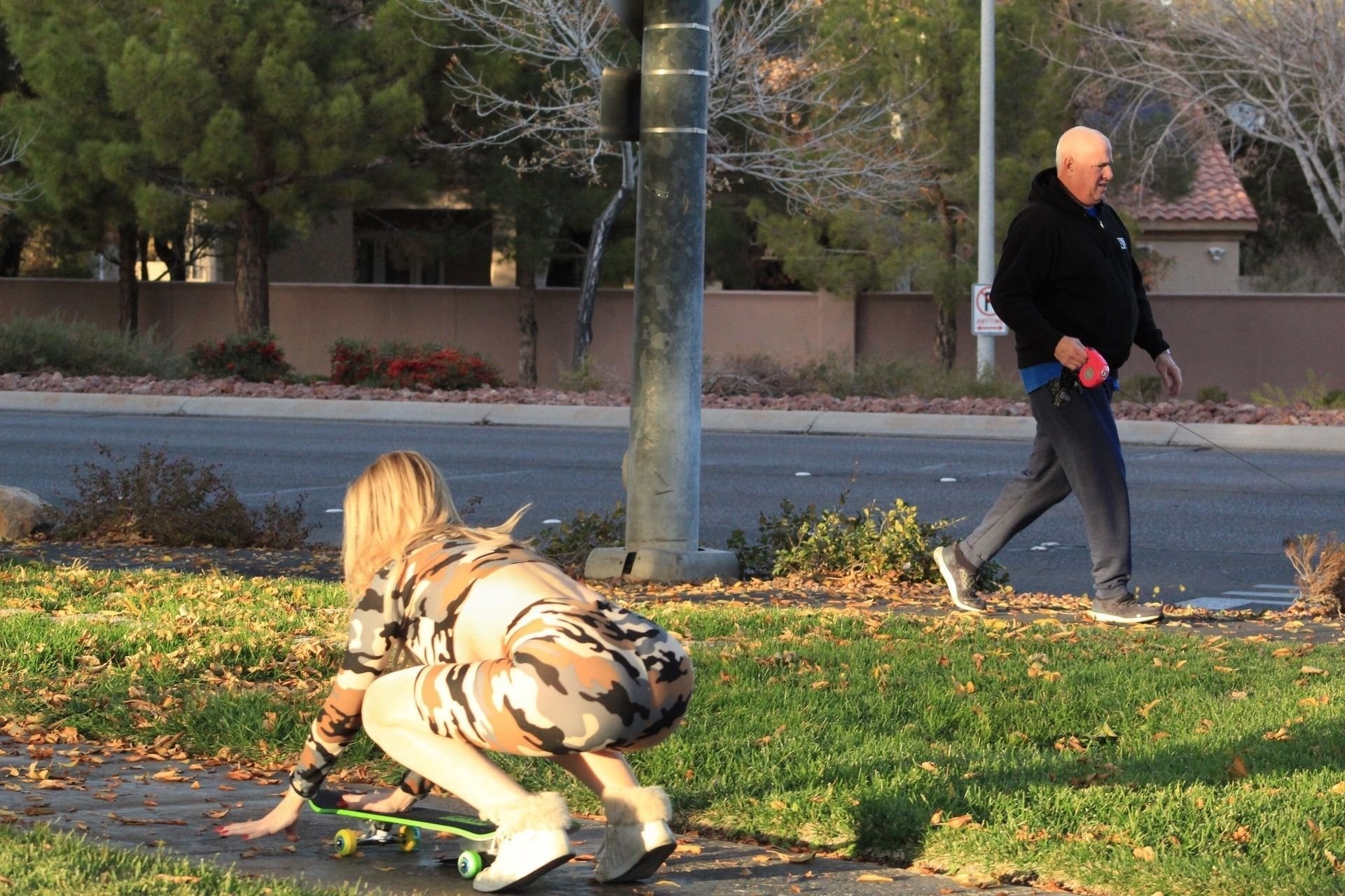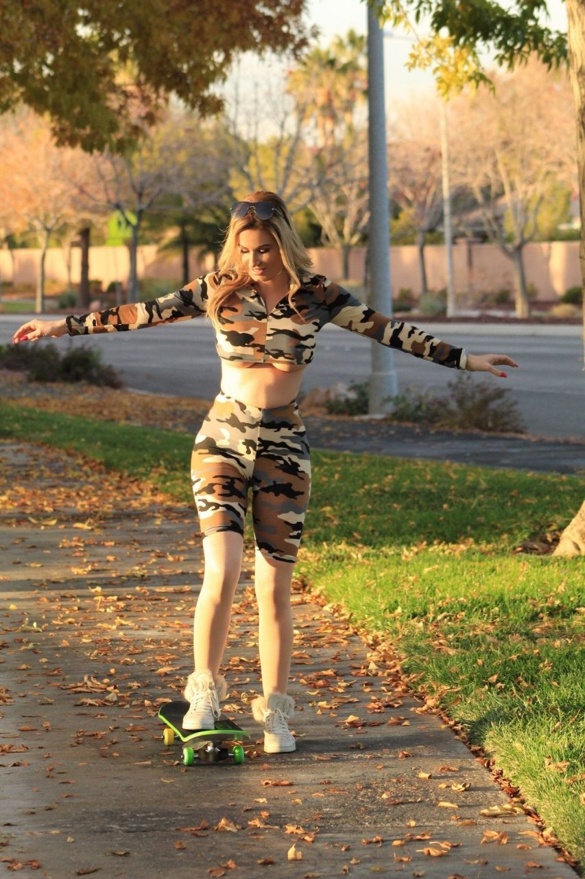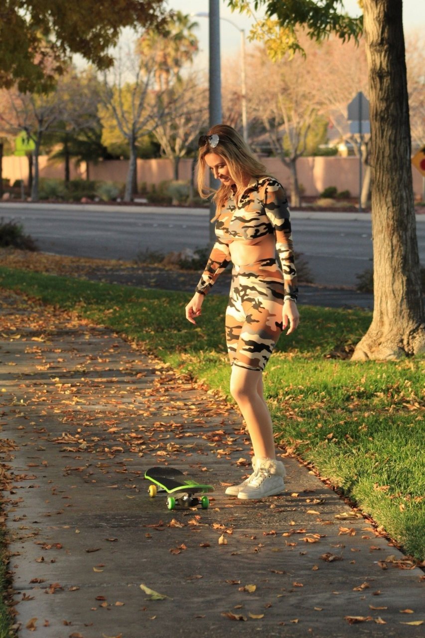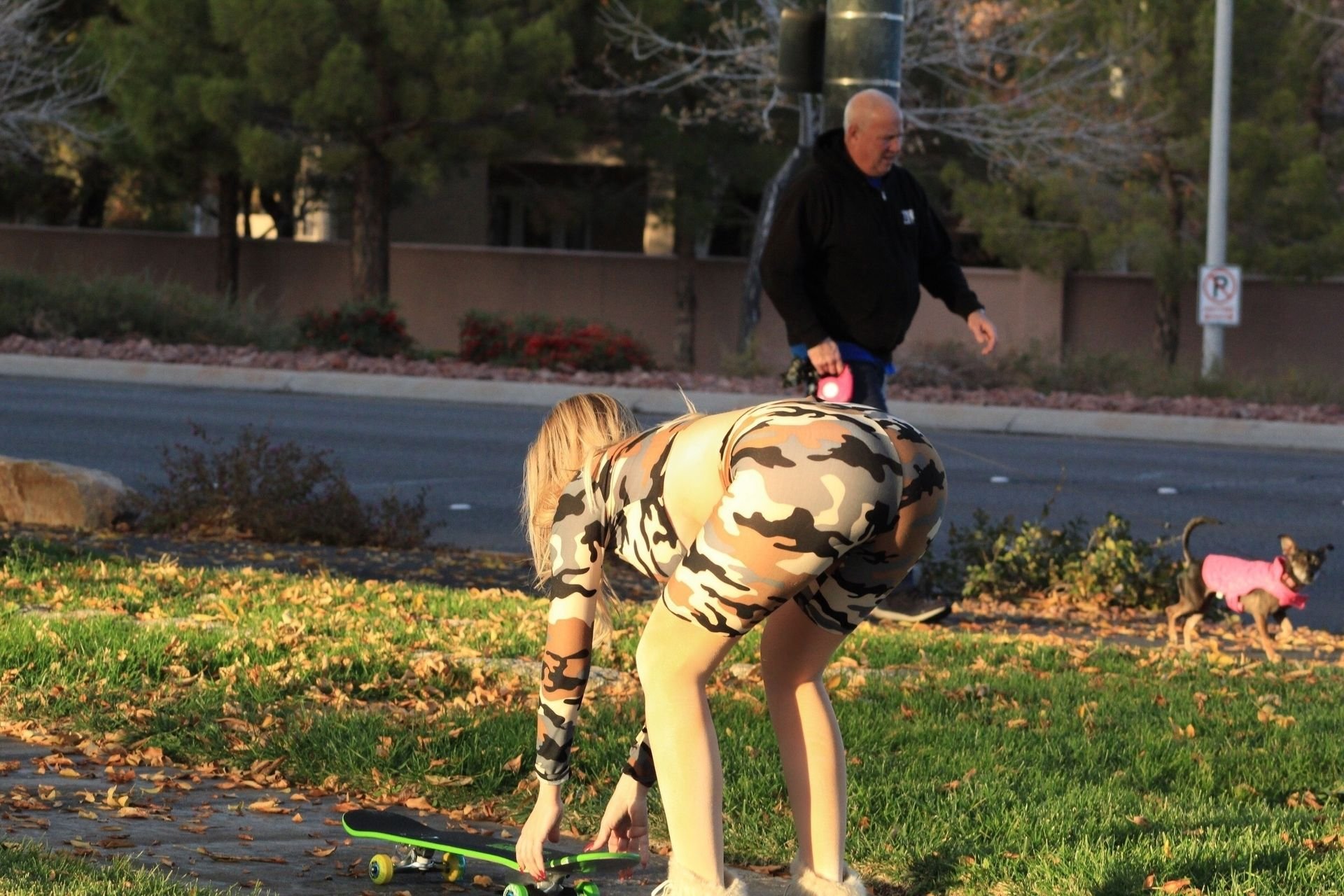 La modelo brasileña y reina del underboob Ana Braga fue vista patinando mientras hacía una declaración de moda en Calabasas, 20/02/2019.