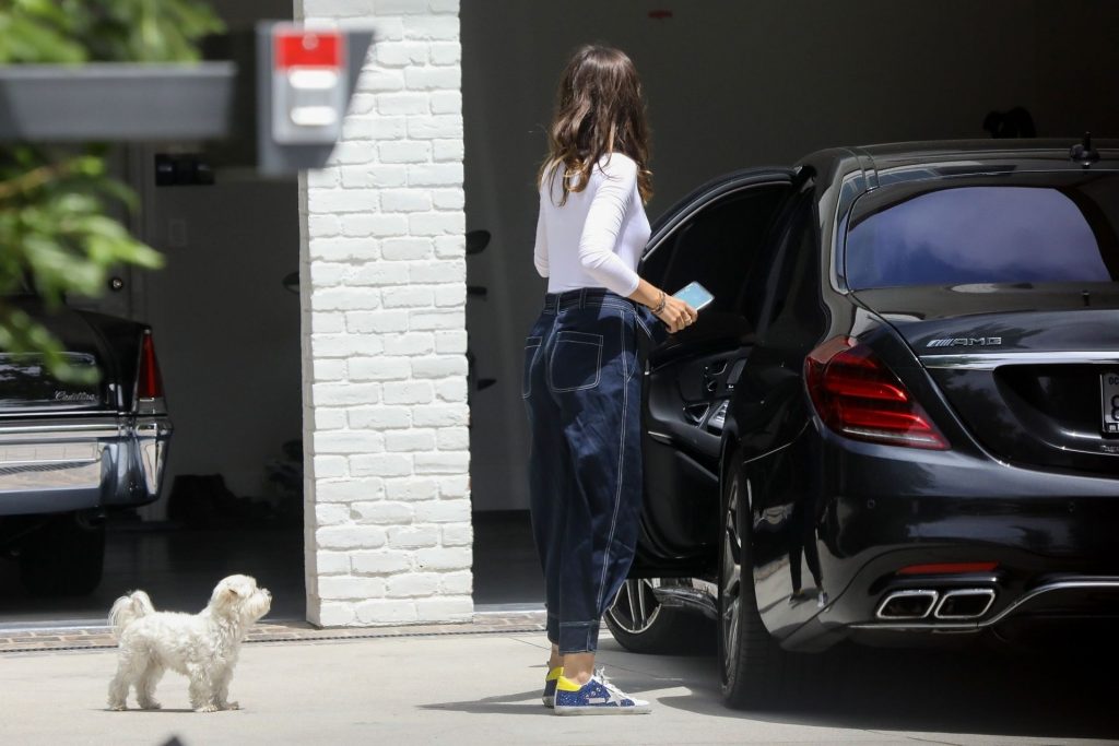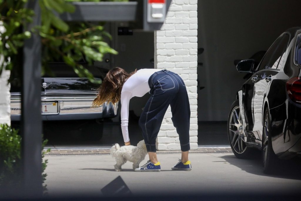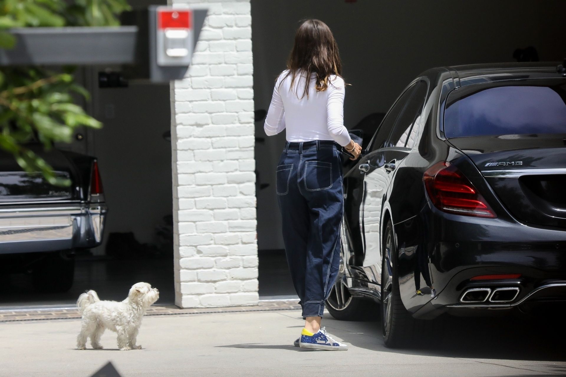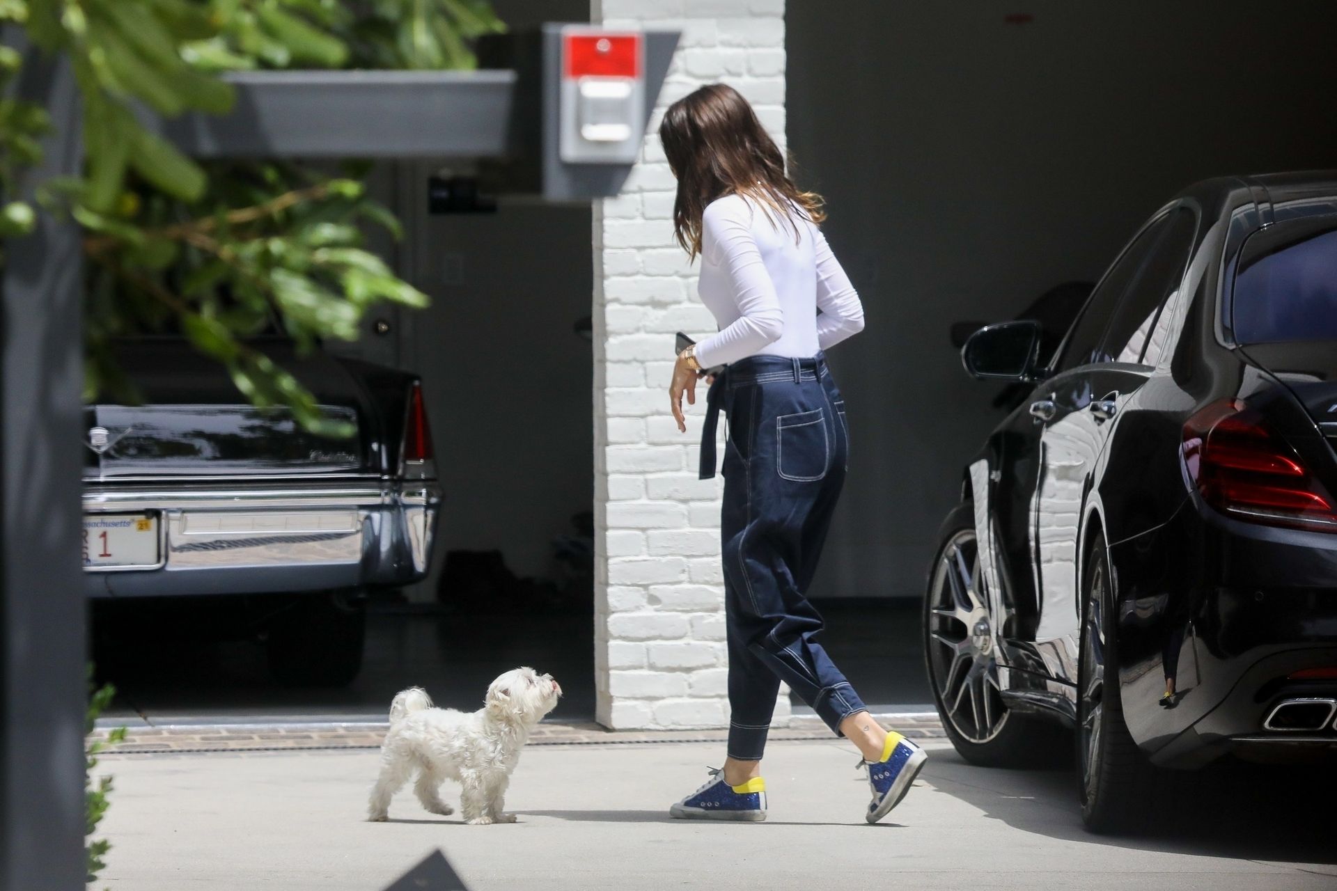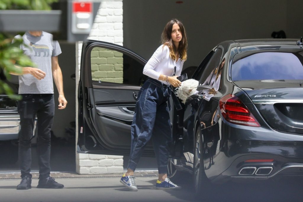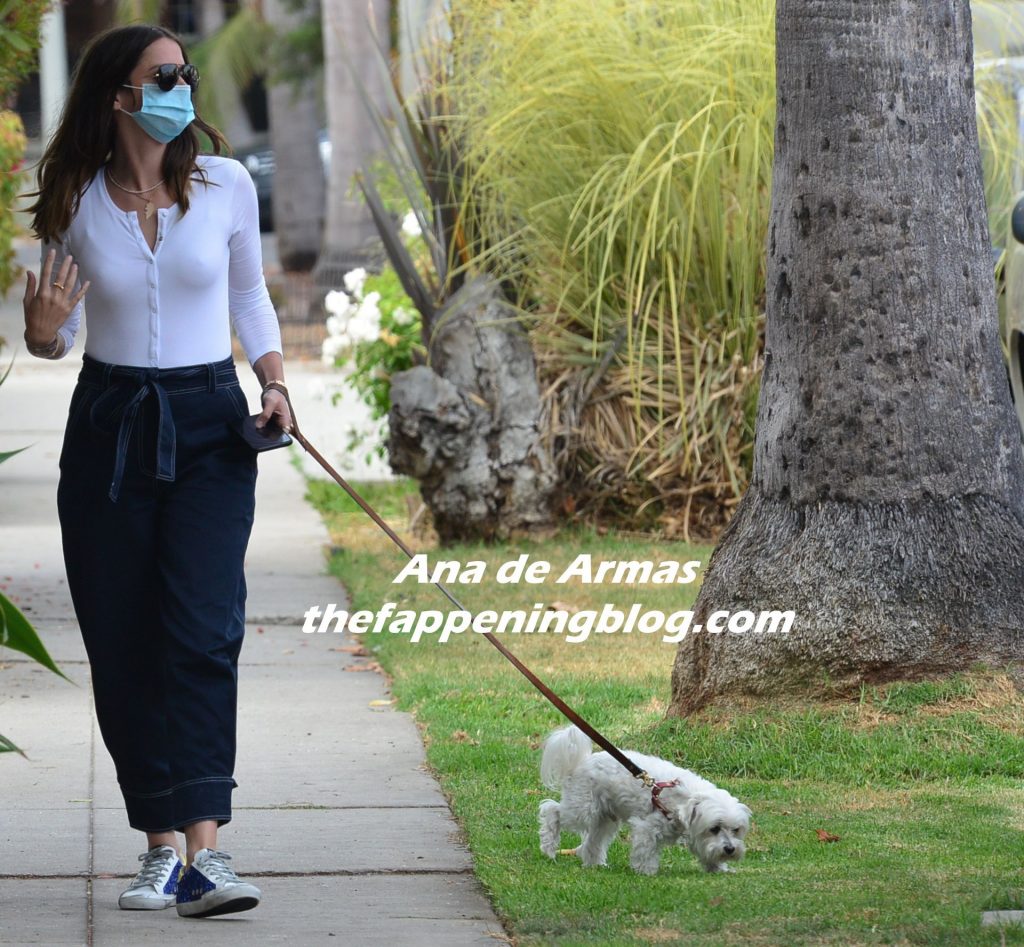 Actriz Ana de Armas llega a la casa de Brentwood de Ben Affleck con su perro. Ana luce linda y casual con un denim holgado y una camiseta blanca para su visita a su amado, 22/07/2020.