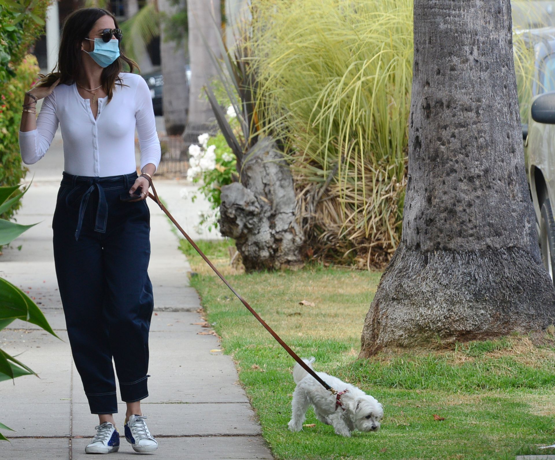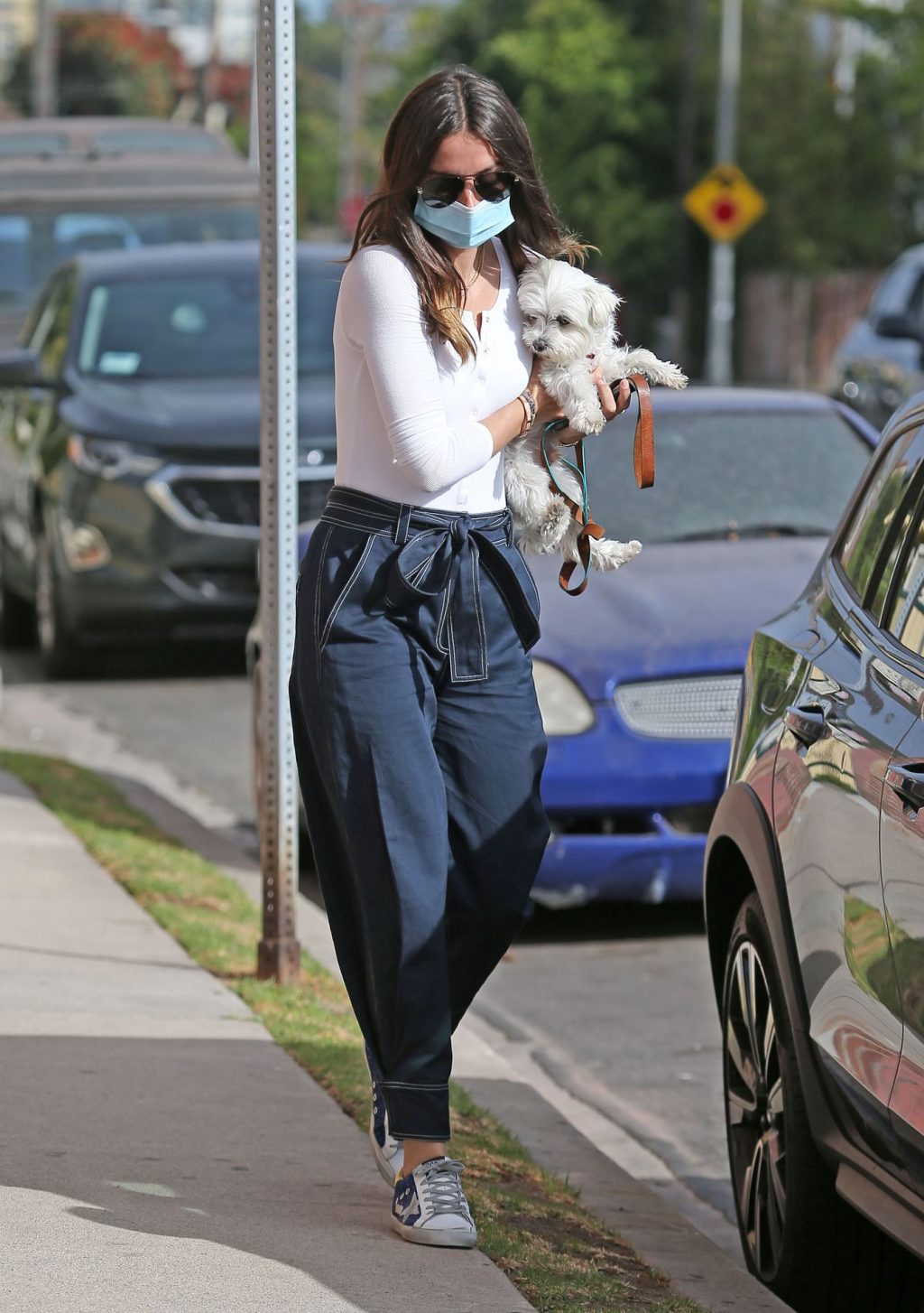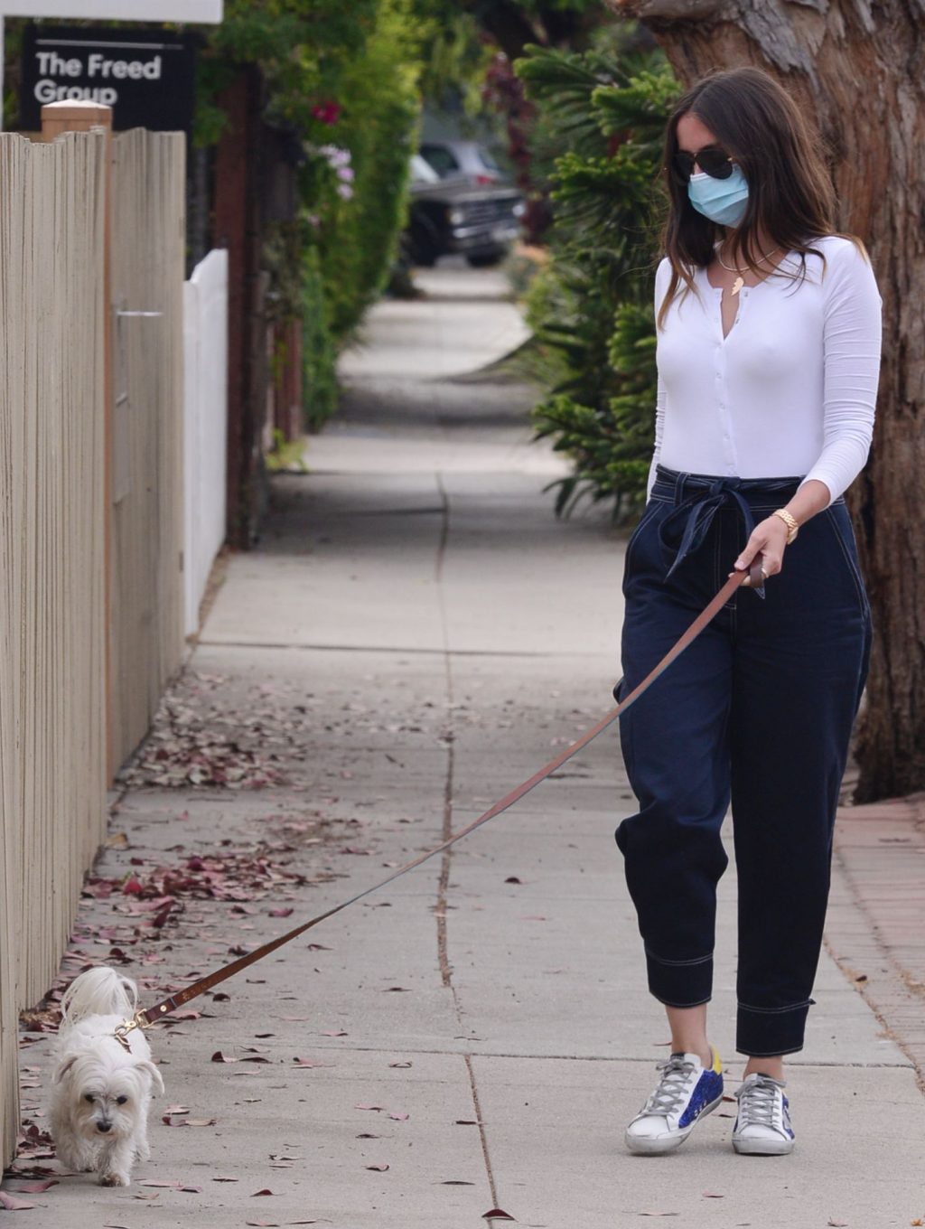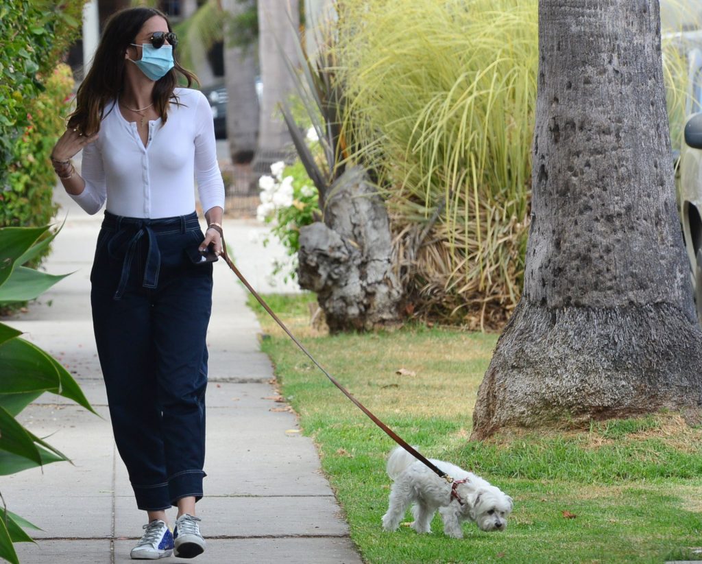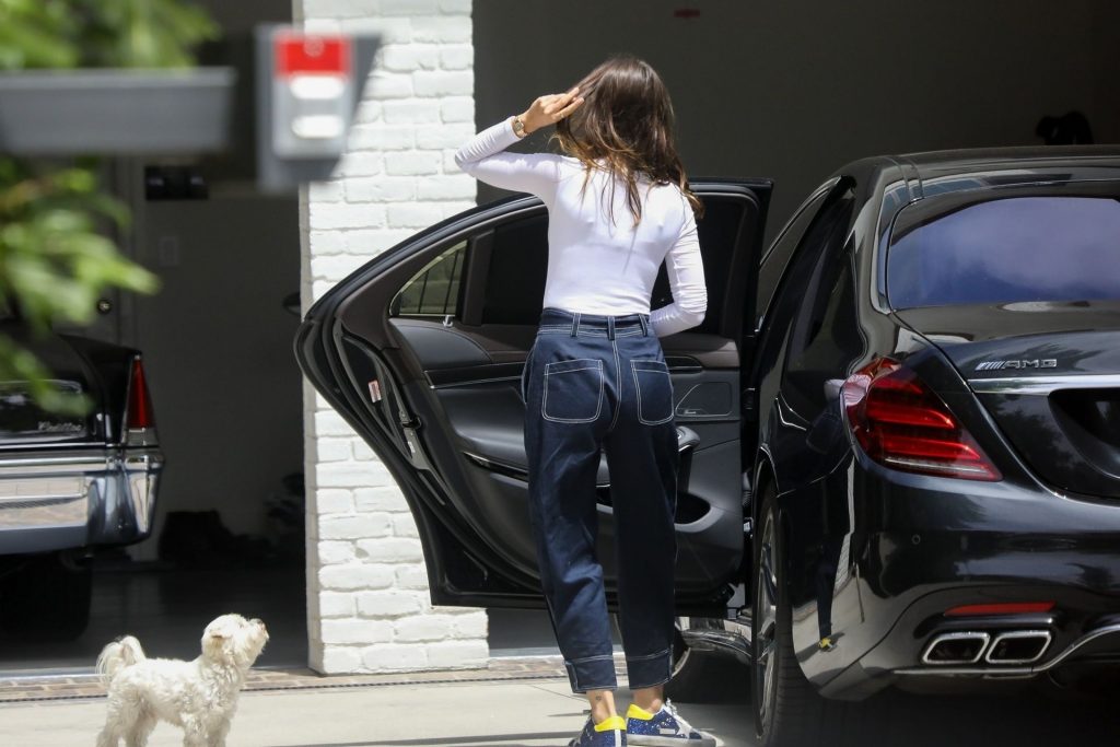 Actriz Ana de Armas llega a la casa de Brentwood de Ben Affleck con su perro. Ana luce linda y casual con un denim holgado y una camiseta blanca para su visita a su amado, 22/07/2020.