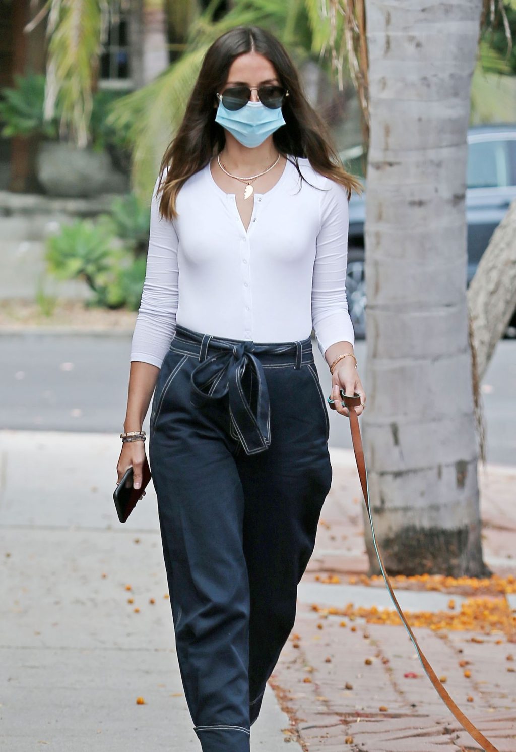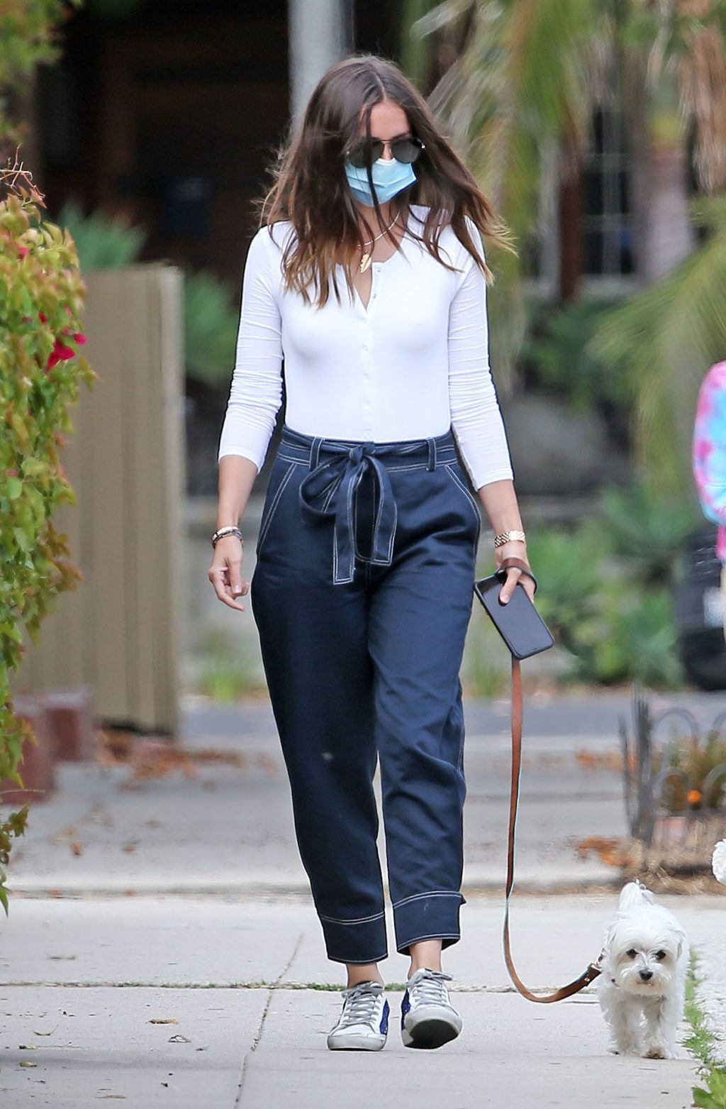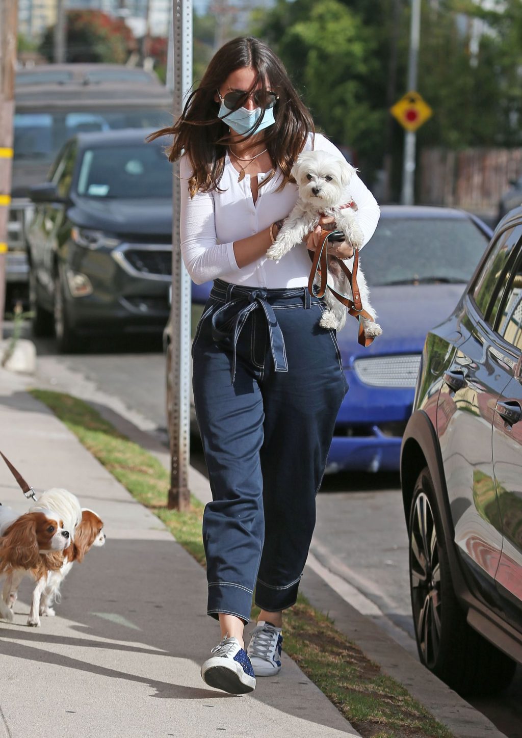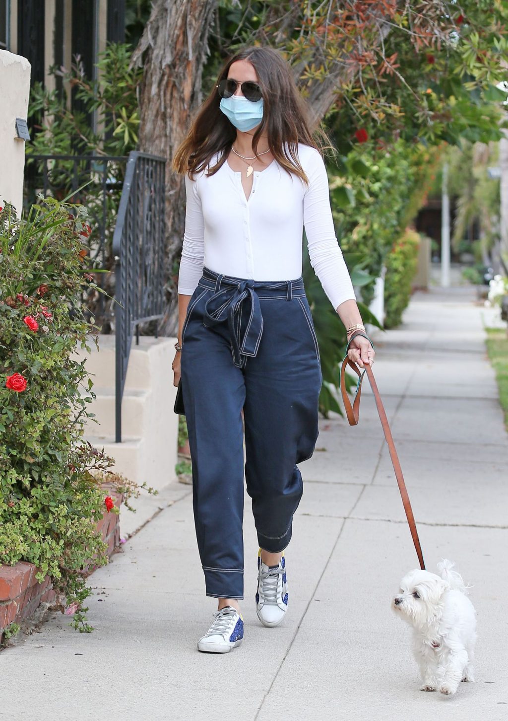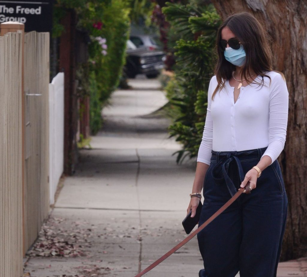 Actriz Ana de Armas llega a la casa de Brentwood de Ben Affleck con su perro. Ana luce linda y casual con un denim holgado y una camiseta blanca para su visita a su amado, 22/07/2020.
