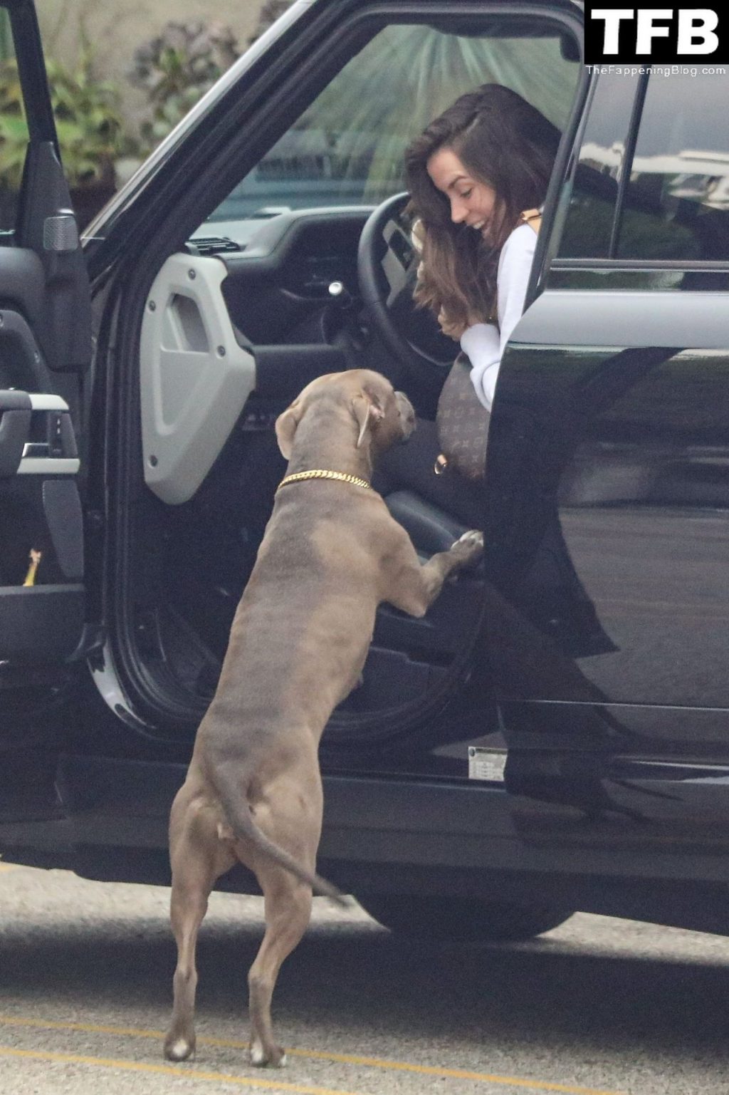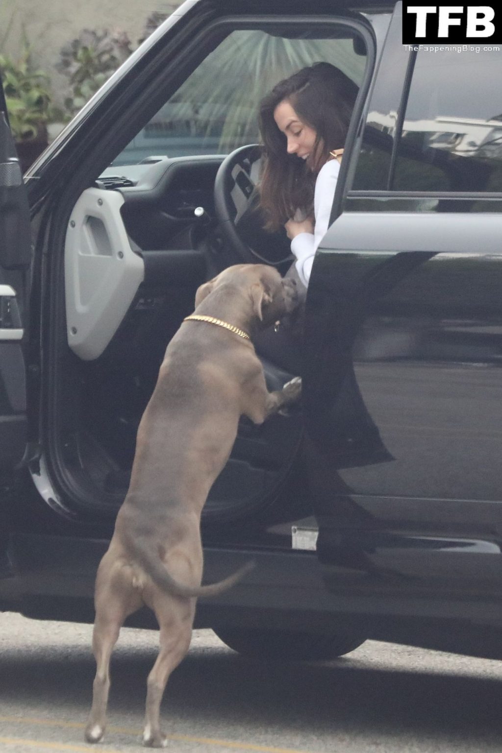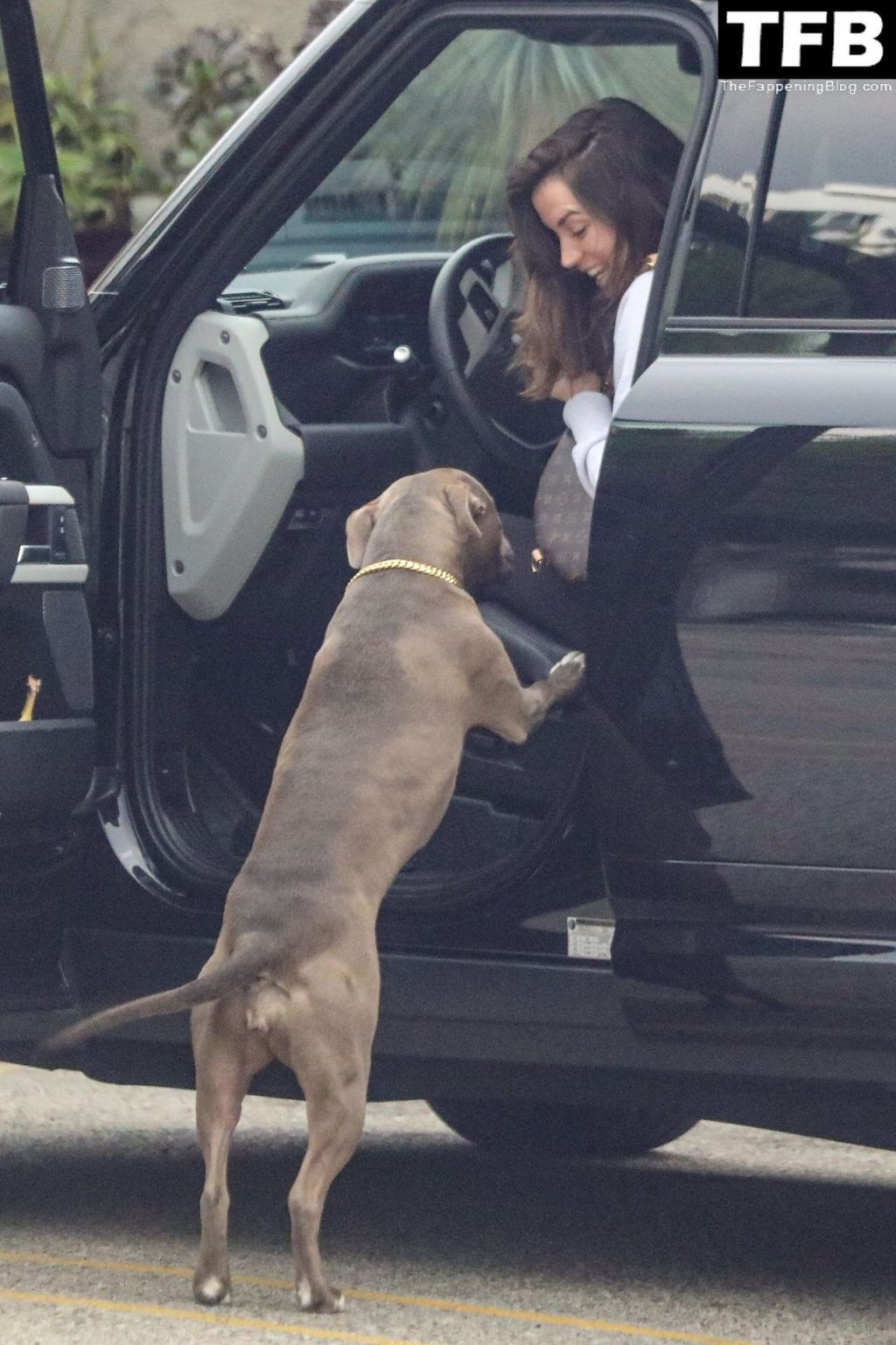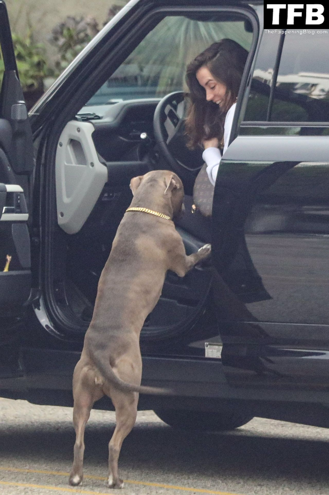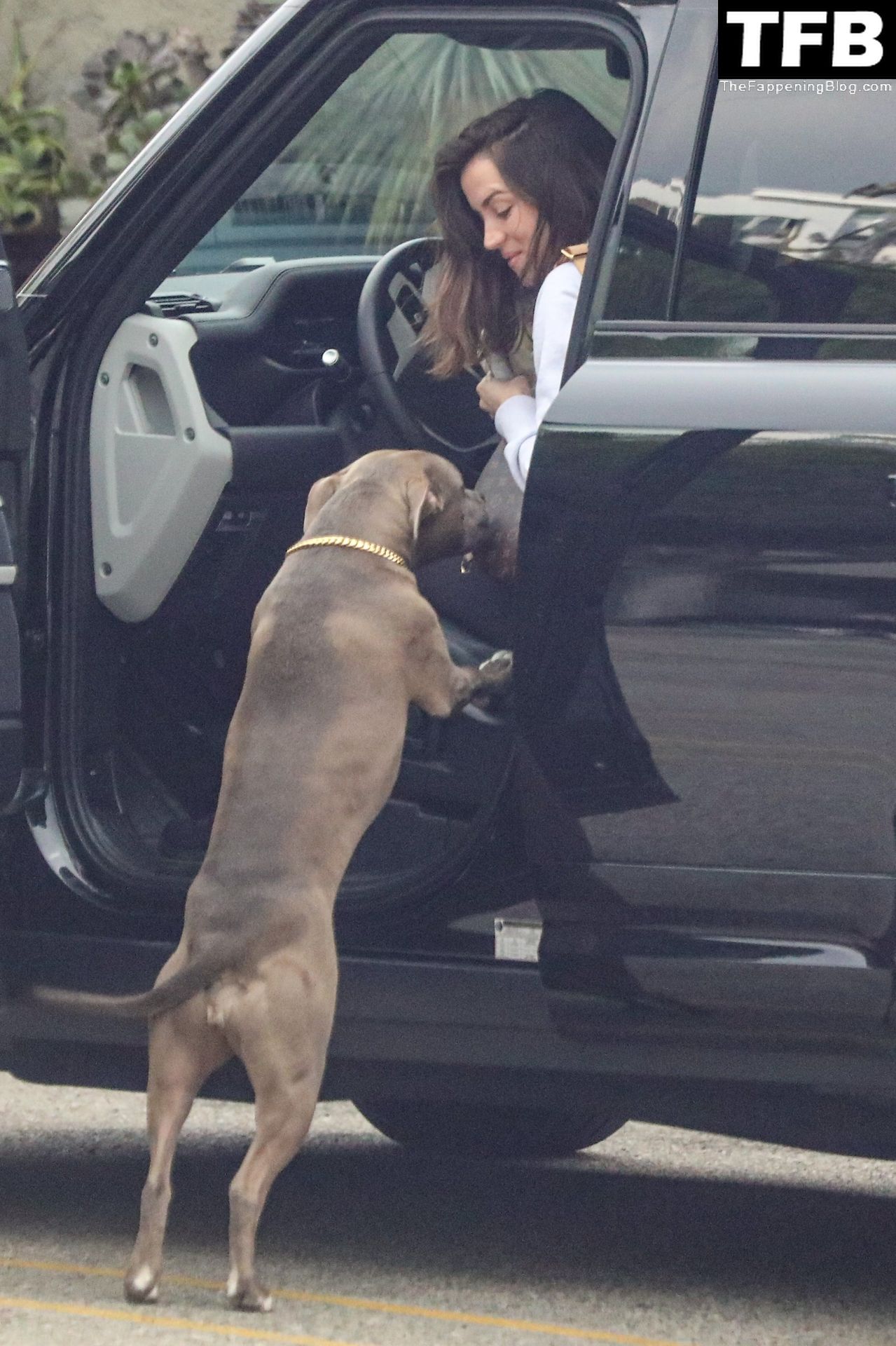Actriz Ana de Armas llega a la casa de una amiga en Santa Mónica y la estrella de acción es recibida inmediatamente por el pitbull de su amiga al abrir la puerta de su coche, 25/01/2022. Por lo que se ve, Ana está completamente enamorada del perro, compartiendo una cálida sonrisa al salir de su vehículo.
