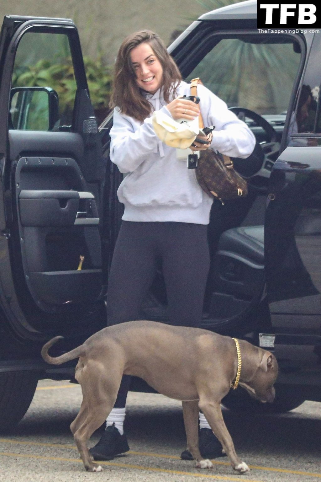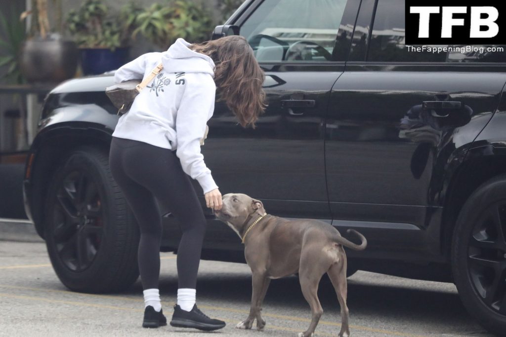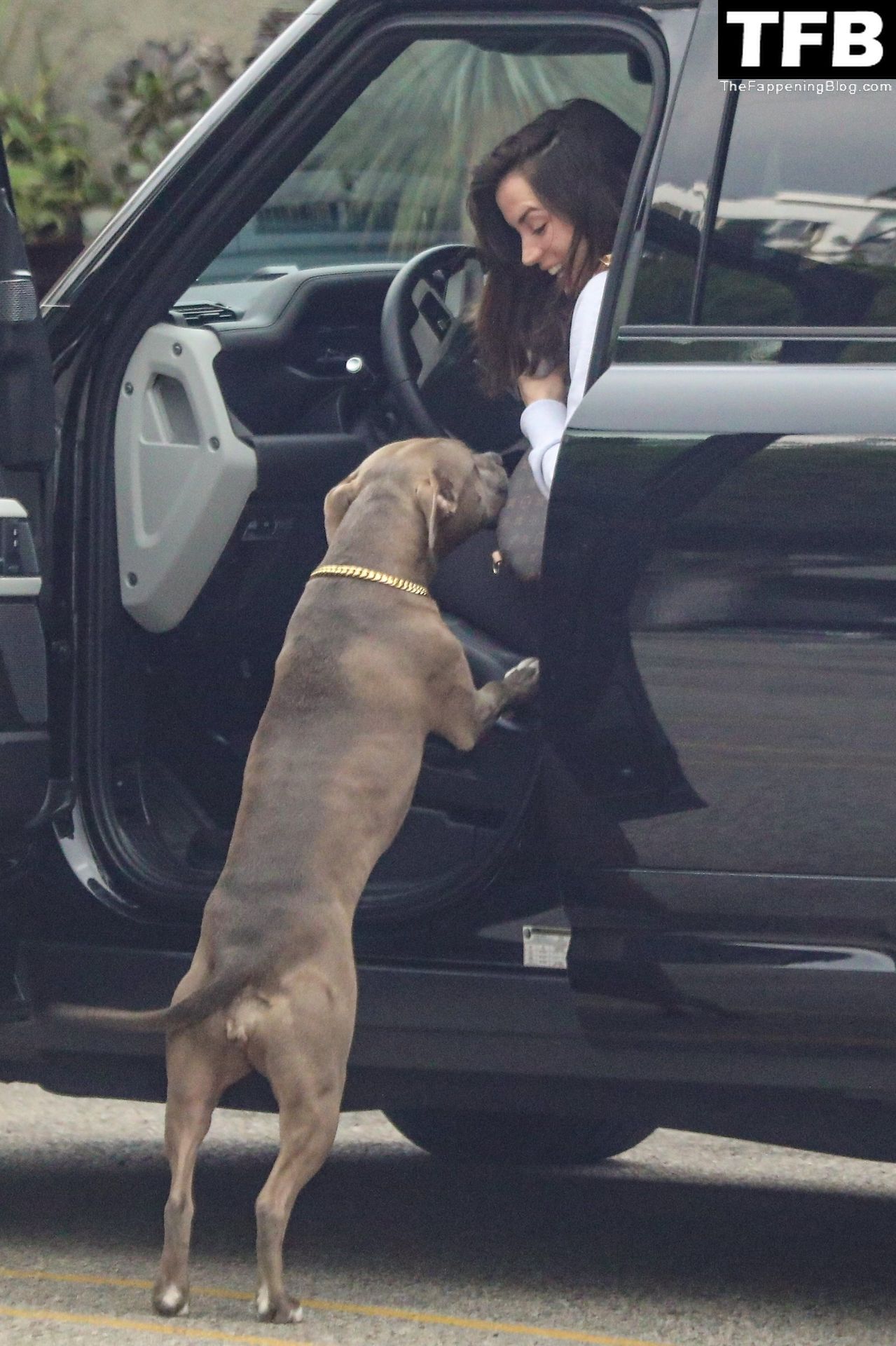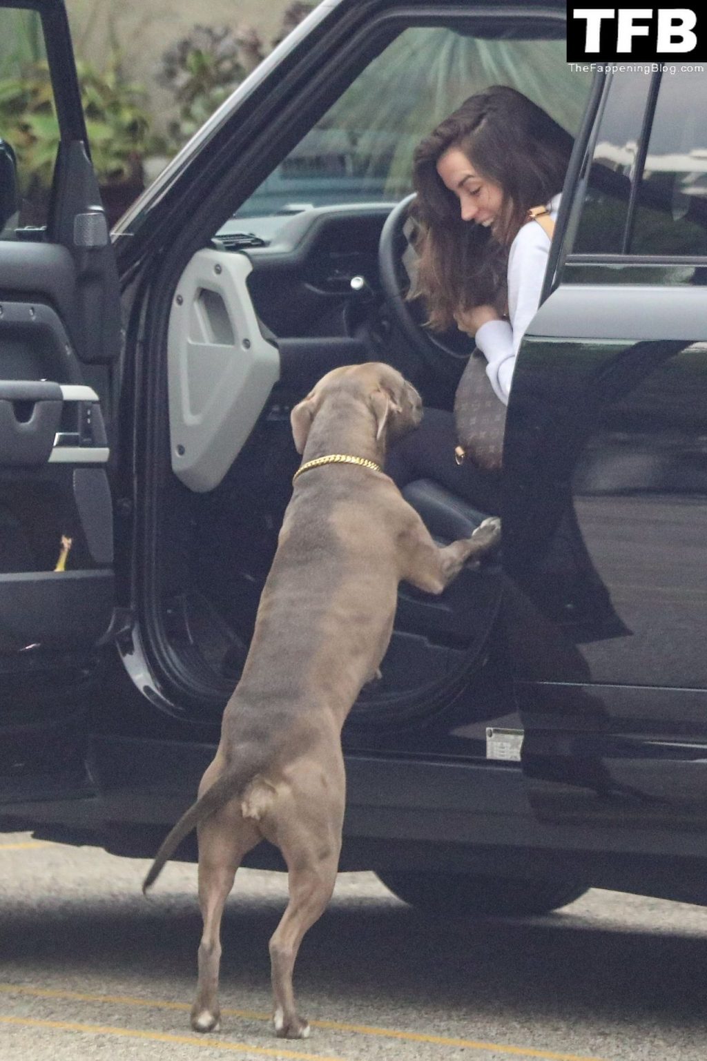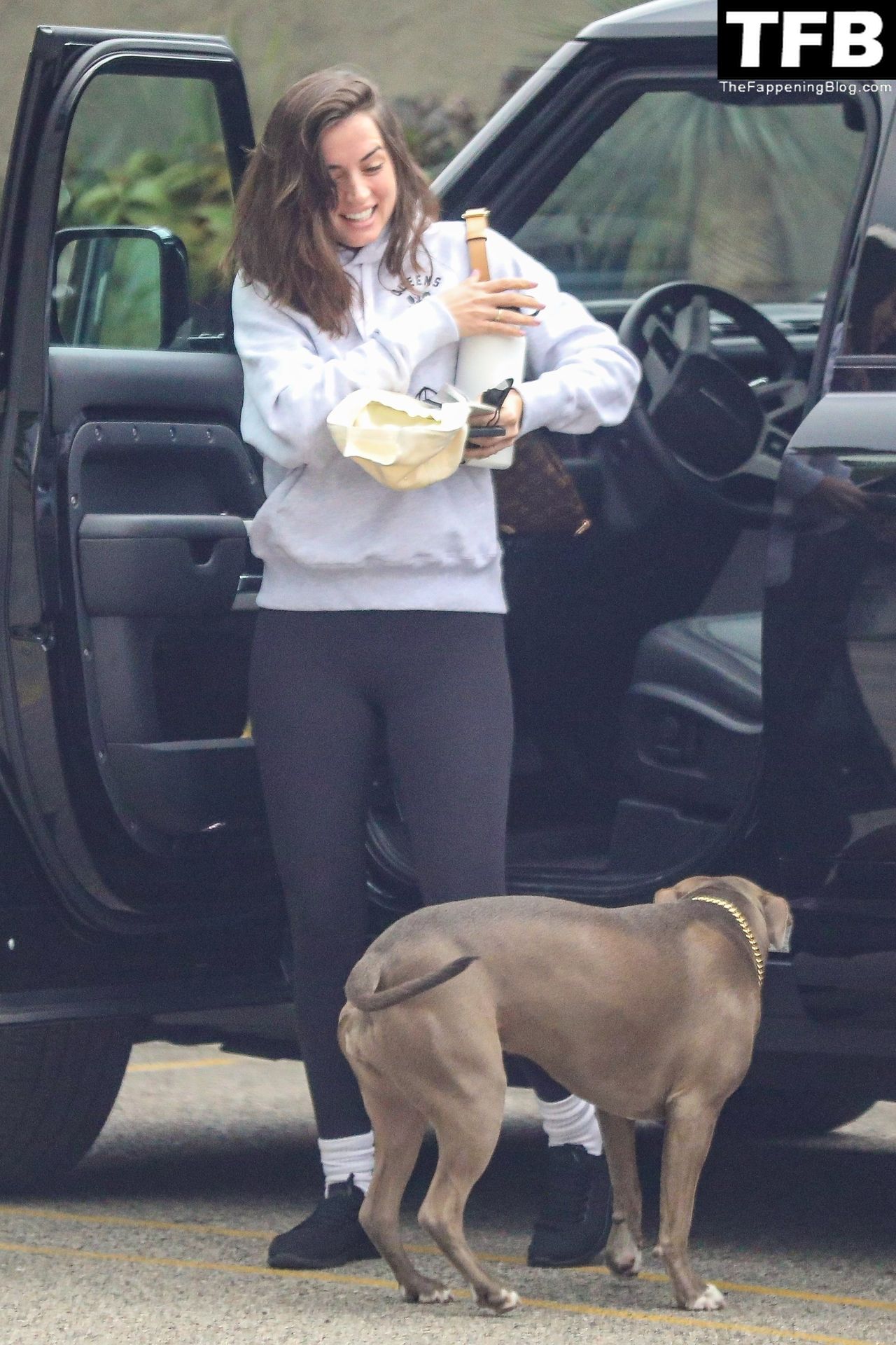 Actriz Ana de Armas llega a la casa de una amiga en Santa Mónica y la estrella de acción es recibida inmediatamente por el pitbull de su amiga al abrir la puerta de su coche, 25/01/2022. Por lo que se ve, Ana está completamente enamorada del perro, compartiendo una cálida sonrisa al salir de su vehículo.