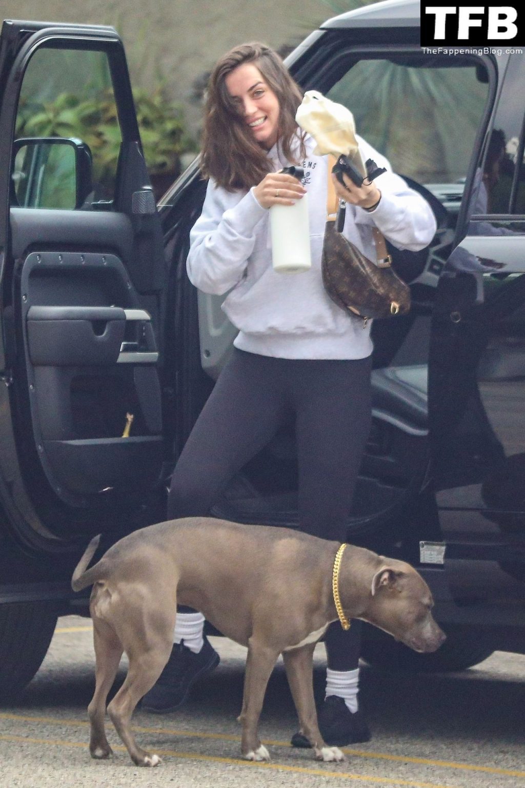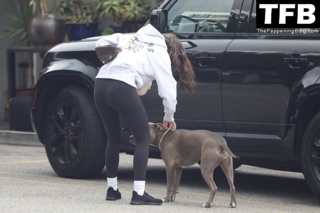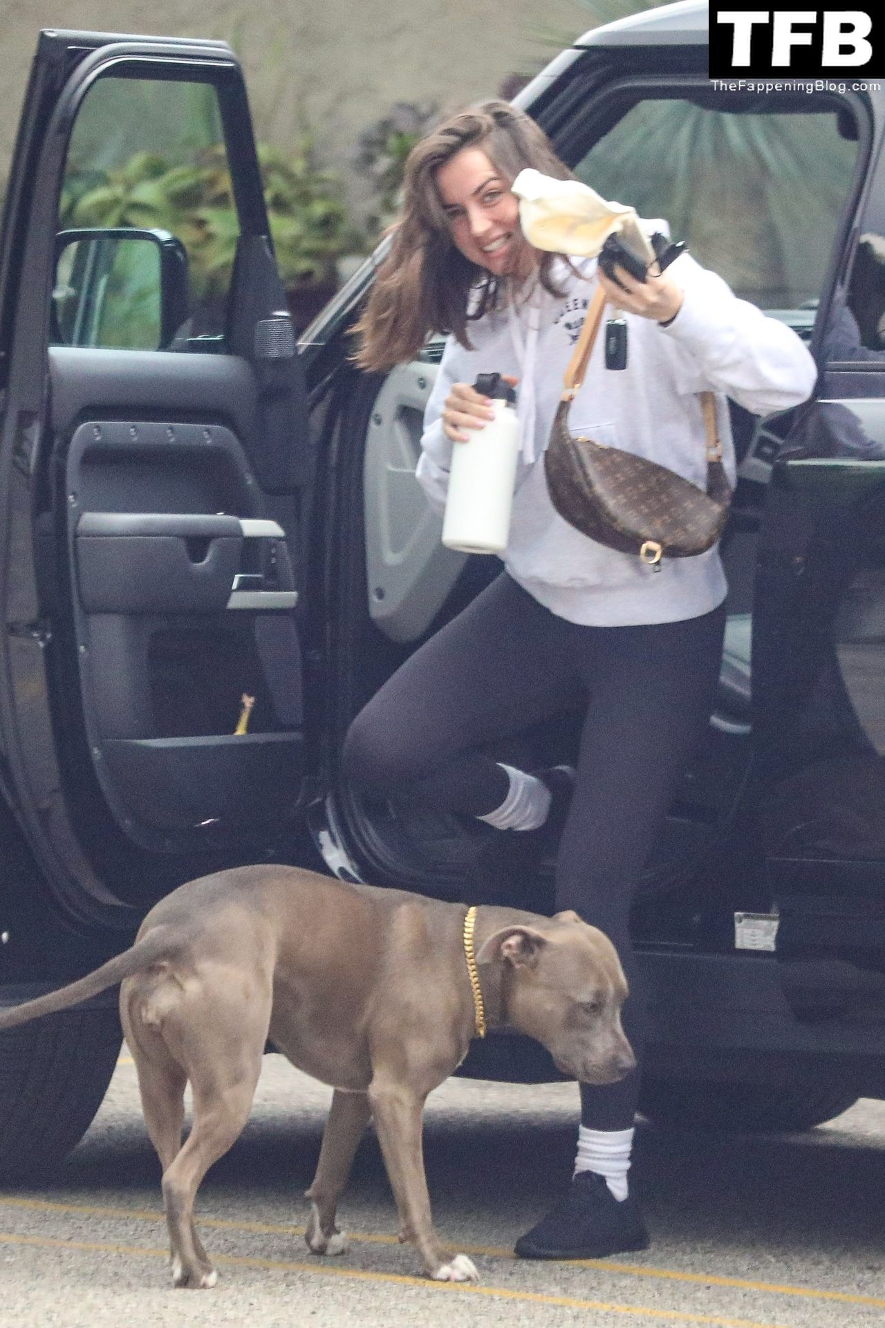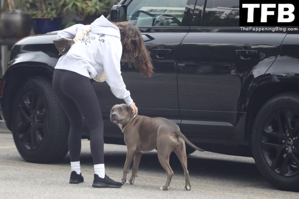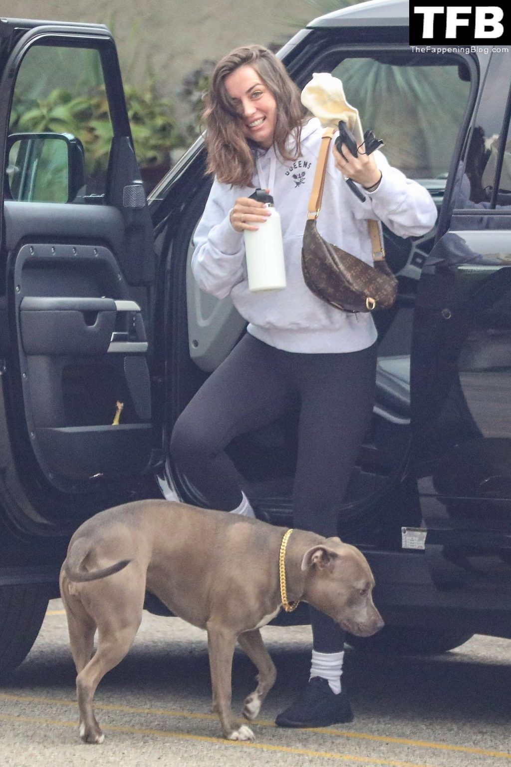 Actriz Ana de Armas llega a la casa de una amiga en Santa Mónica y la estrella de acción es recibida inmediatamente por el pitbull de su amiga al abrir la puerta de su coche, 25/01/2022. Por lo que se ve, Ana está completamente enamorada del perro, compartiendo una cálida sonrisa al salir de su vehículo.