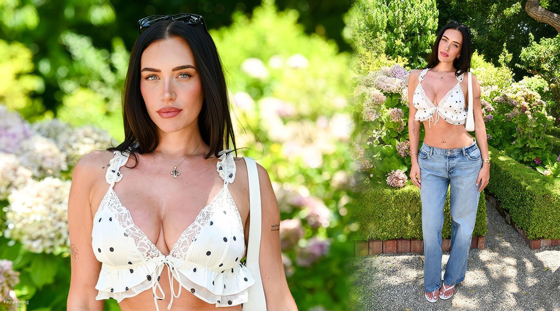 Los pechos de Anastasia Karanikolaou dominaron en LA, desbordándose de ese bralette de lunares en el almuerzo veraniego de Sydney Carlson.