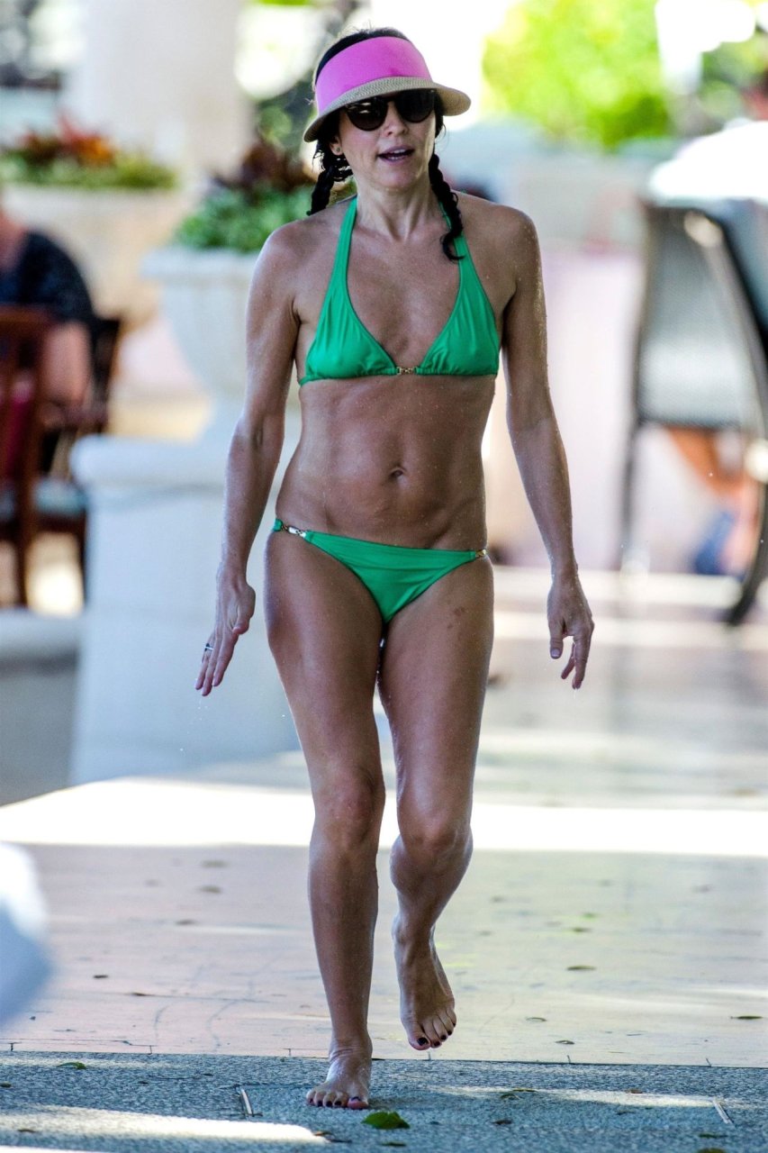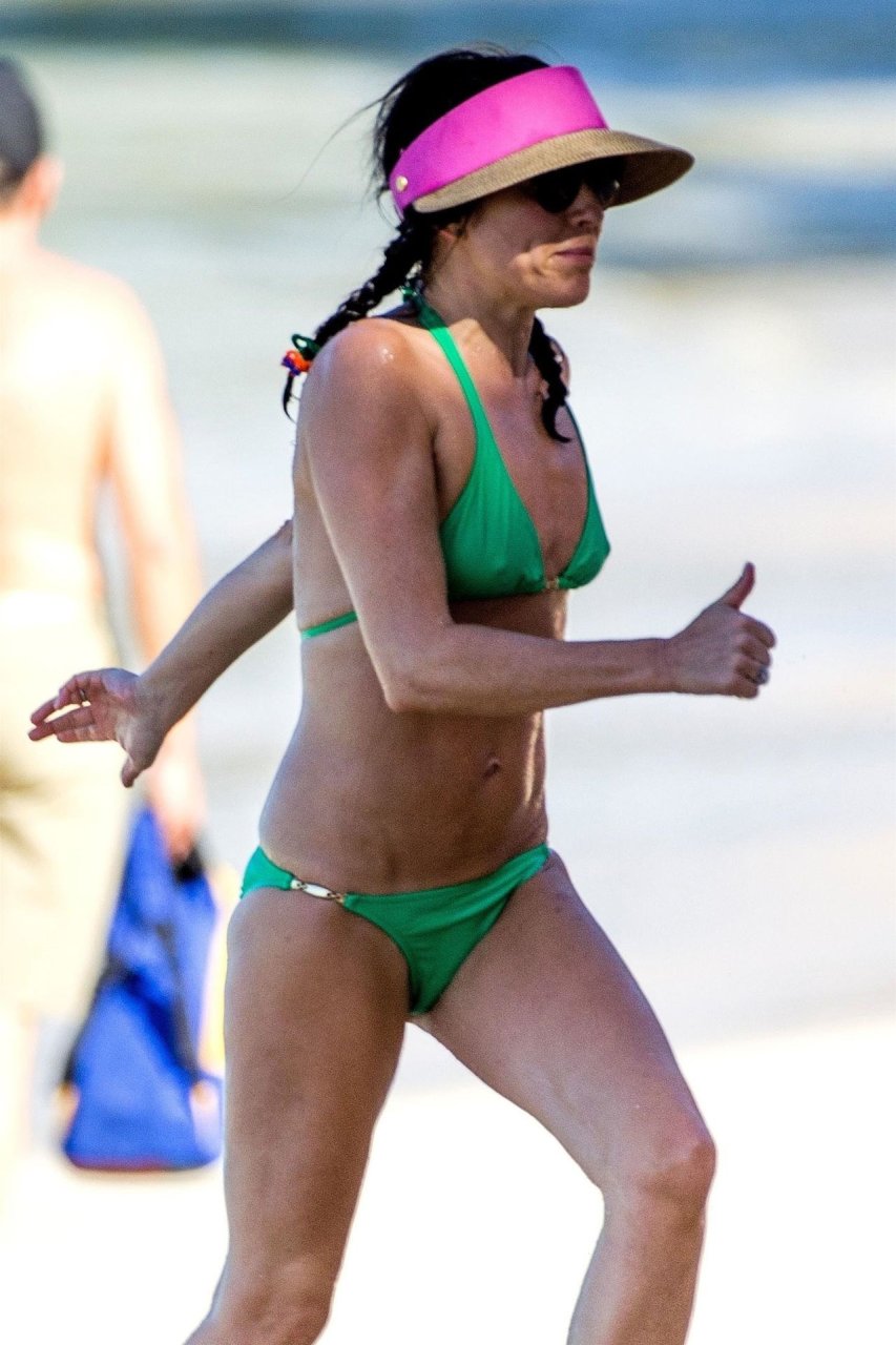 La cantante irlandesa Andrea Corr y su familia disfrutan de un día en la playa en Barbados, 24/12/2018. Andrea mostró su cuerpo tonificado con un bikini verde mientras estaba en la playa.