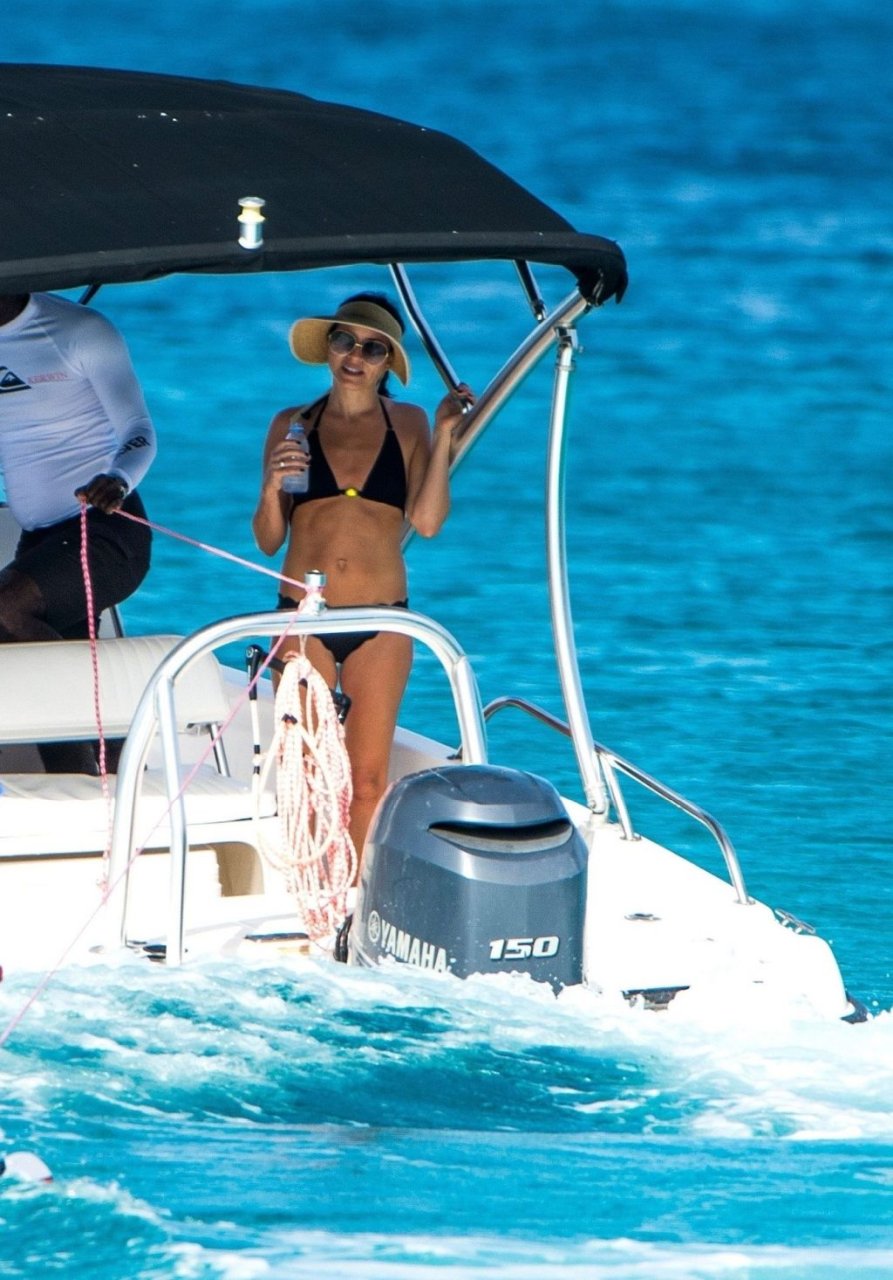 La cantante irlandesa Andrea Corr y su familia disfrutan de un día en la playa en Barbados, 18/02/2019. Andrea mostró sus abdominales marcados en su bikini mientras estaba en la playa.