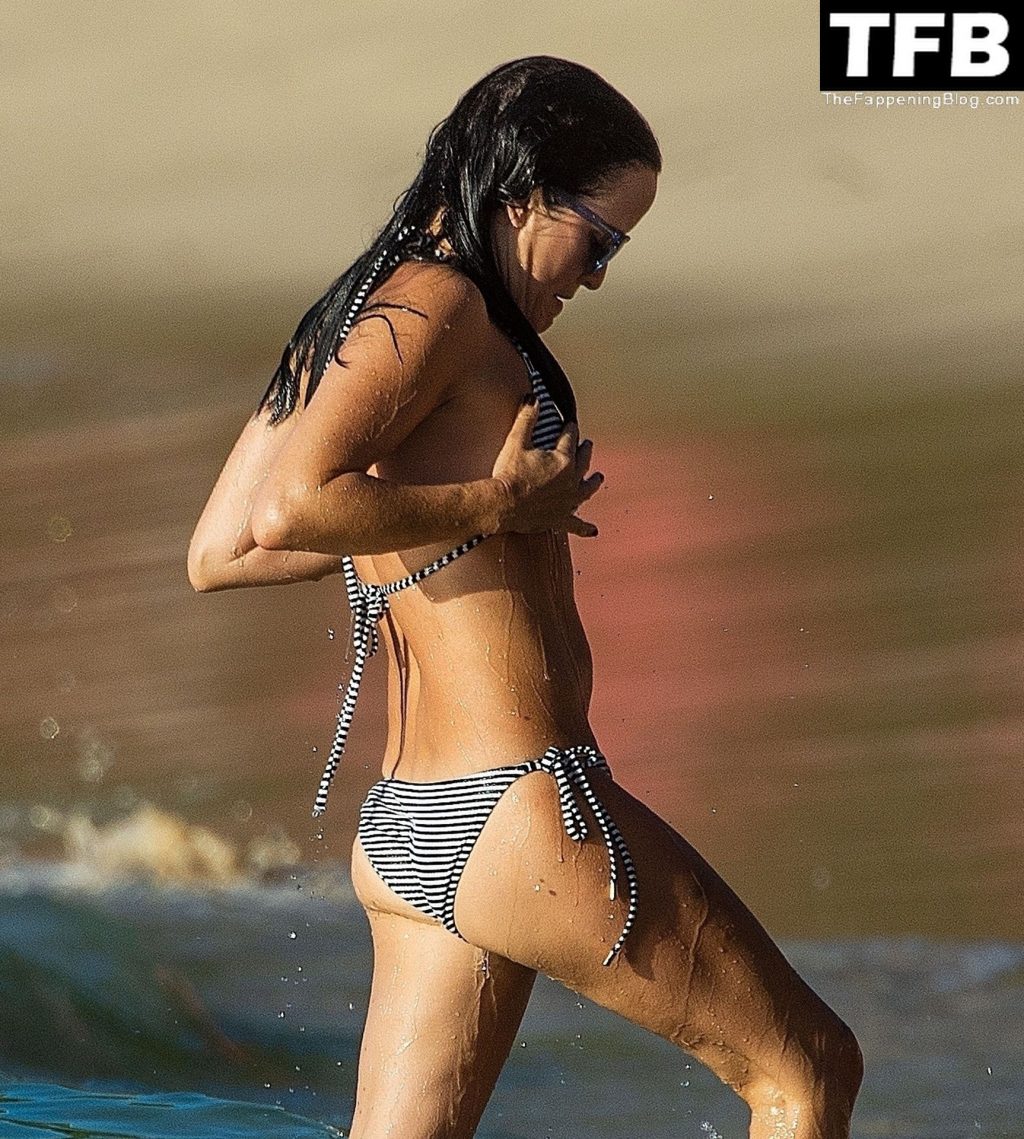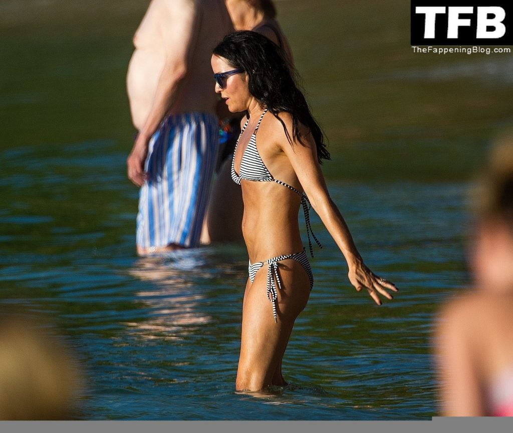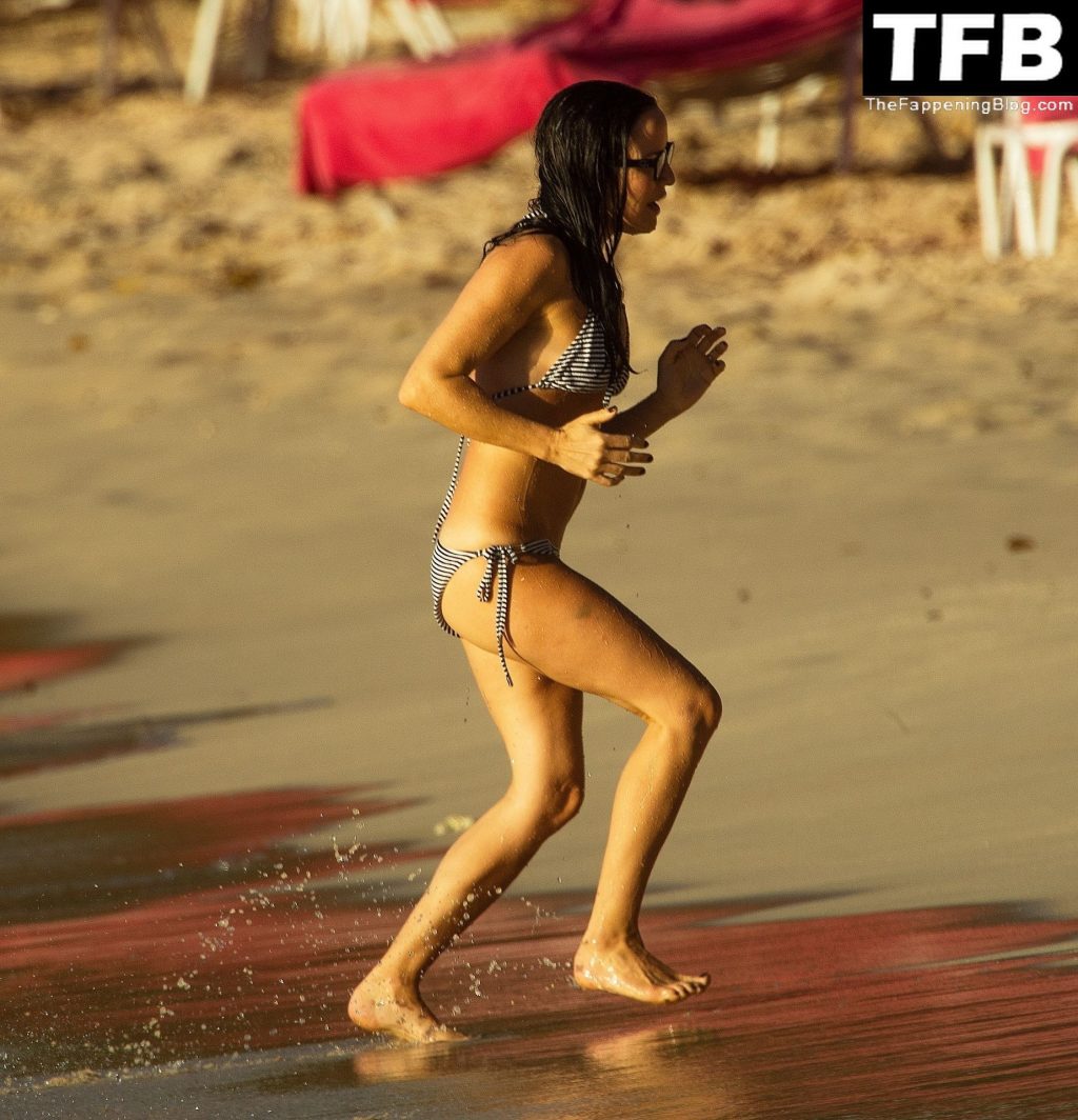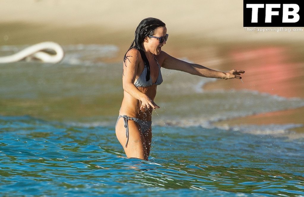 La cantante principal de la banda irlandesa, The Corrs, Andrea Corr, de 47 años, continúa desafiando su edad mostrando su sexy figura en un pequeño bikini a rayas, vista en las playas durante sus vacaciones en la parroquia de St. James, Barbados, 01/05/2022.