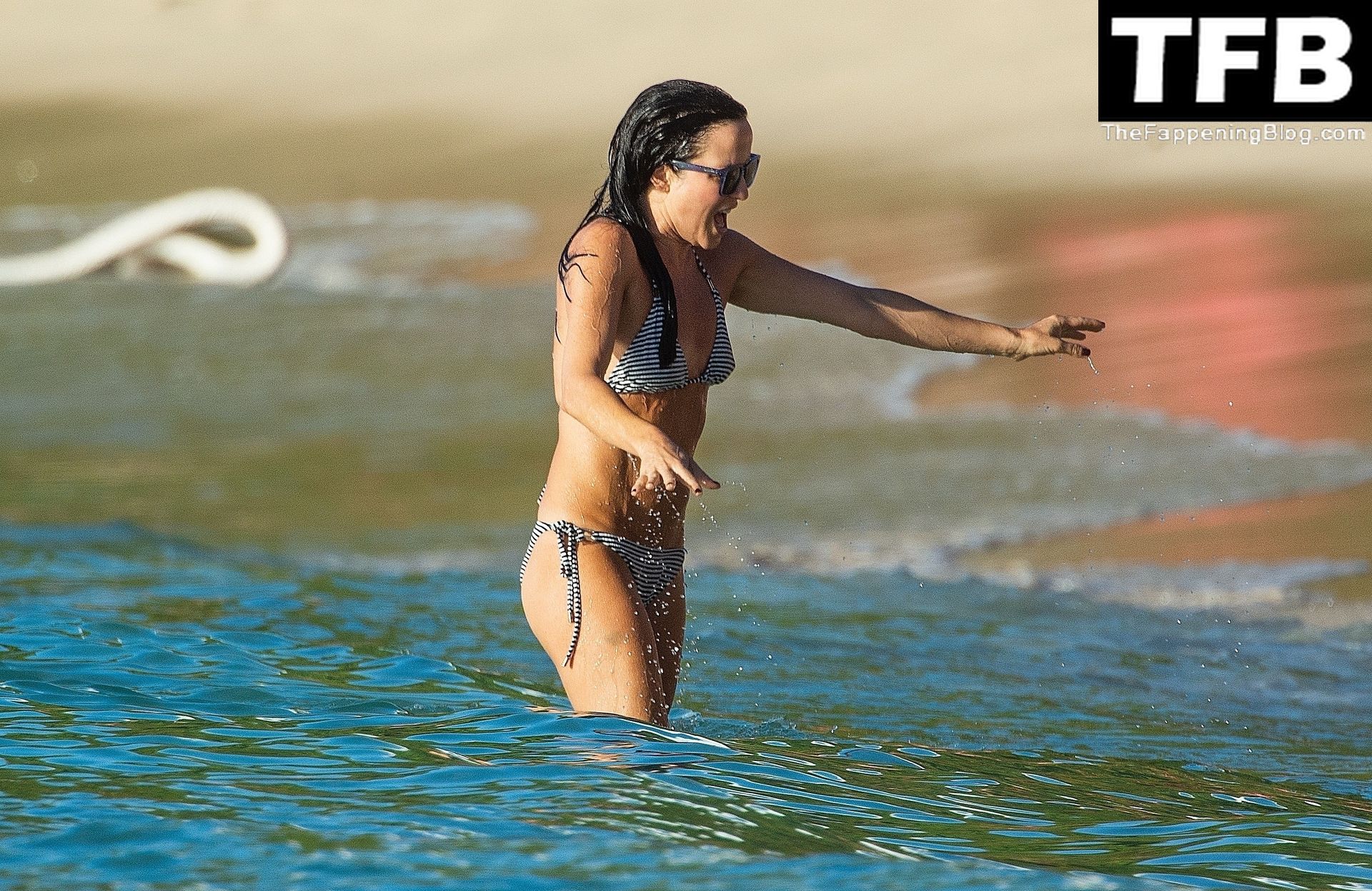 La cantante principal de la banda irlandesa, The Corrs, Andrea Corr, de 47 años, continúa desafiando su edad mostrando su sexy figura en un pequeño bikini a rayas, vista en las playas durante sus vacaciones en la parroquia de St. James, Barbados, 01/05/2022.