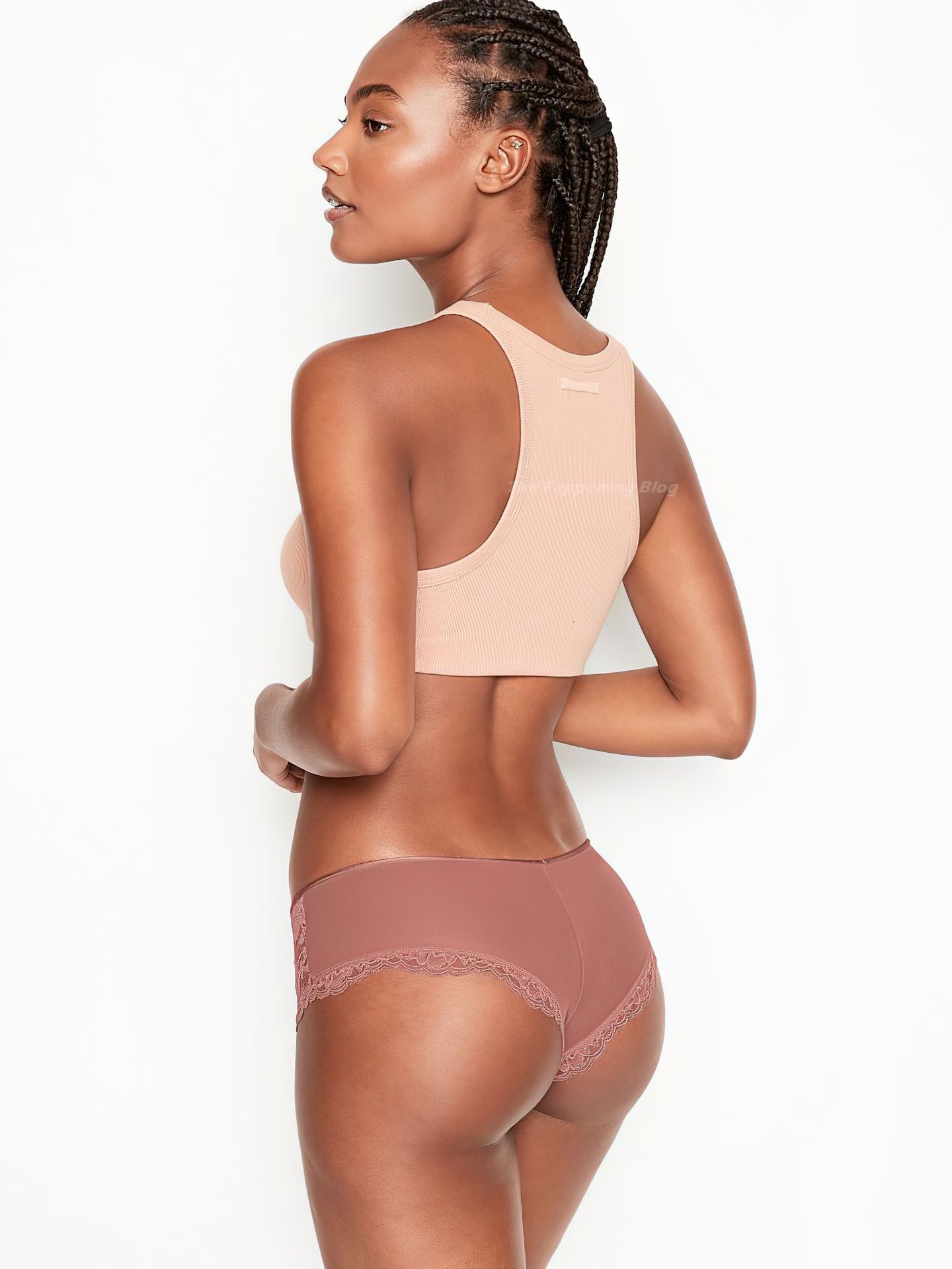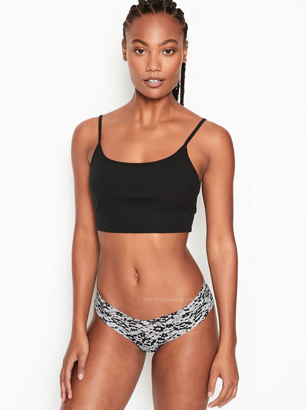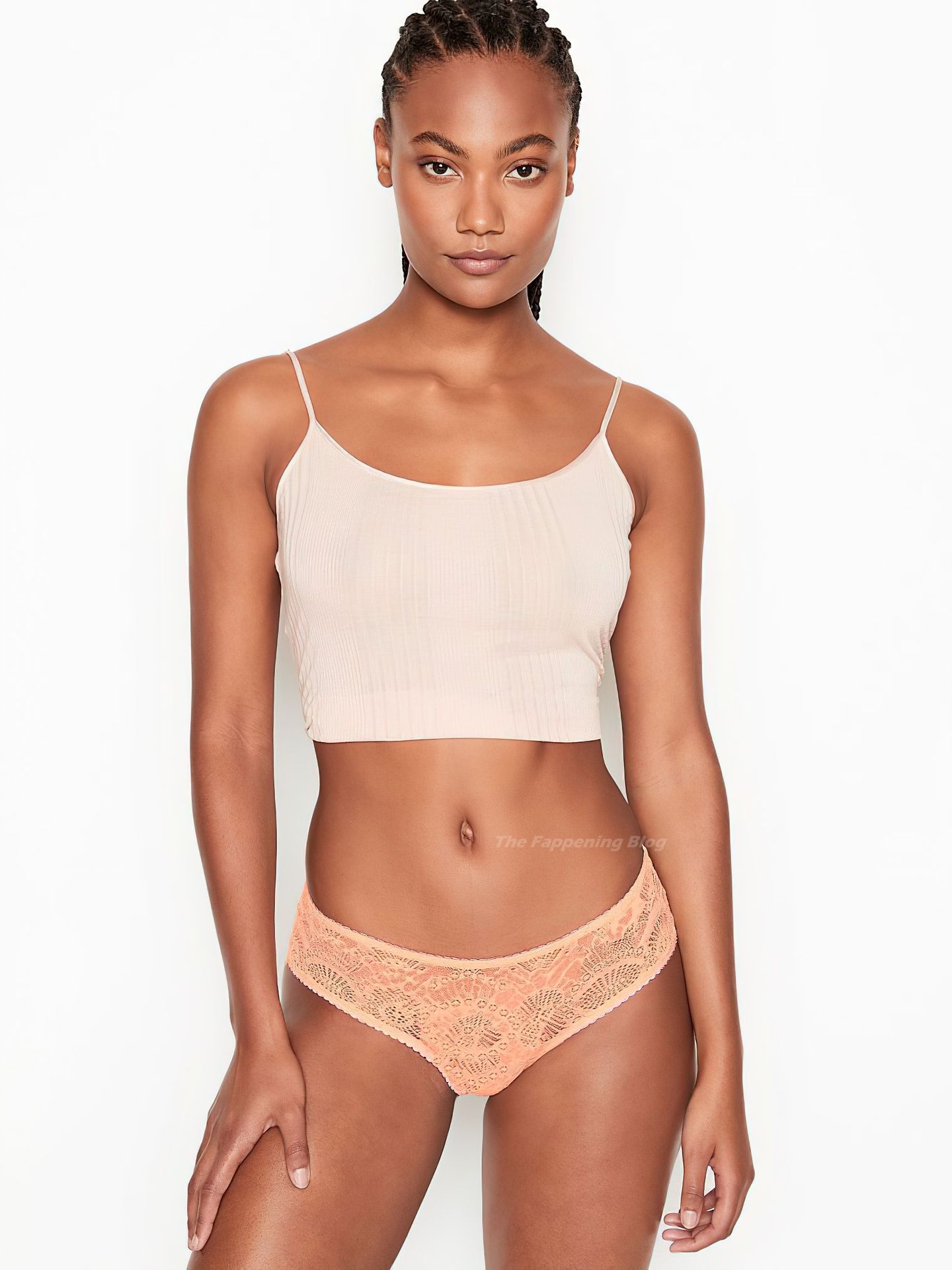La modelo francesa Ange-Marie Moutambou muestra su impresionante cuerpo mientras posa con ropa interior de una nueva campaña de Victoria’s Secret (2021).