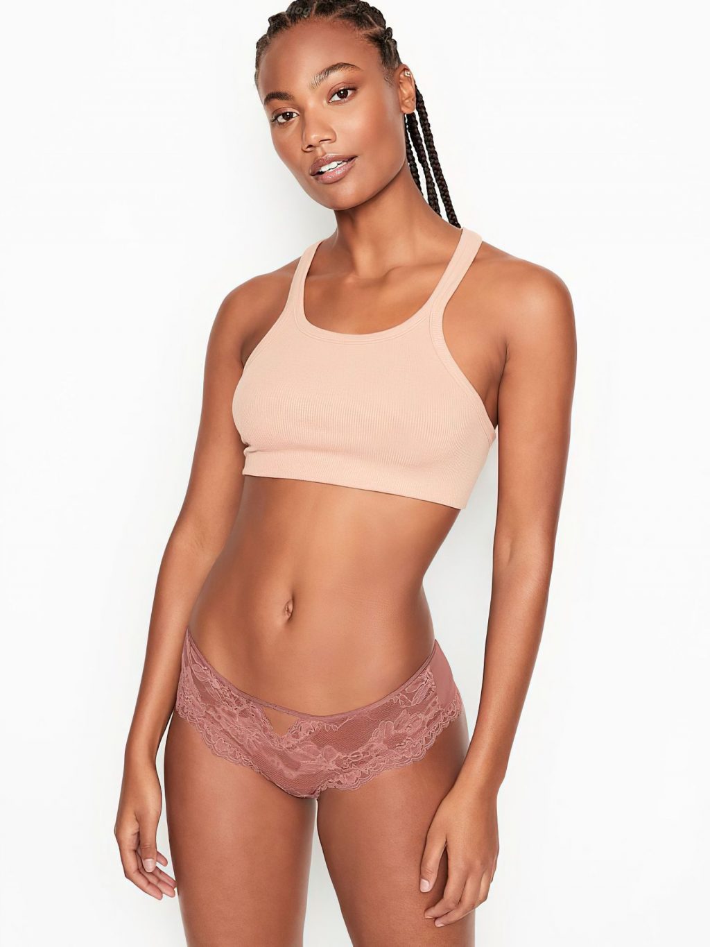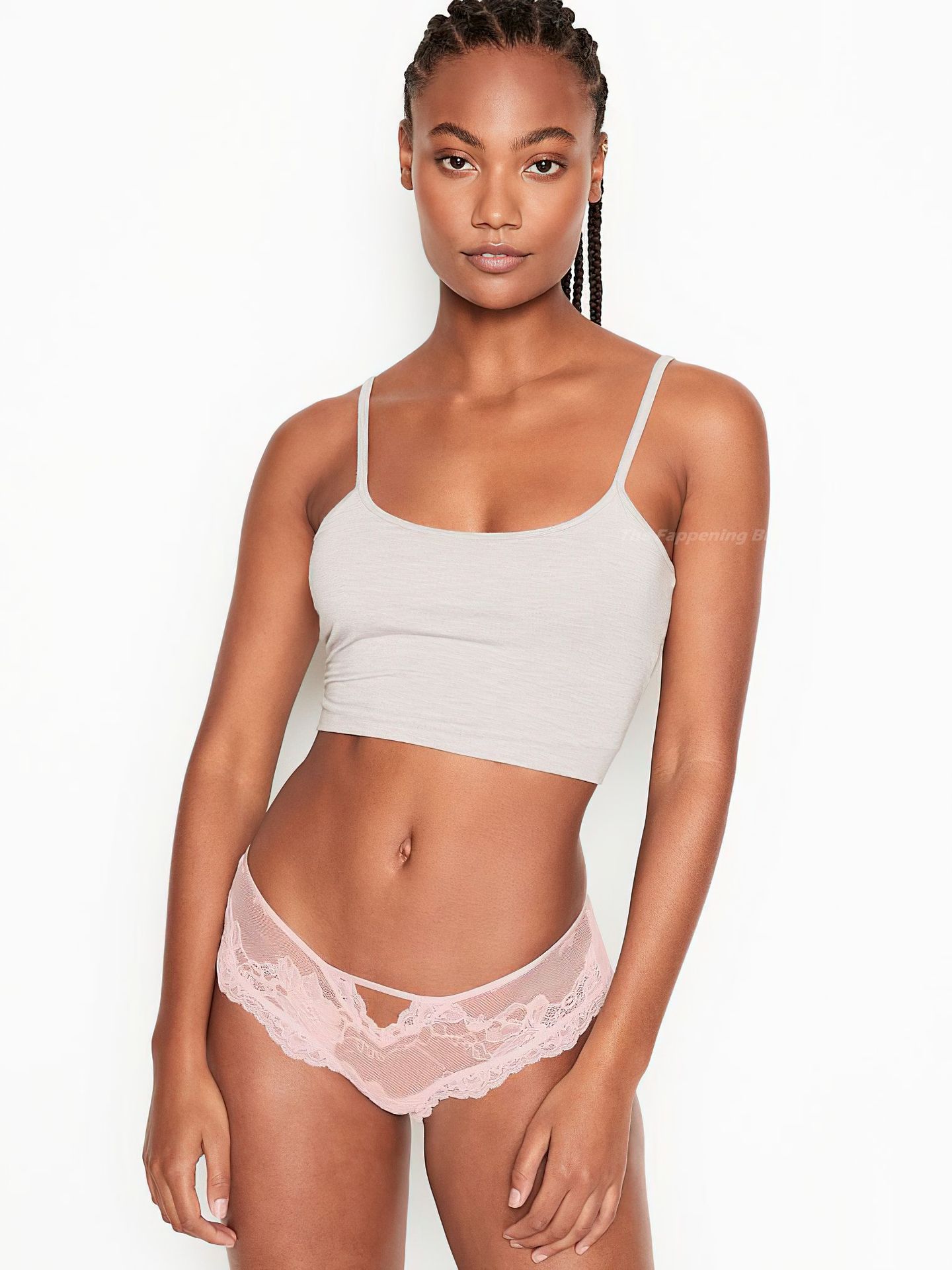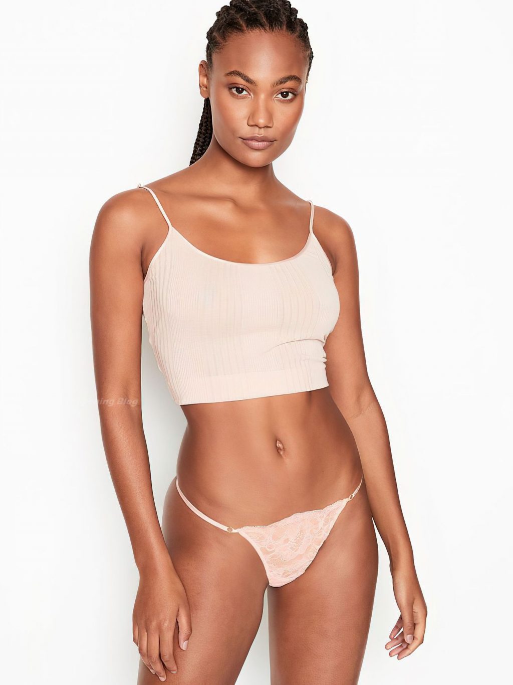 La modelo francesa Ange-Marie Moutambou muestra su impresionante cuerpo mientras posa con ropa interior de una nueva campaña de Victoria’s Secret (2021).