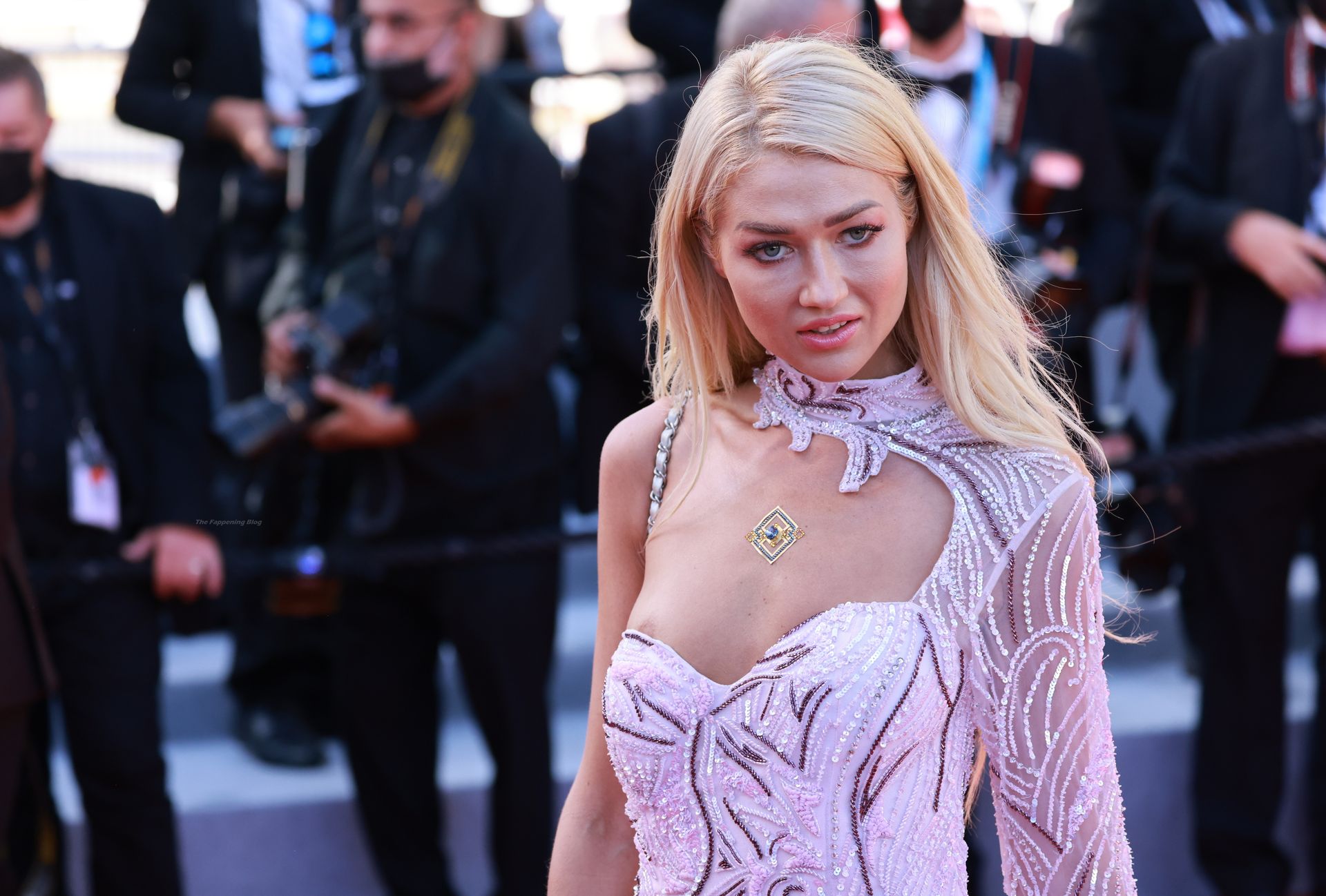 Journalist Angelina Kali arrives for the screening of the film “A Felesegem Tortenete” (The Story Of My Wife) during the 74th Cannes Film Festival, 07/14/2021.