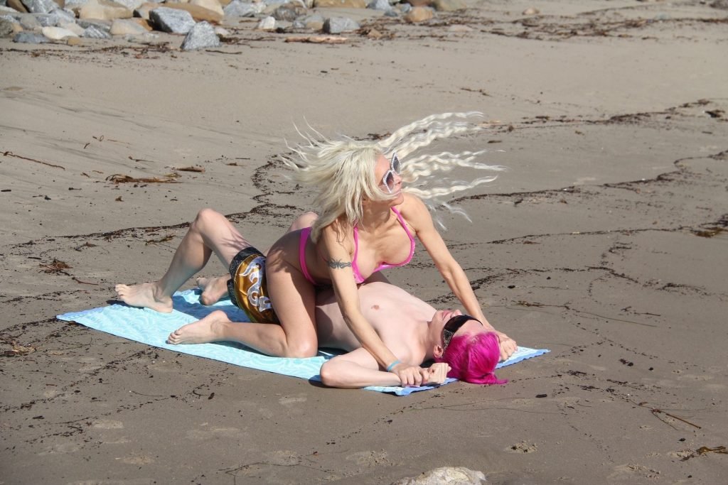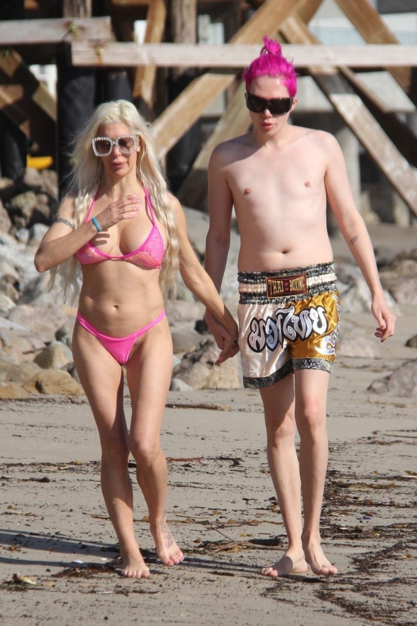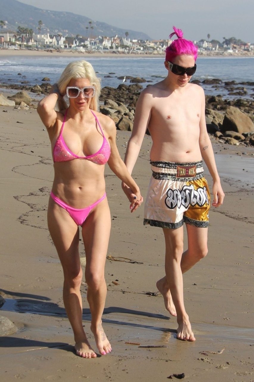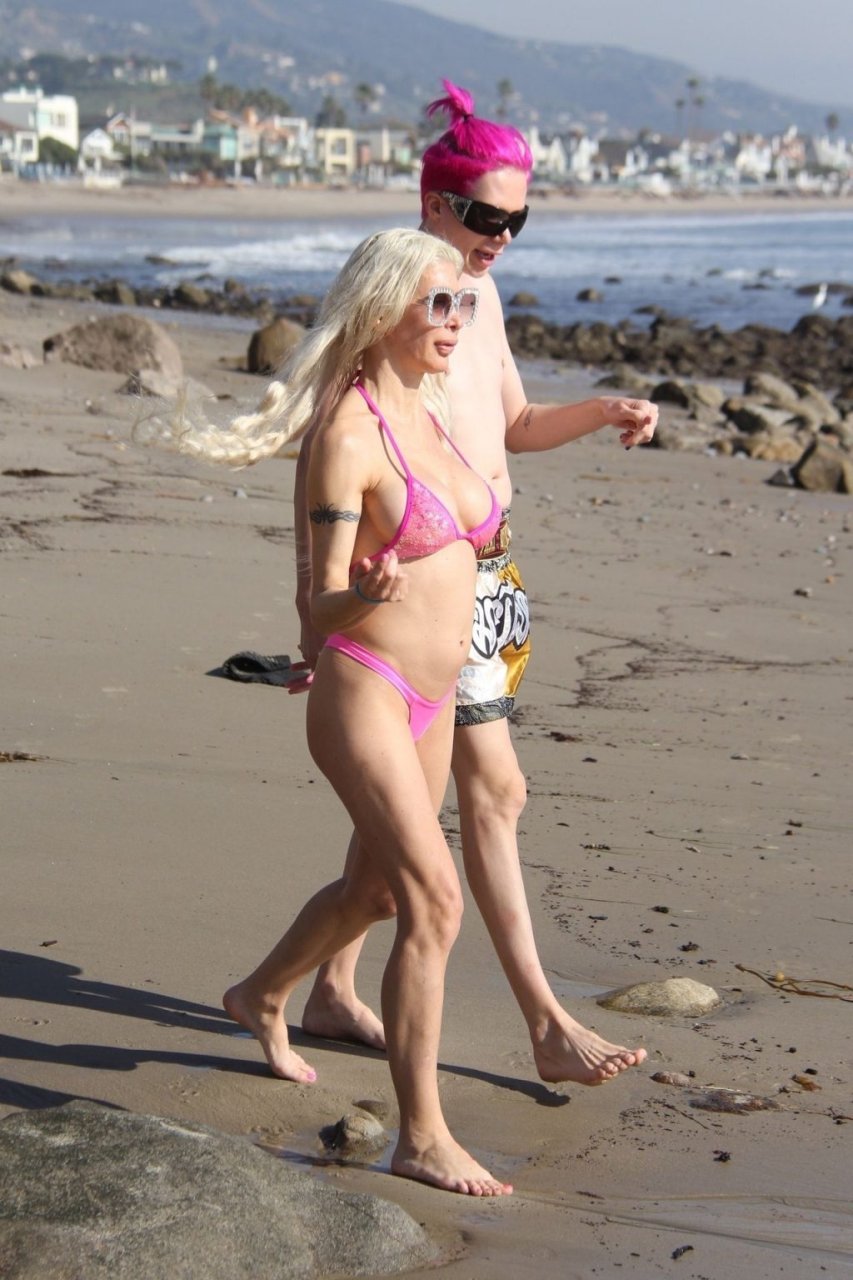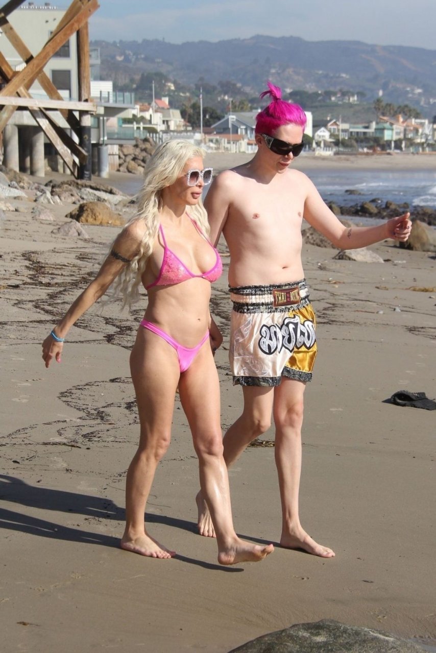 Angelique “Frenchy” Morgan y Oli London se ponen calientes y apasionados en la playa de Los Ángeles, 23/12/2018. Oli combina su cabello con el traje de baño de Frenchy mientras la pareja muestra mucha PDA mientras están acostados en la playa.