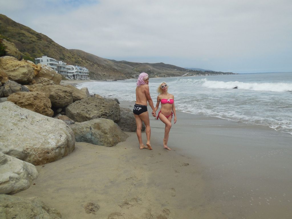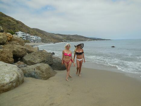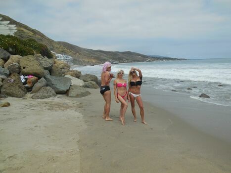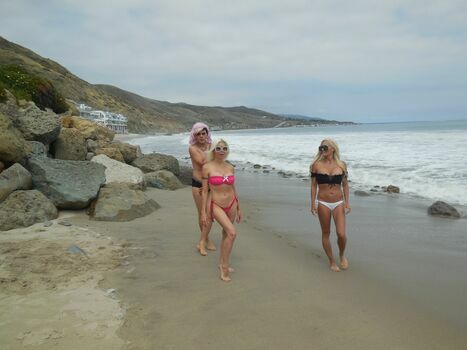 Las estrellas de televisión Frenchy Morgan, Heather Chadwell y Sham Ibrahim fueron vistas en Malibu, CA en la playa, el 30/05/2020. Frenchy y Sham se tomaban de la mano y caminaban mientras Heather charlaba con sus amigos.