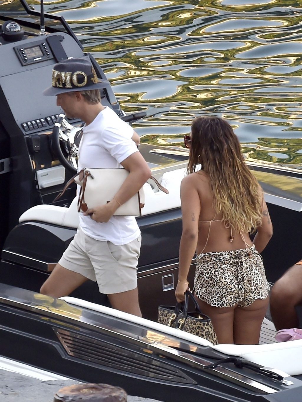 Vestida con su atuendo de estampado animal, la cantante brasileña Anitta y su amiga Marina Morena son vistas en su aventura italiana en un enorme yate disfrutando del aire fresco del mar de vacaciones en Portofino, 21/08/2020.