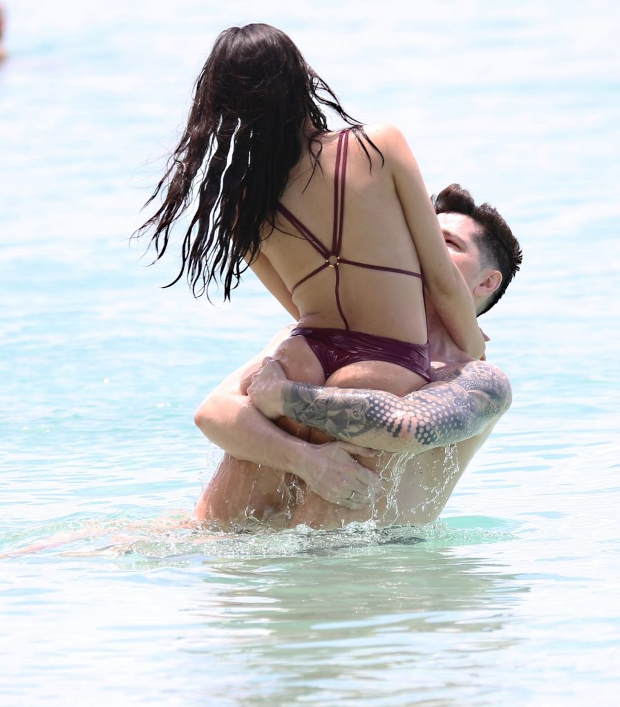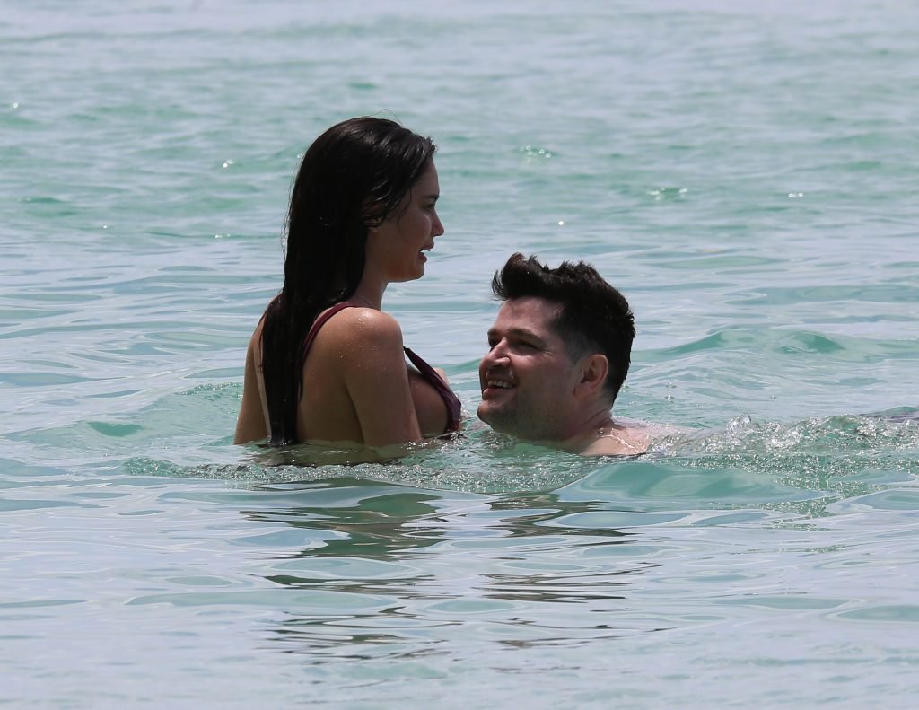 Danny O’Donoghue (The Script) y su novia brasileña, la modelo Anne De Paula, fueron fotografiados en la playa durante sus vacaciones en el Caribe, 25/03/2018. Anne De Paula llevaba un traje de baño color burdeos y mostró su gran trasero!