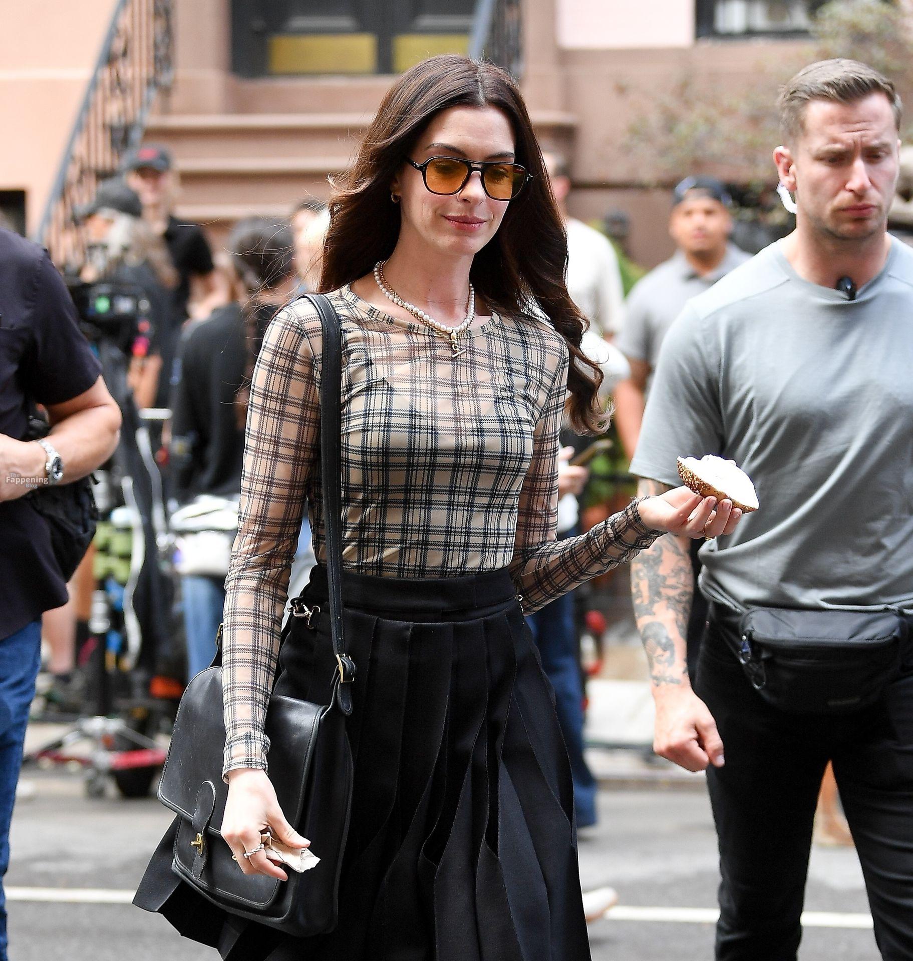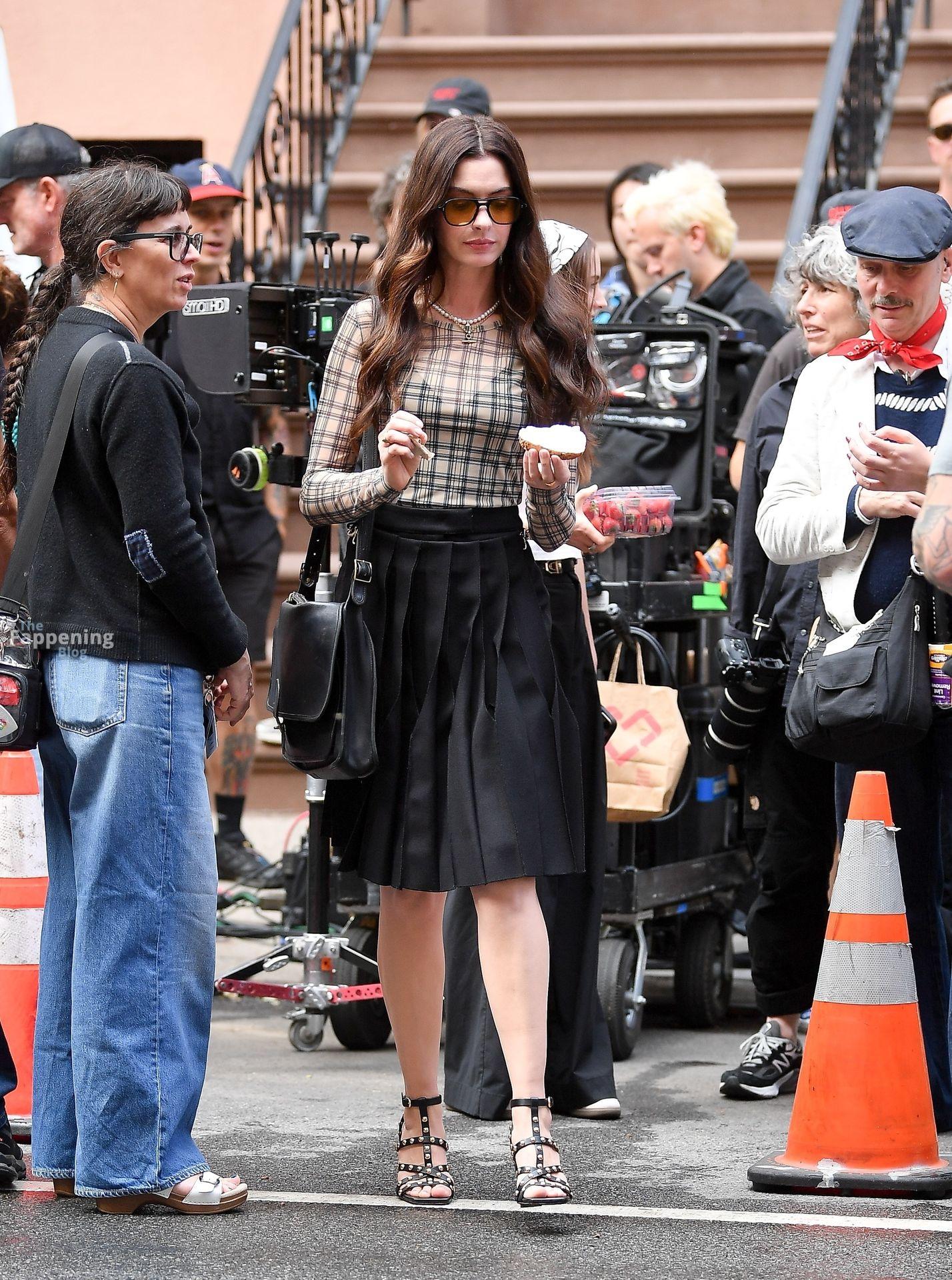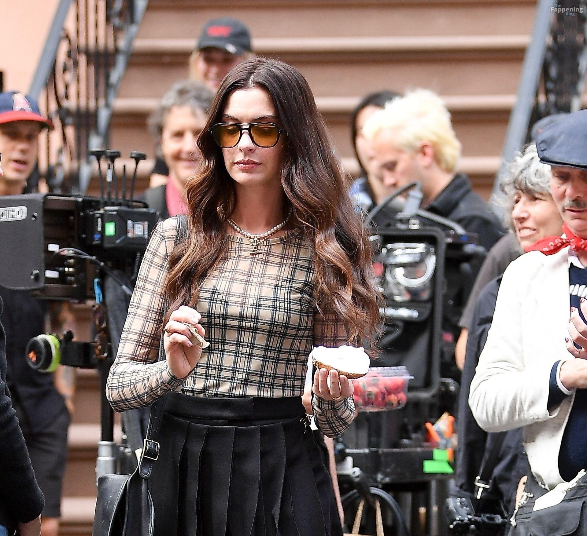 “¡ESTOY BIEN!” dijo Anne Hathaway con una sonrisa, después de caerse por las escaleras mientras filmaba “El Diablo Viste de Prada 2” en Nueva York.