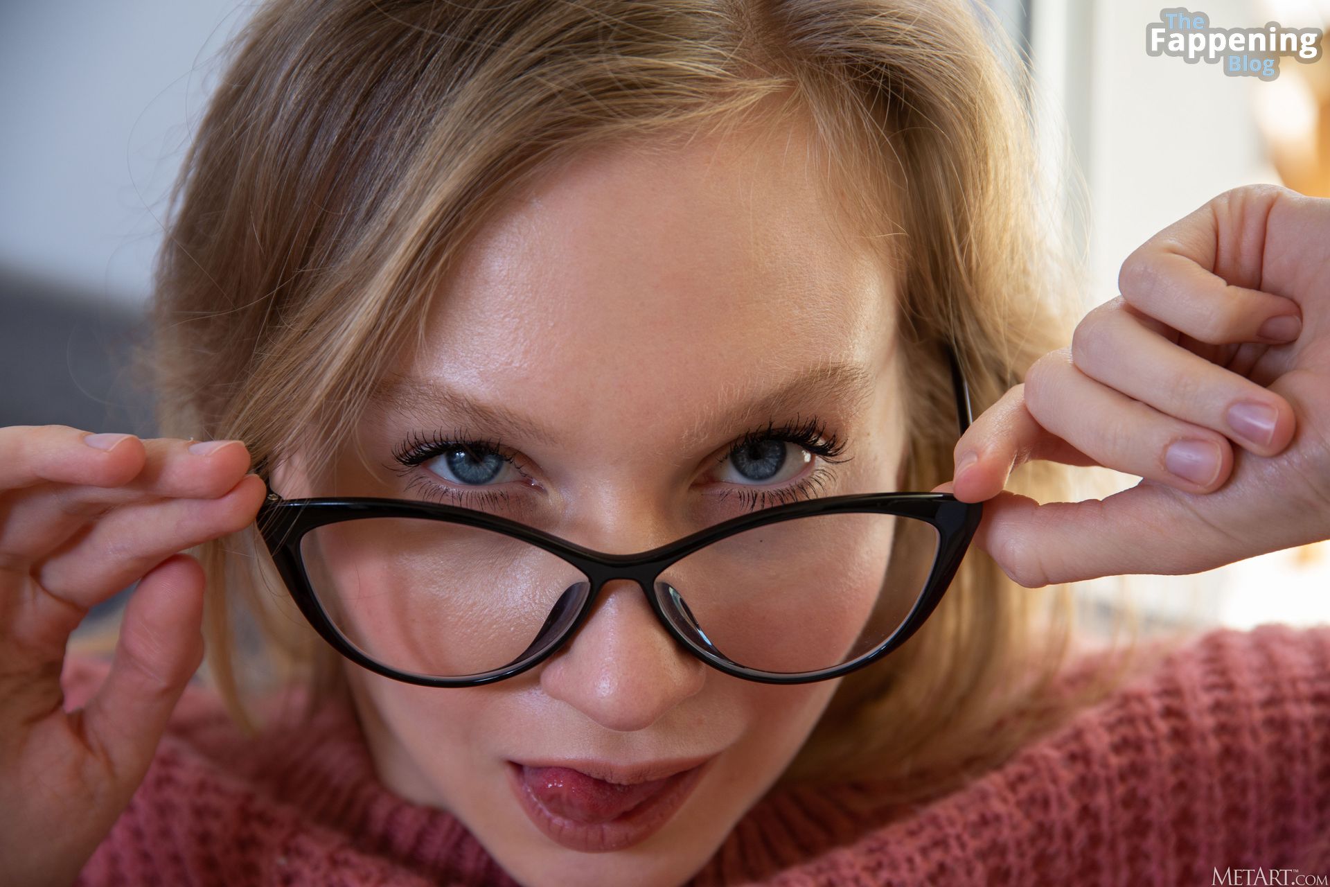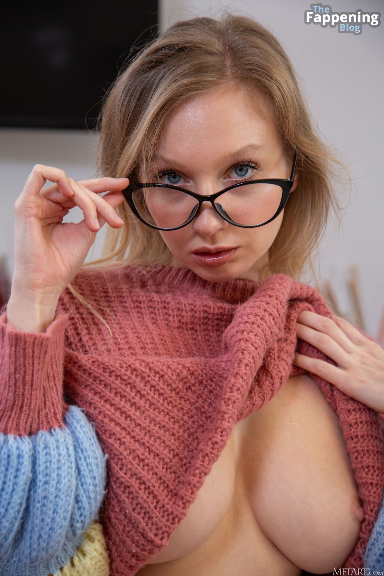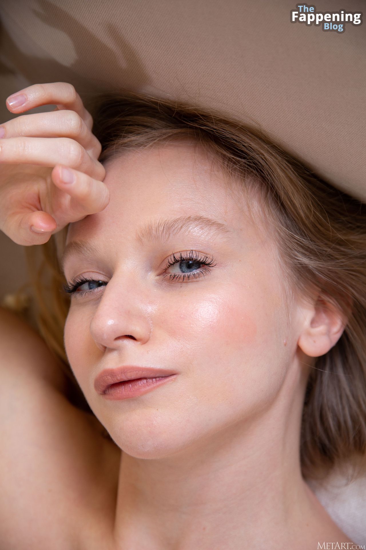 Bonitos pechos naturales, linda vagina afeitada y hermosos ojos azules.