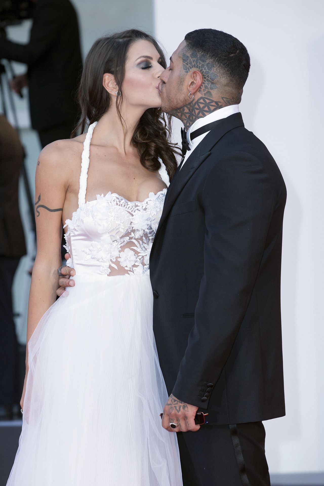 Sexy modelo italiana Antonella Fiordelisi muestra su escote posando con un vestido blanco en la alfombra roja antes de la película “Le Sorelle Macaluso” en el 77º Festival de Cine de Venecia en Venecia, 09/09/2020.