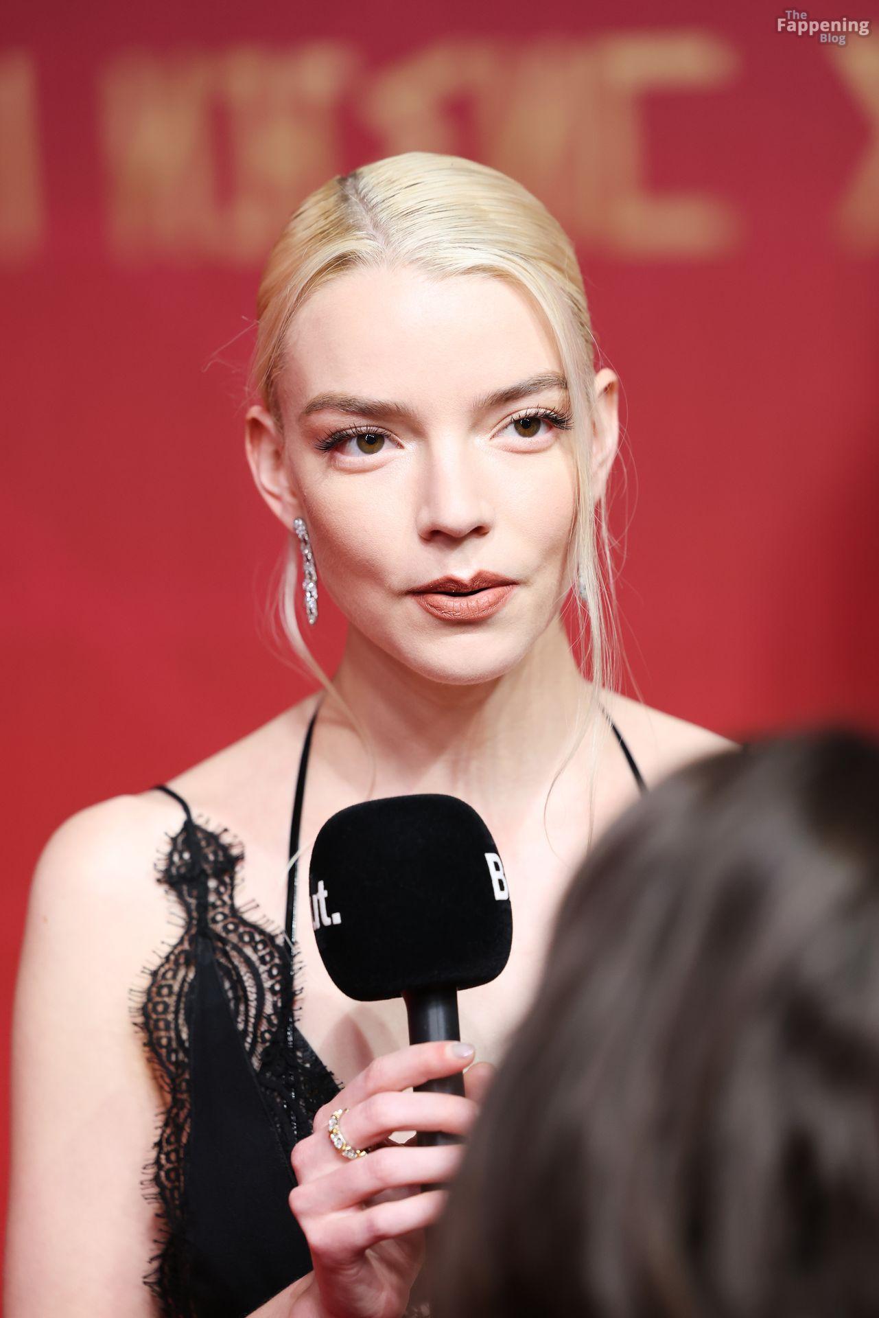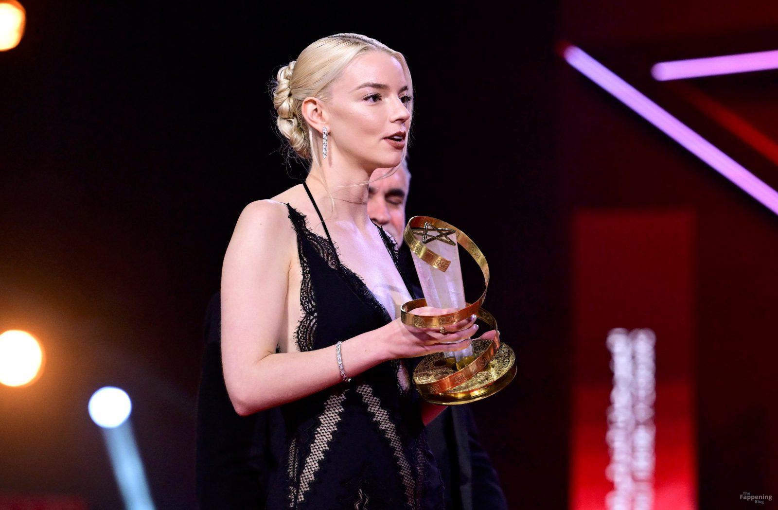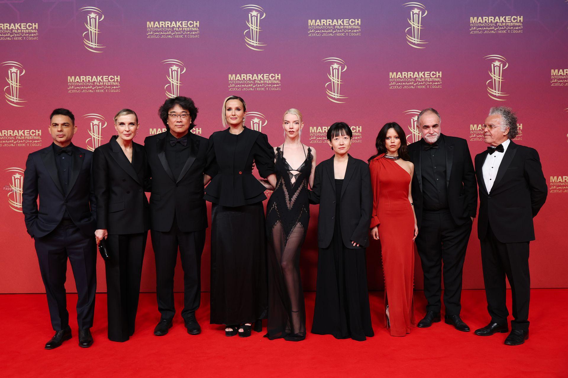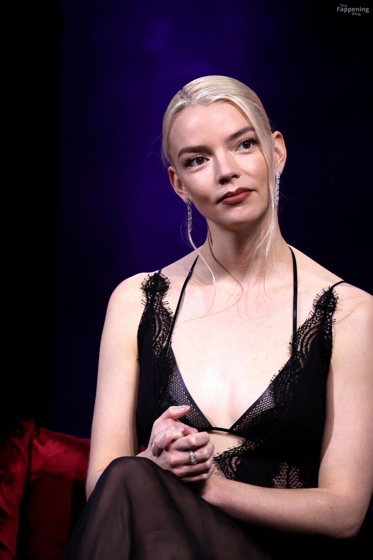 La actriz estadounidense Anya Taylor-Joy posa con un vestido de encaje transparente que muestra sus piernas en la alfombra roja mientras llega a la ceremonia de clausura del 22º Festival de Cine de Marrakech (FIFM) en Marrakech.