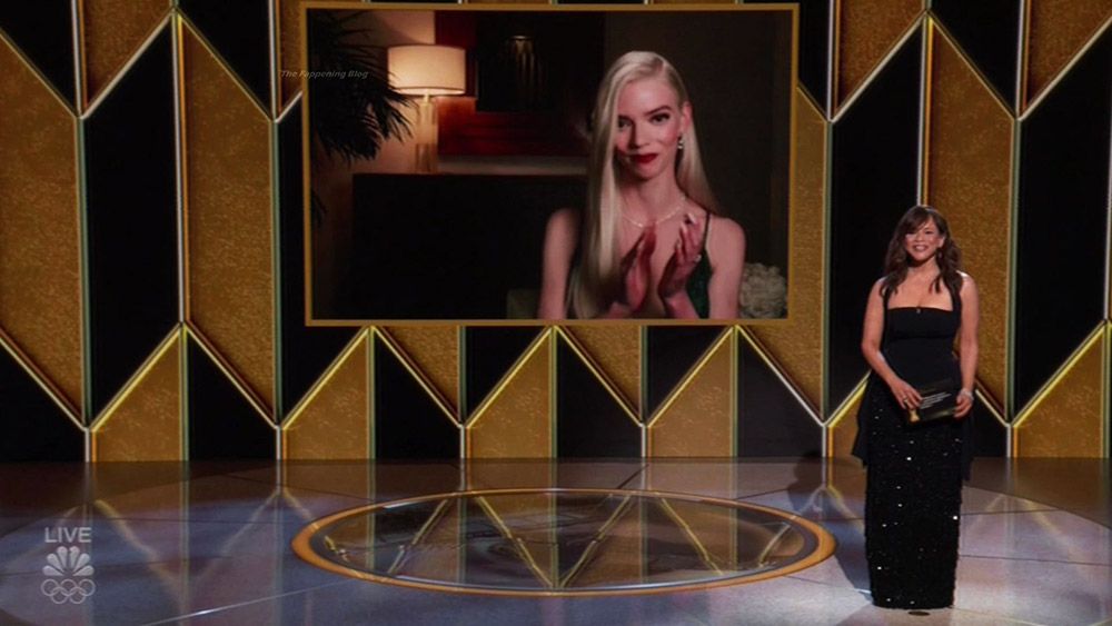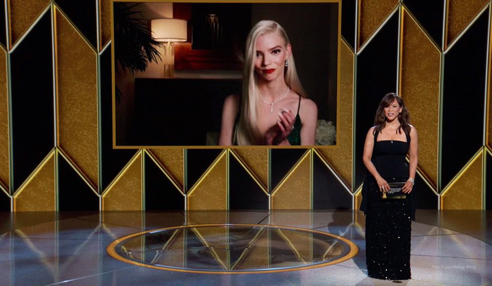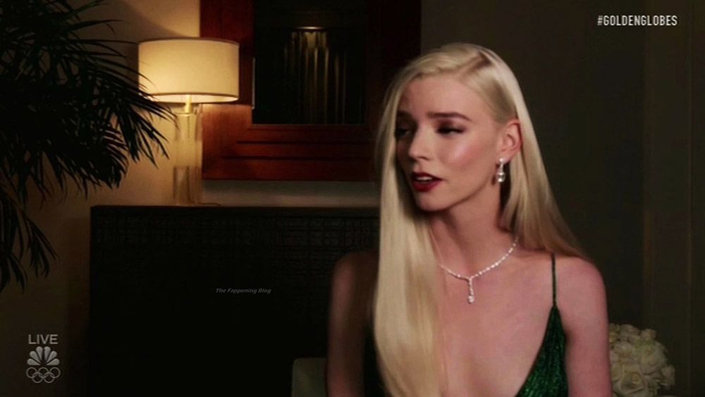 She earned the rising actress the Golden Globe for Best Actress in a Limited Series. Taylor-Joy won the Globe over fellow nominees Cate Blanchett, Daisy Edgar-Jones, Shira Haas, and Nicole Kidman. Despite facing tough competition, Taylor-Joy was widely viewed as the front runner! During her speech, Taylor-Joy especially thanked the director Scott Frank. Anya Taylor-Joy appeared in a green gown with too deep cleavage and stunning jewelry!