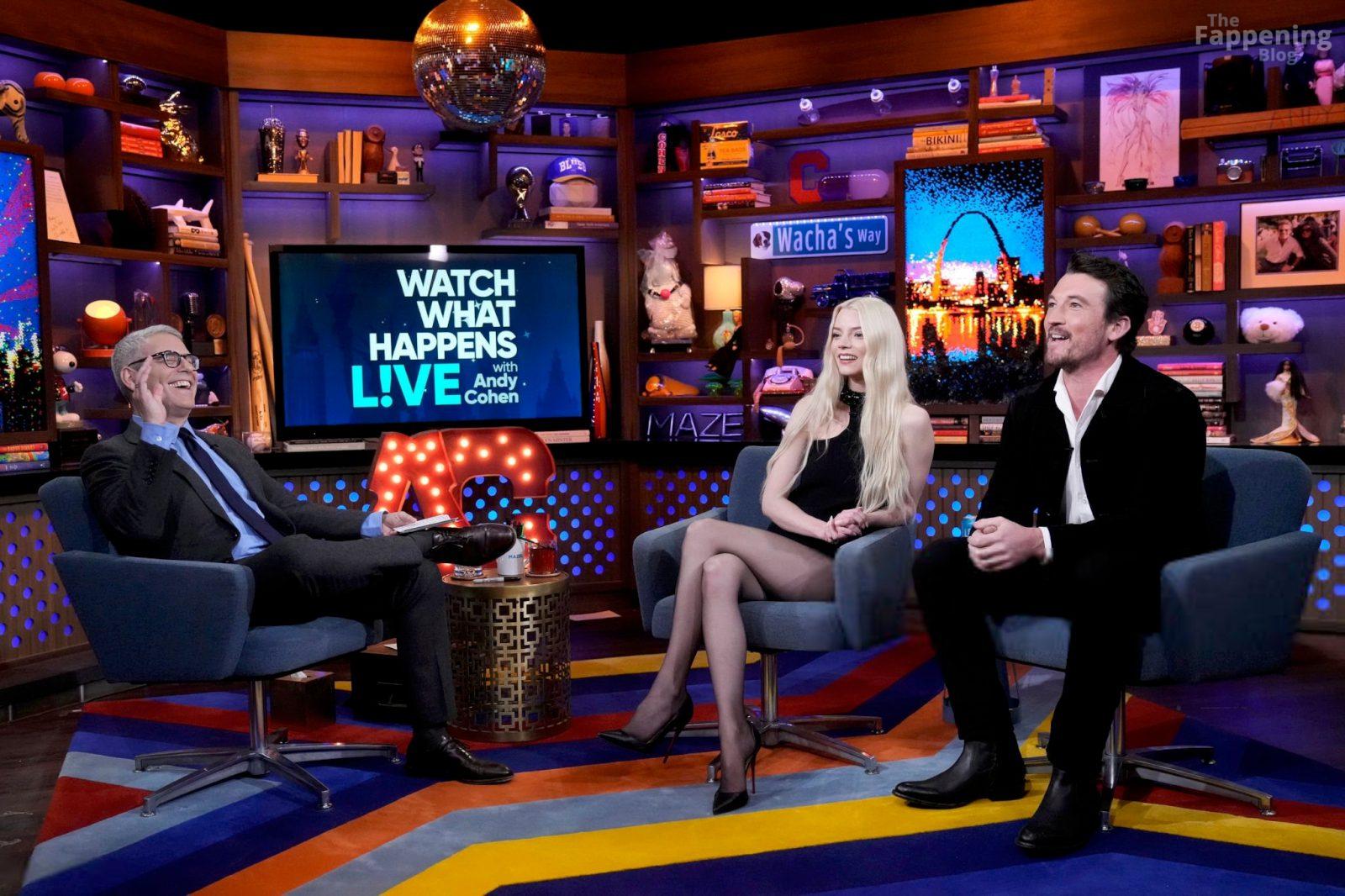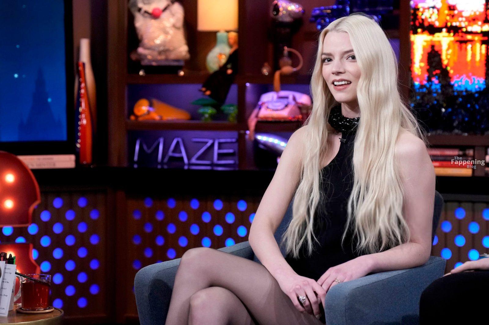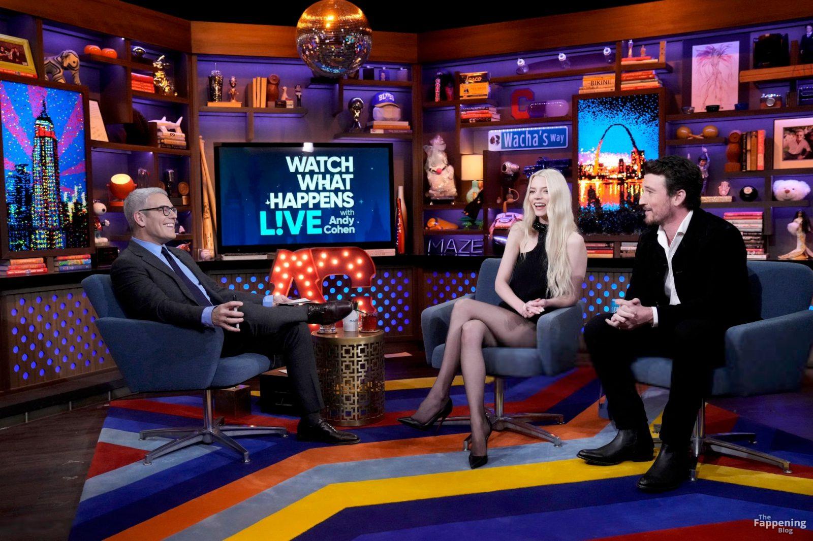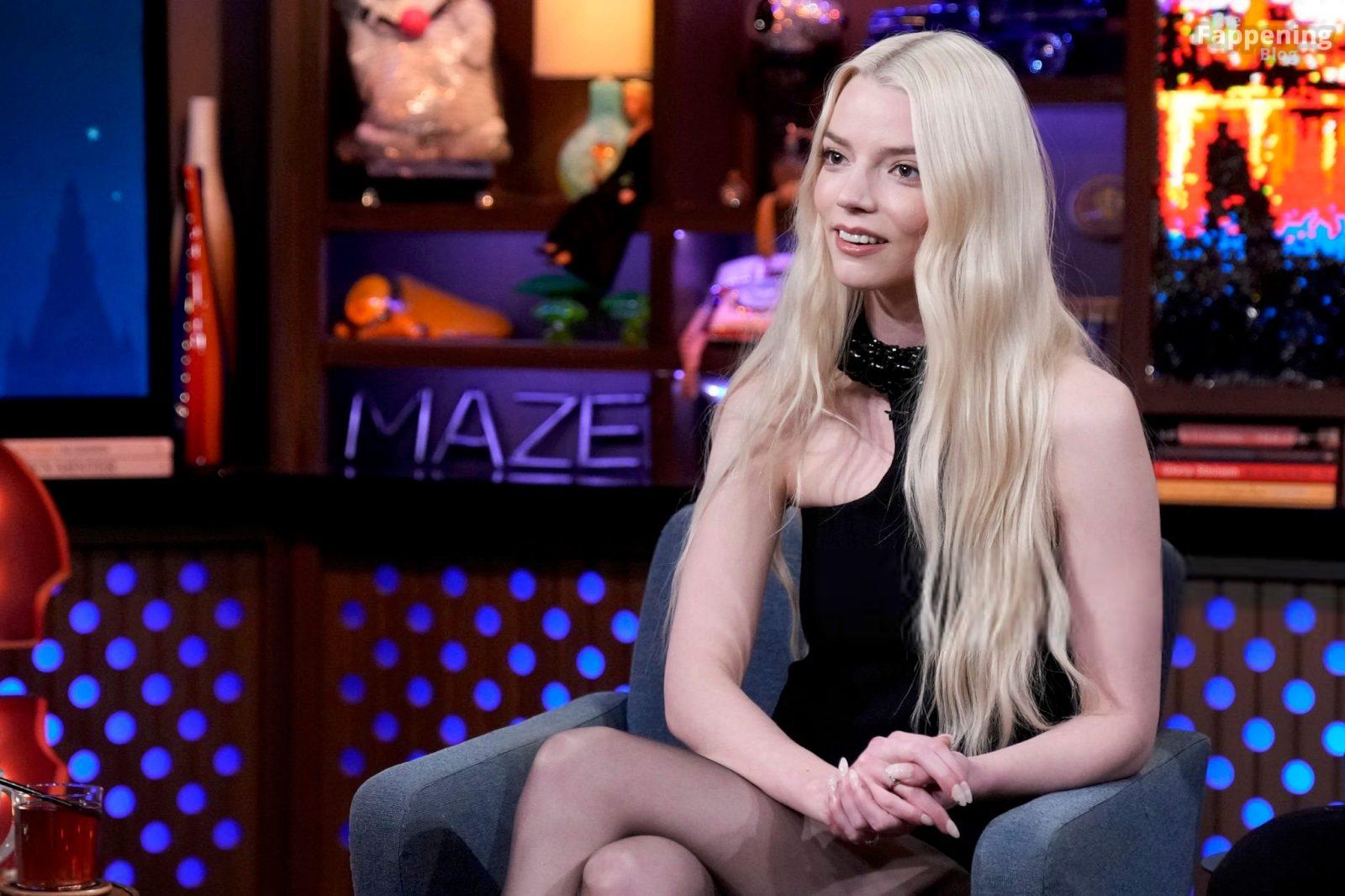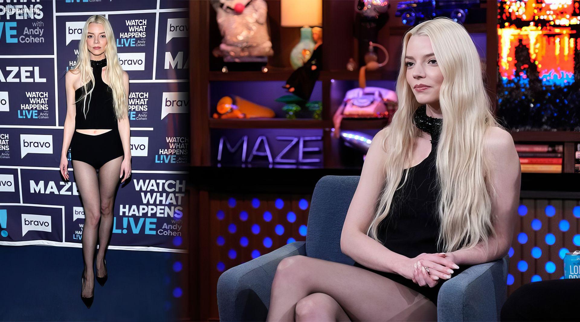 Anya Taylor-Joy aparece en las fotos, mostrando sus esbeltas piernas con medias transparentes en Watch What Happens Live.