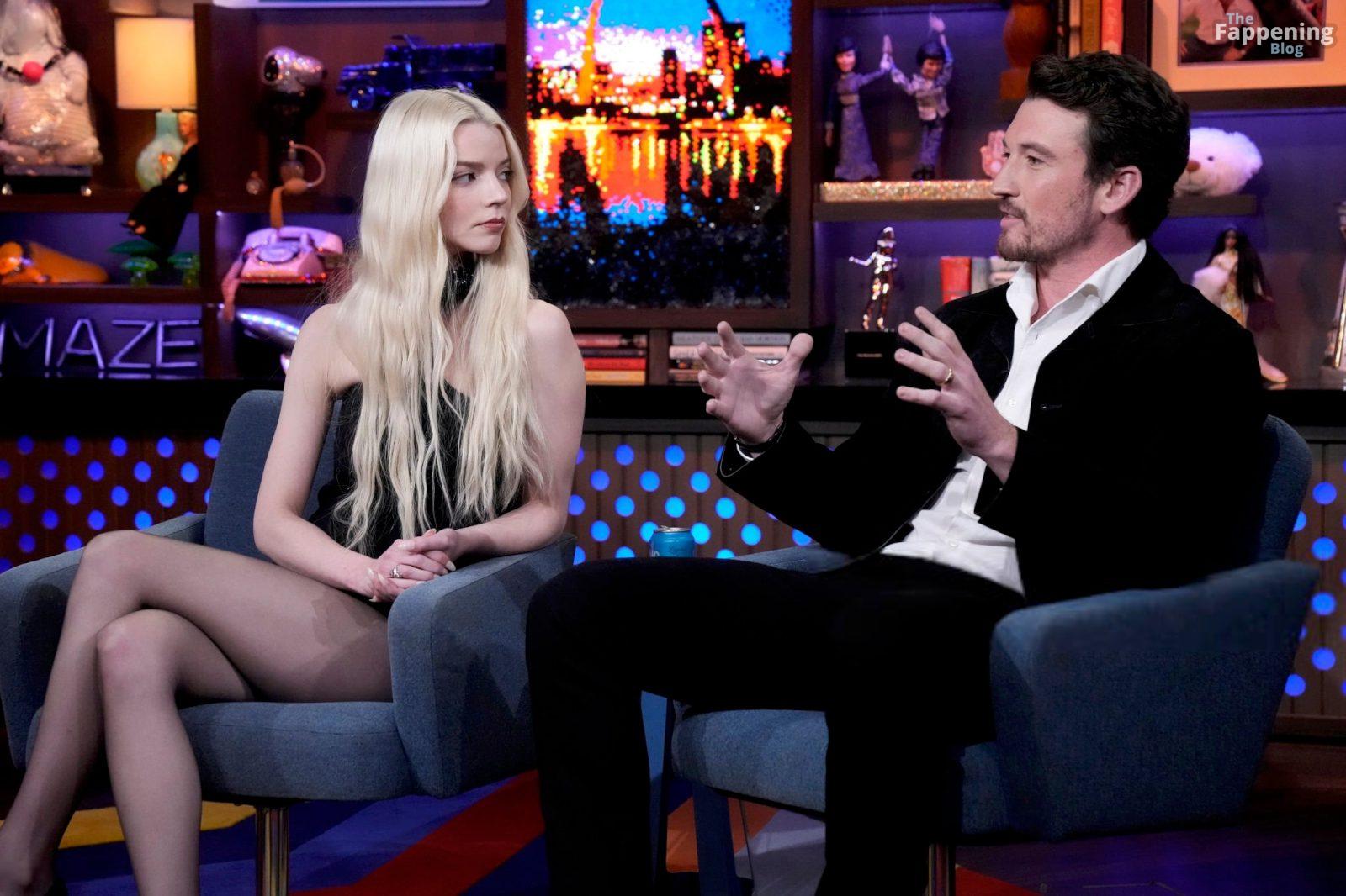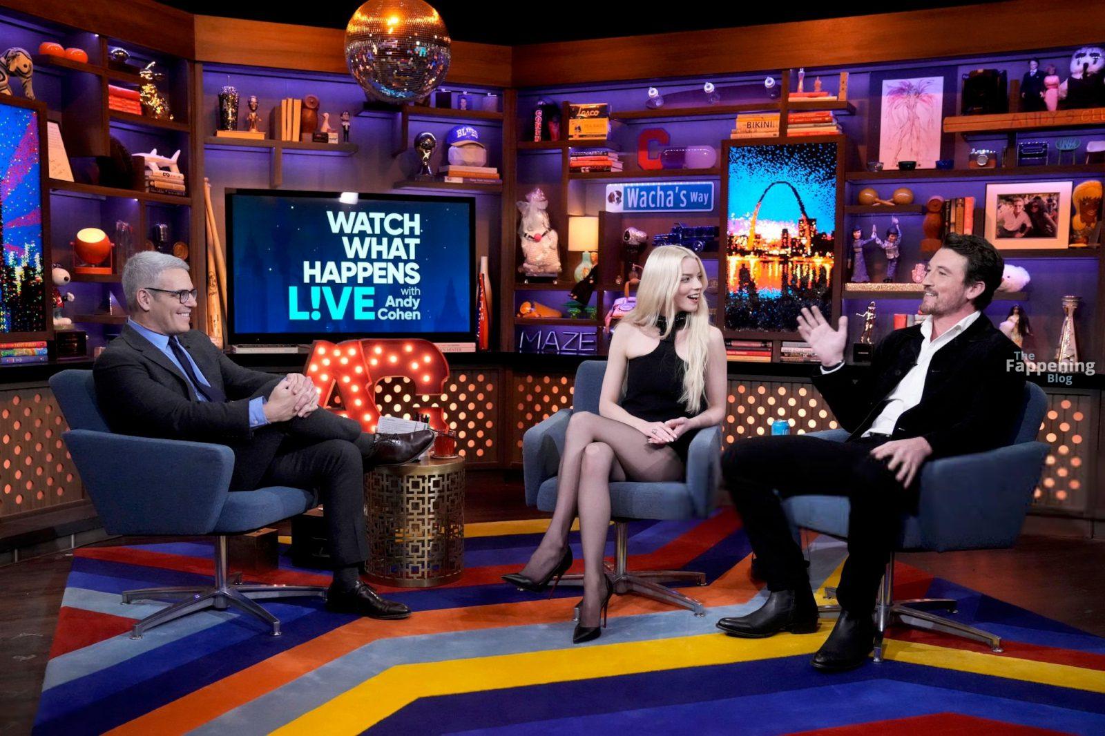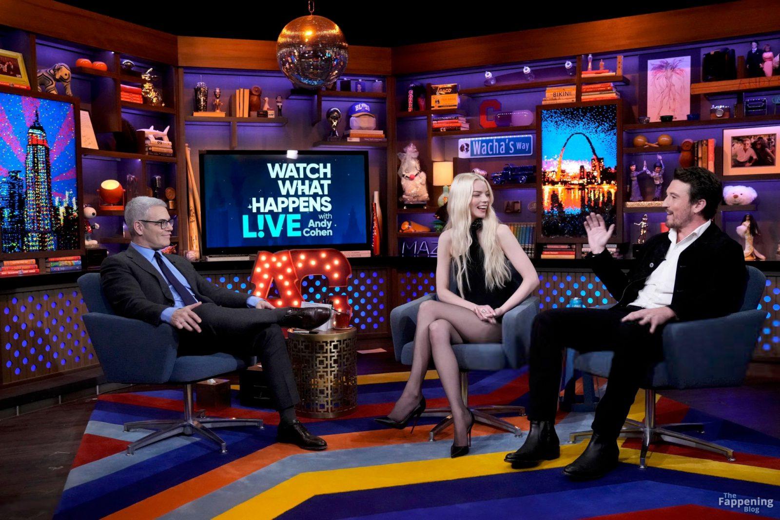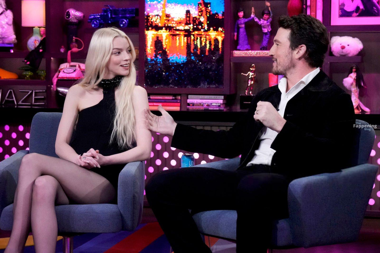 Anya Taylor-Joy aparece en las fotos, mostrando sus esbeltas piernas con medias transparentes en Watch What Happens Live.