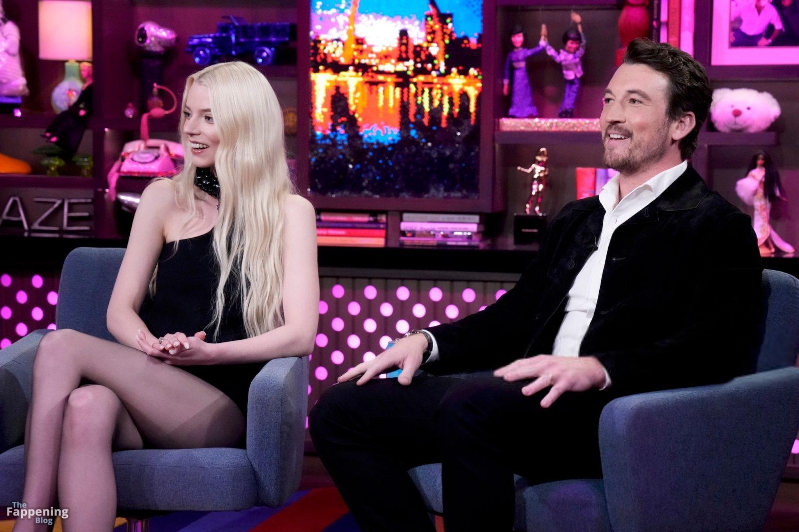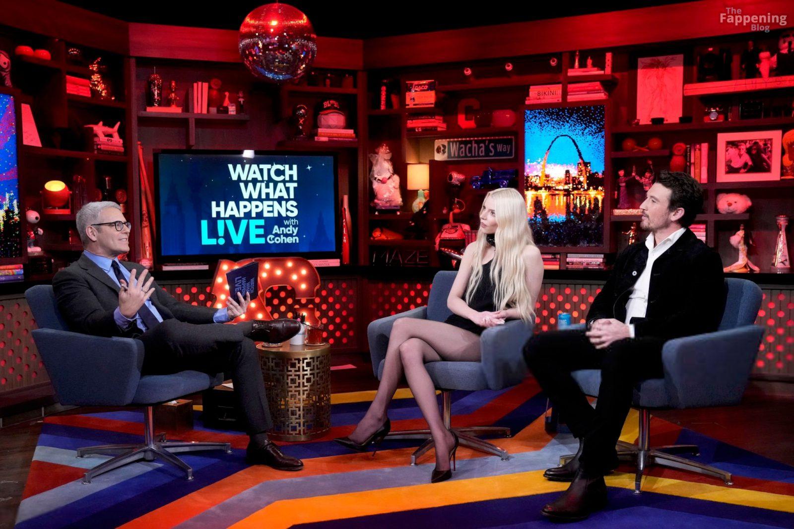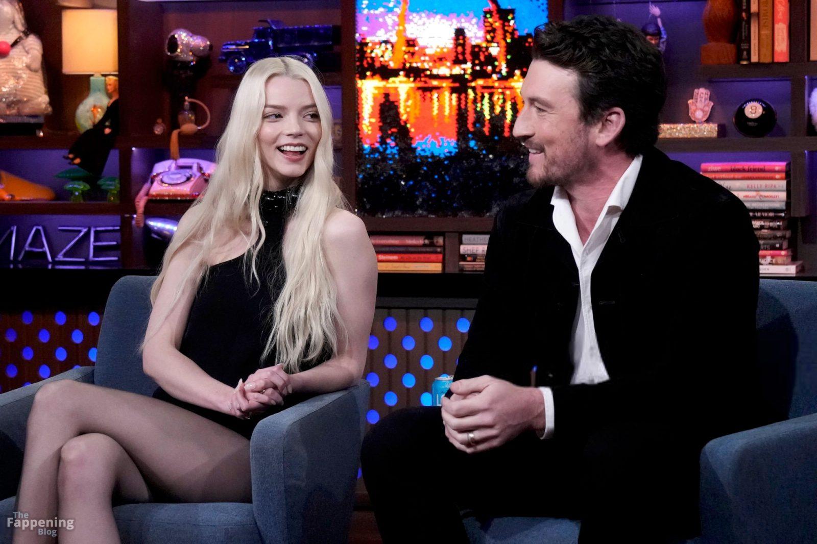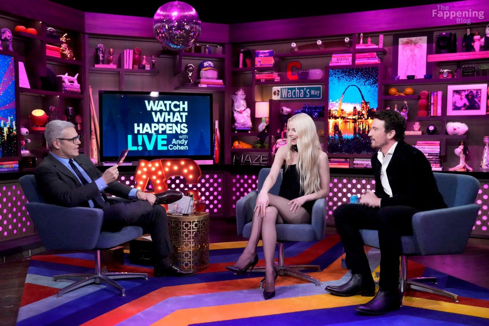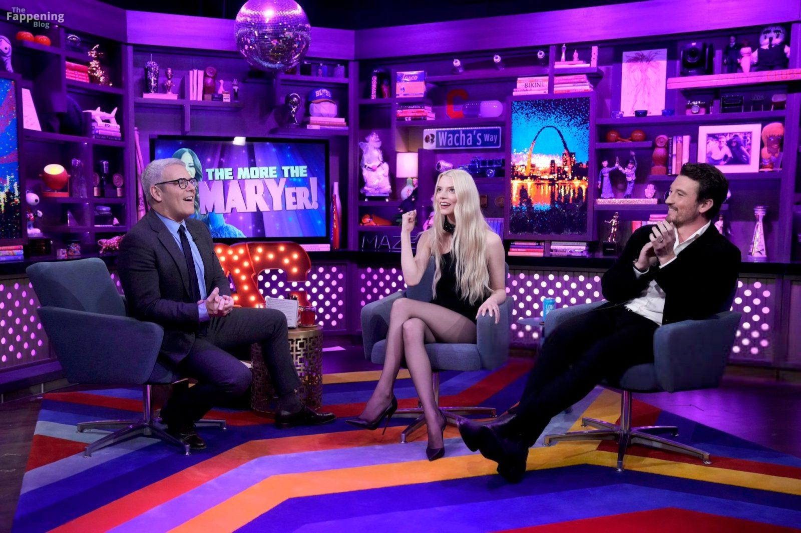 Anya Taylor-Joy aparece en las fotos, mostrando sus esbeltas piernas con medias transparentes en Watch What Happens Live.
