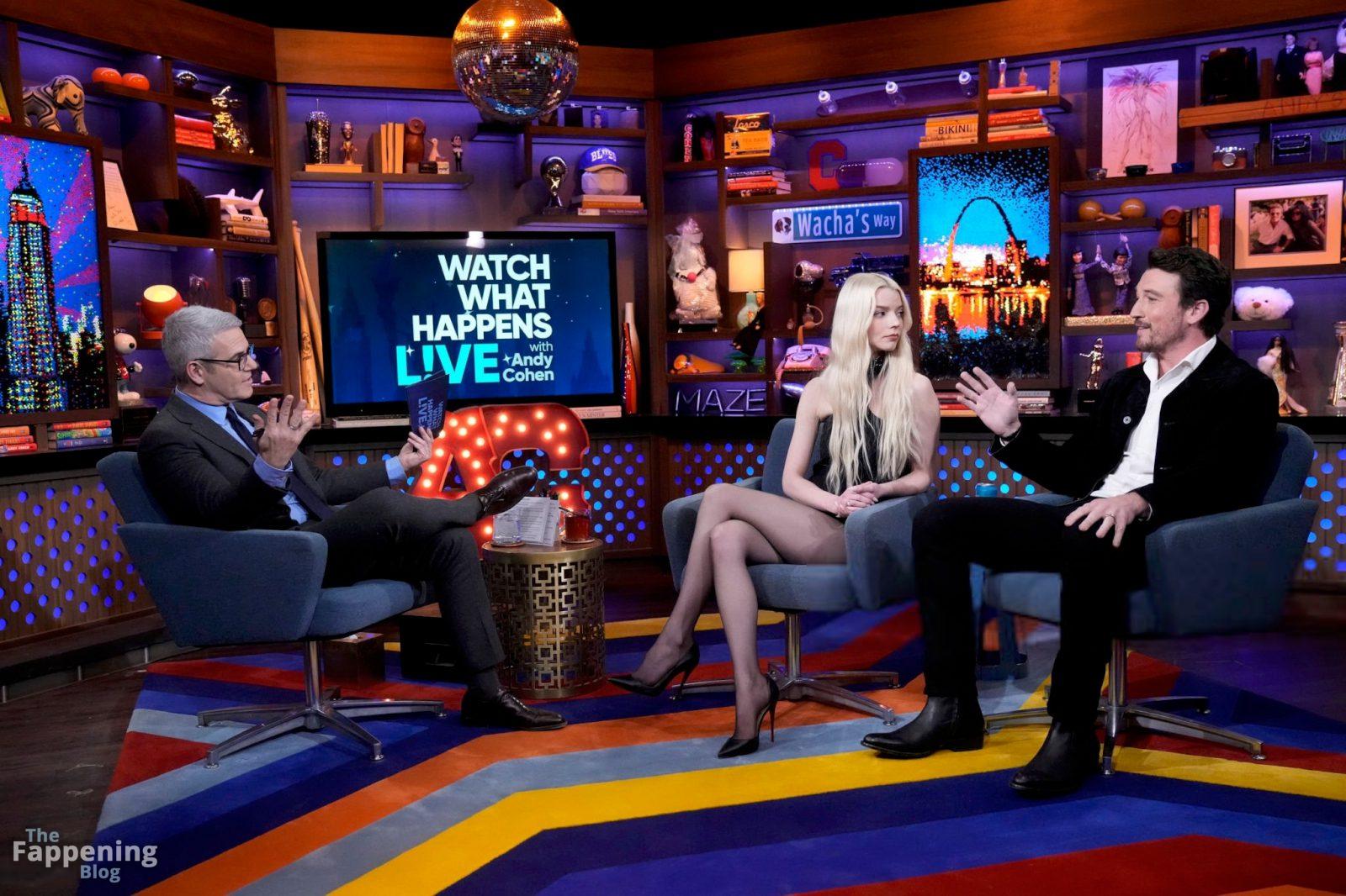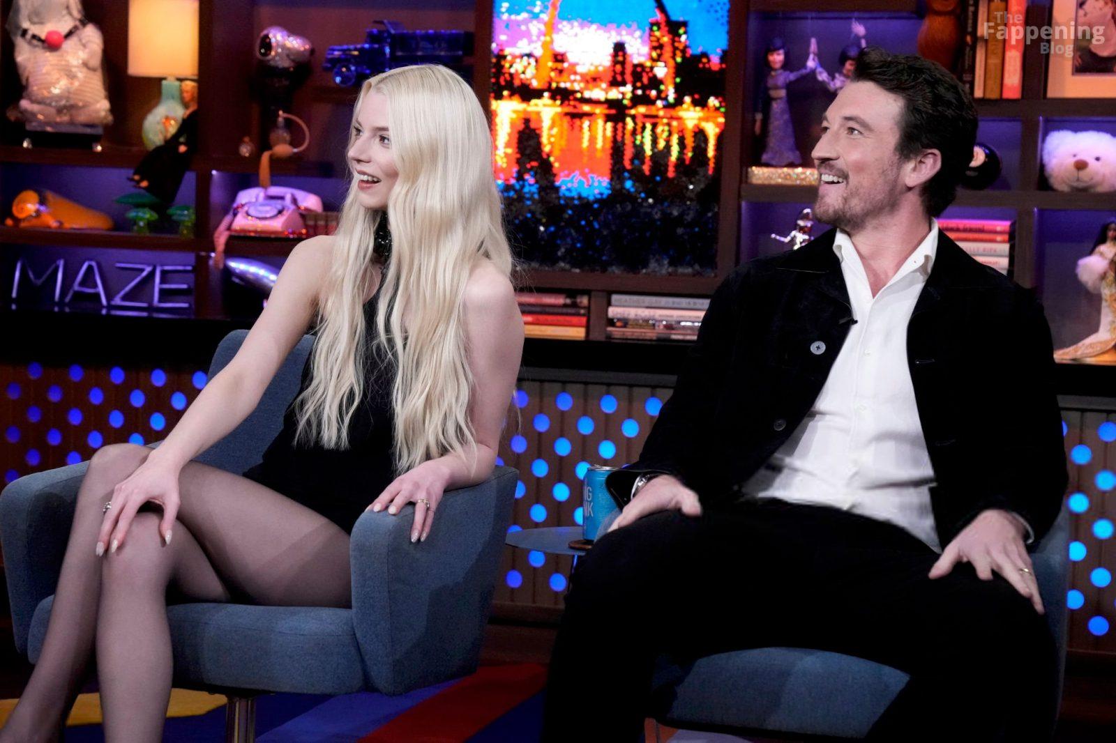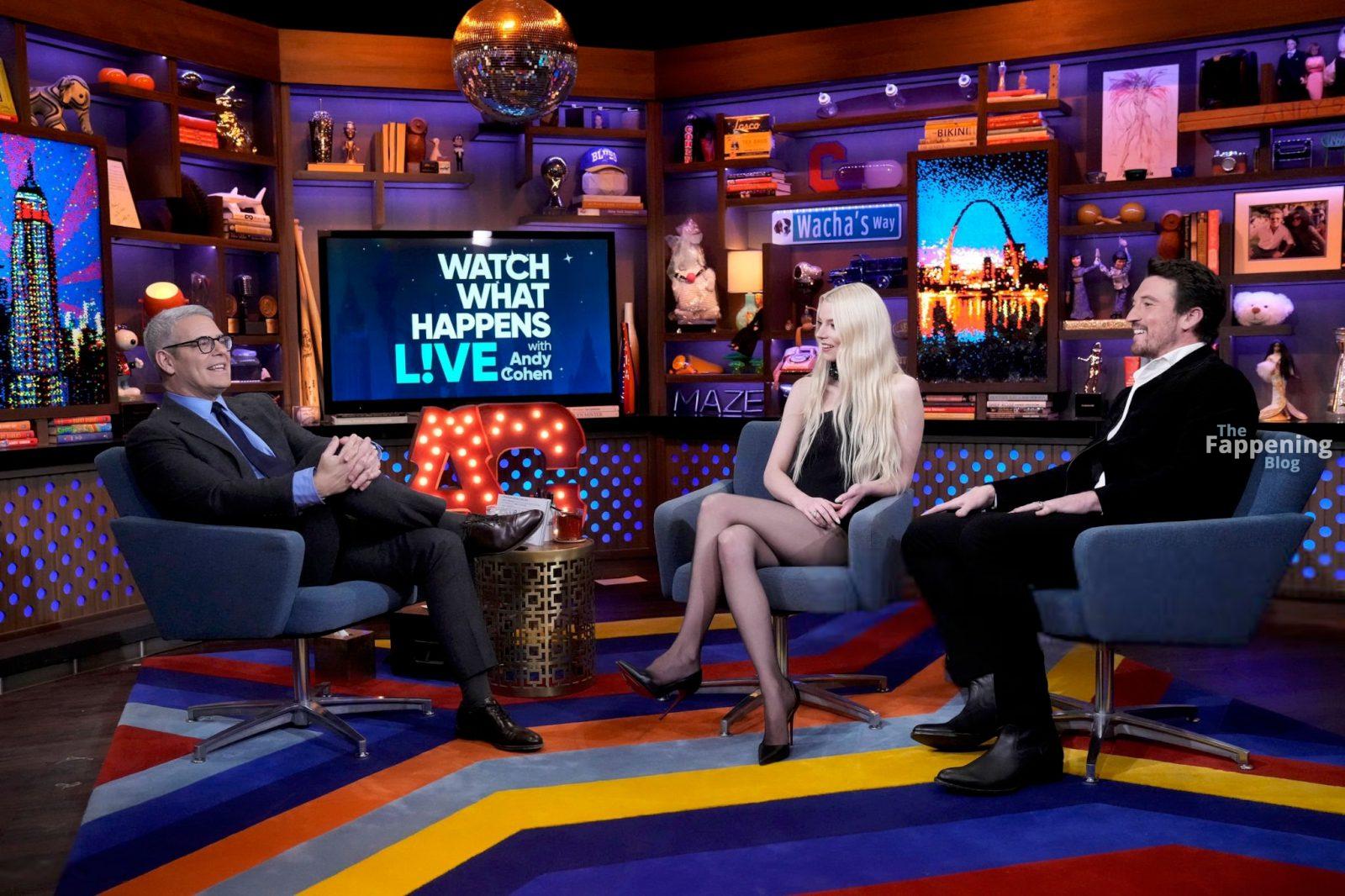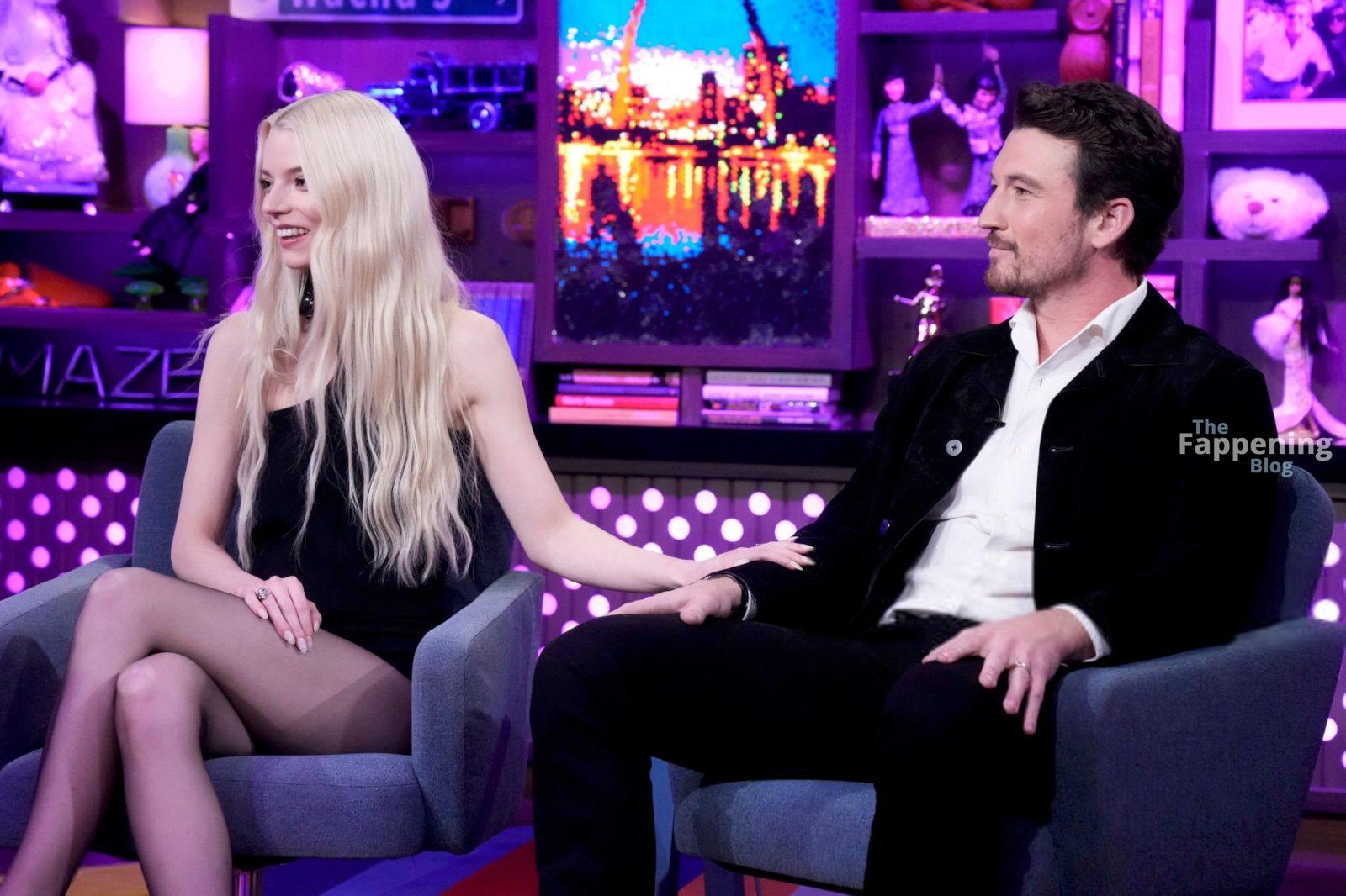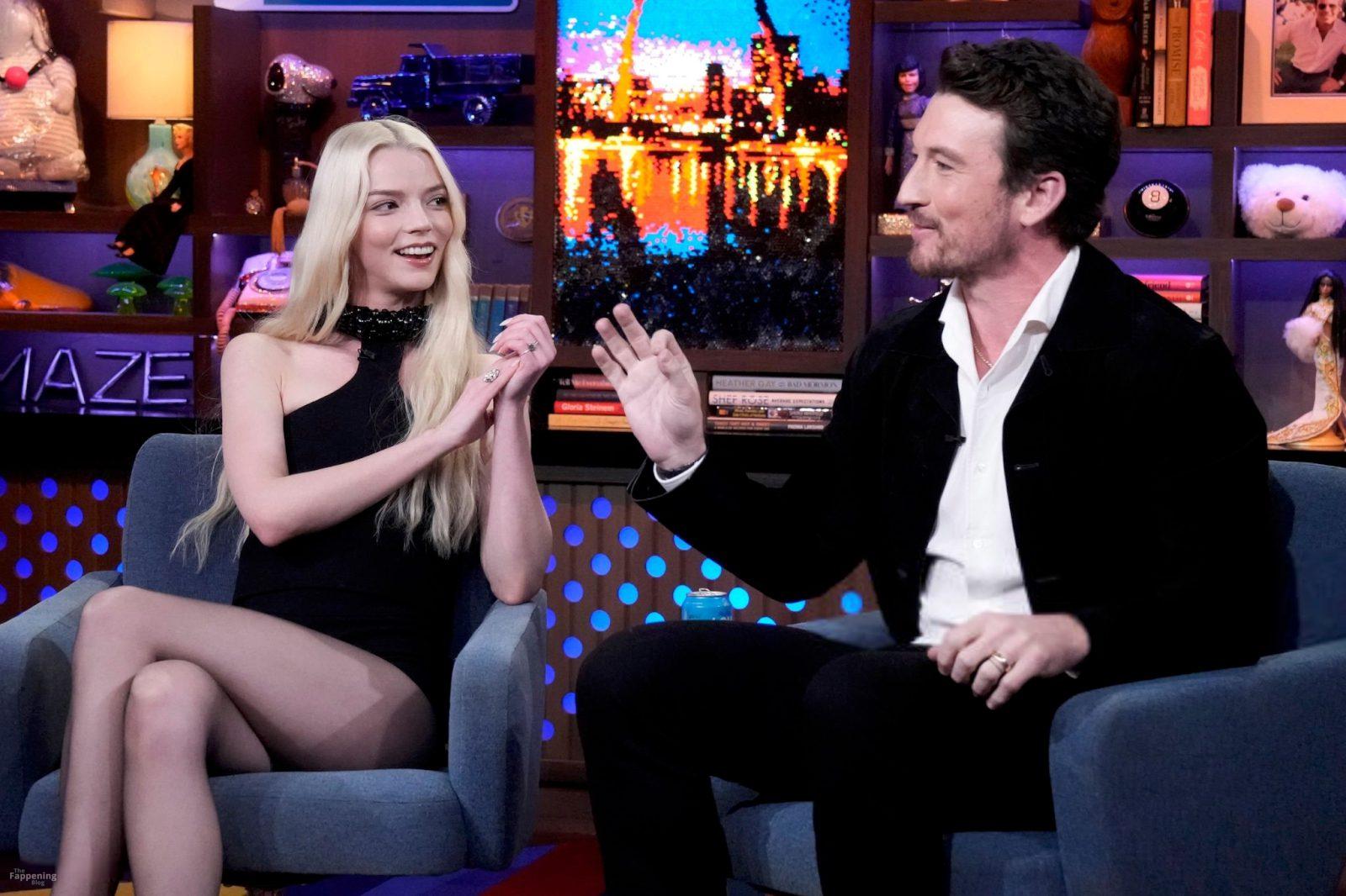Anya Taylor-Joy aparece en las fotos, mostrando sus esbeltas piernas con medias transparentes en Watch What Happens Live.