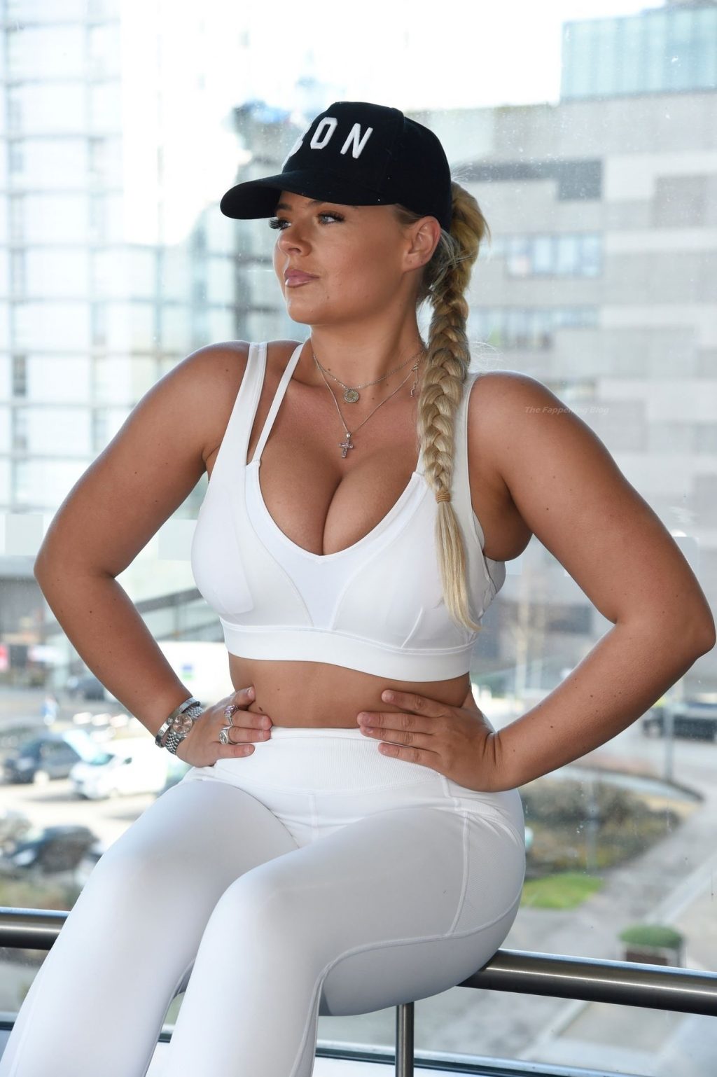 Modelo e Influencer Apollonia Llewellyn muestra un busto exuberante en una sesión de fotos en Manchester, 25/02/2021.