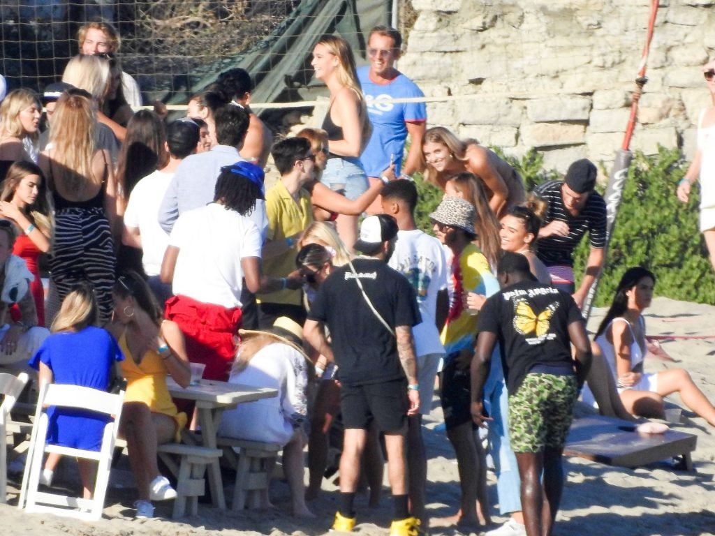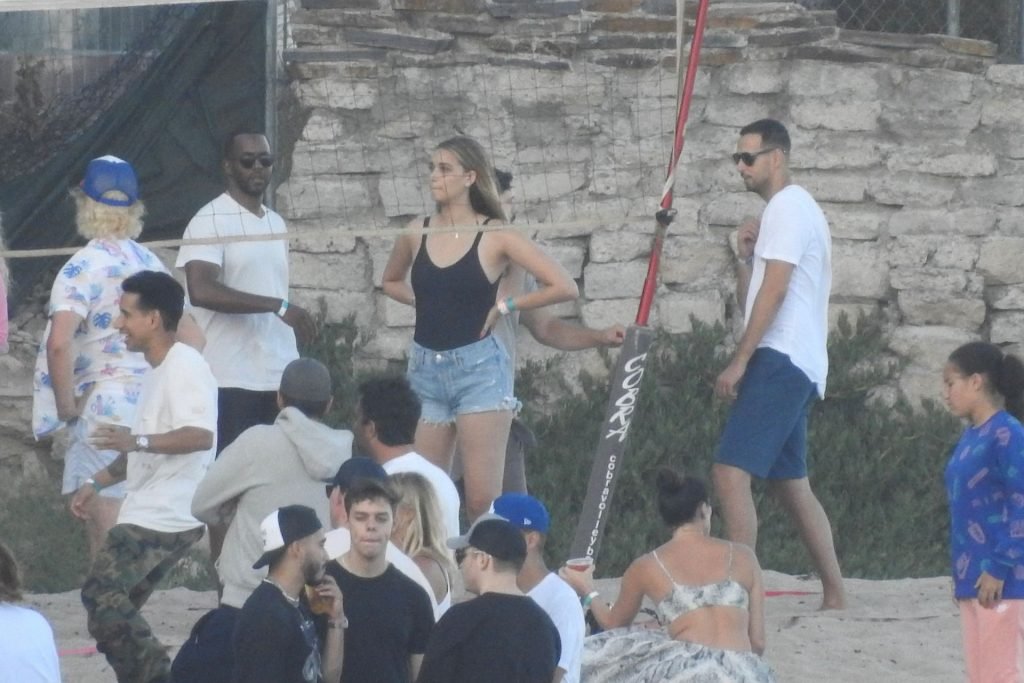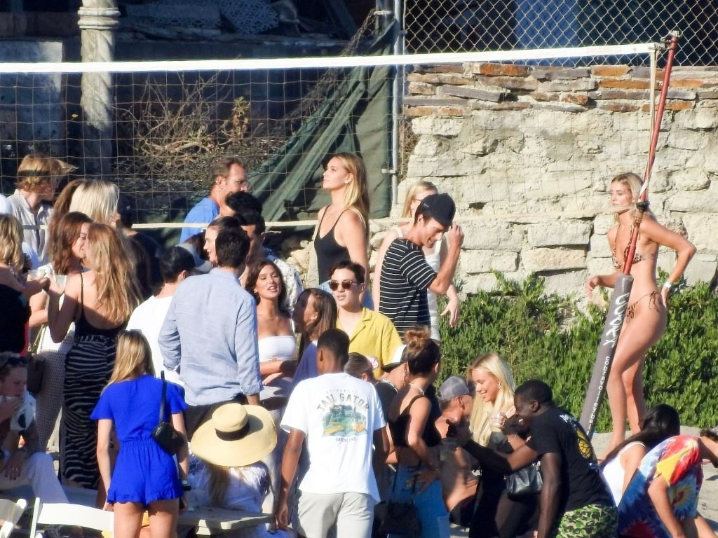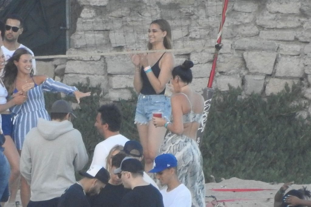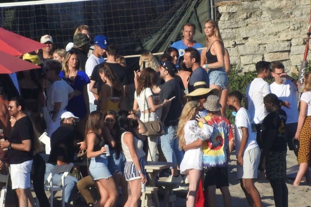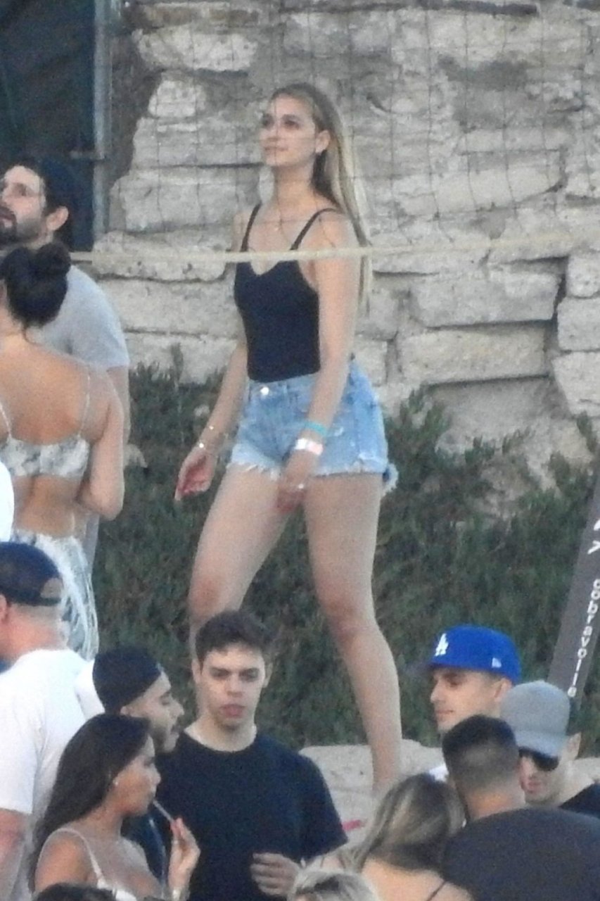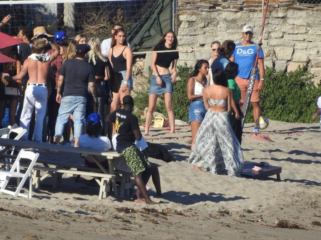 April Love Geary asiste a una fiesta en la playa en Malibu donde Jamie Foxx y Sean Penn también son invitados, 25/08/2019. La modelo llegó con algunas amigas y se la pudo ver disfrutando de una bebida fría en la playa.