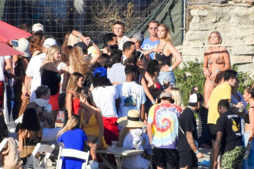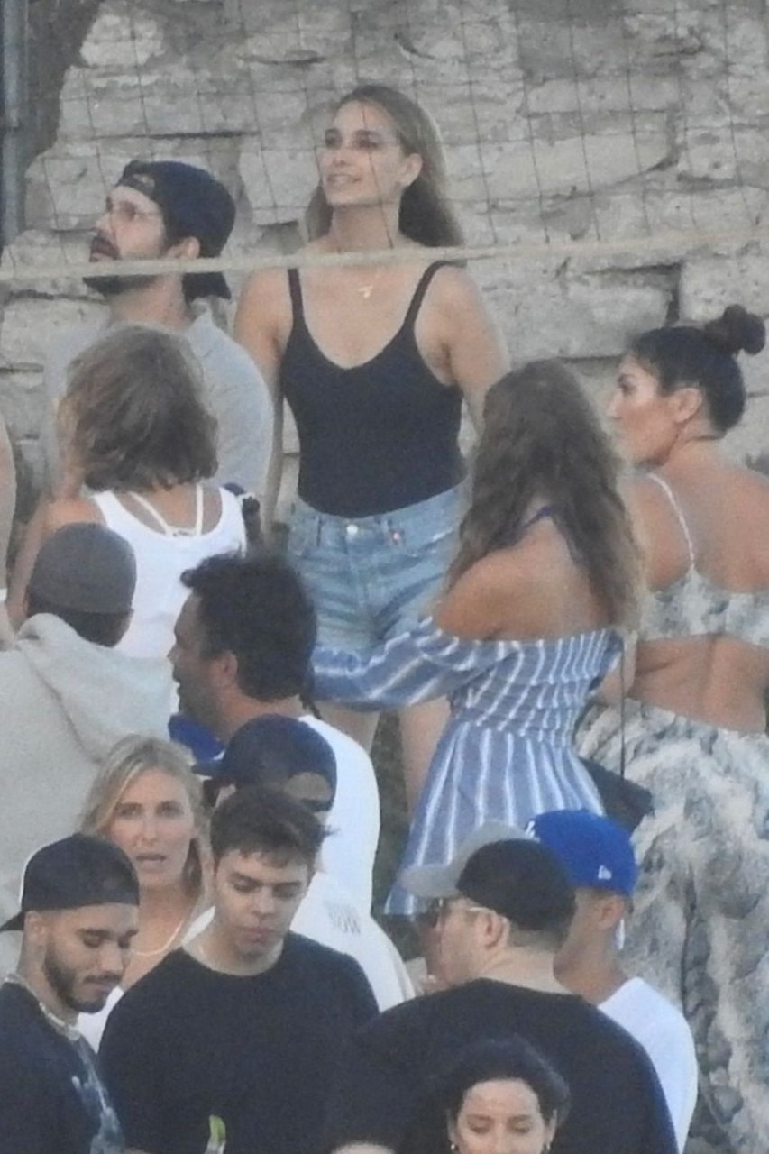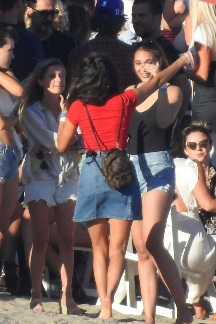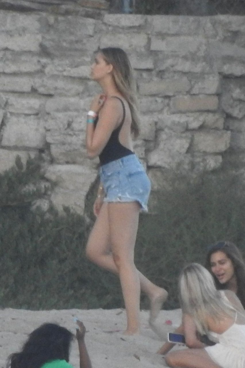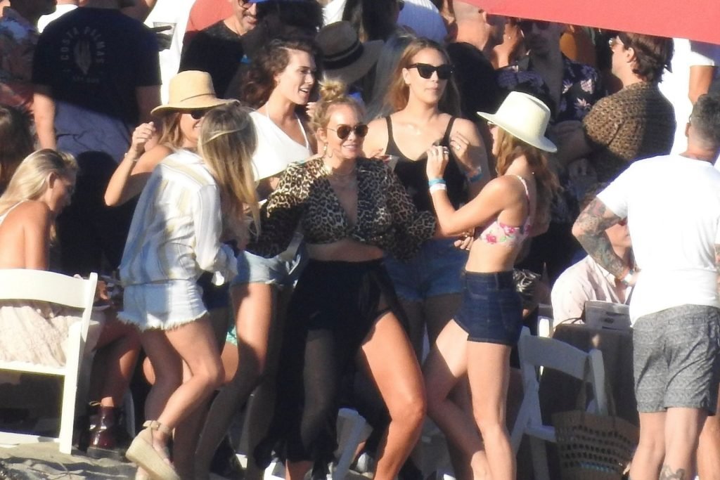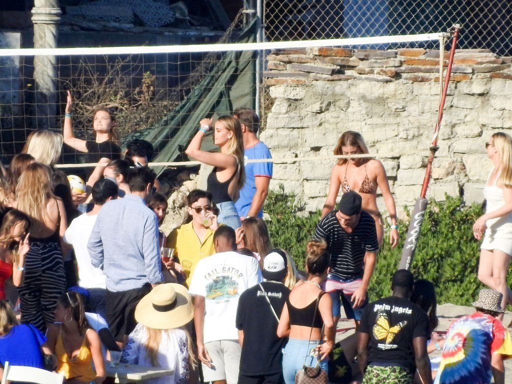 April Love Geary asiste a una fiesta en la playa en Malibu donde Jamie Foxx y Sean Penn también son invitados, 25/08/2019. La modelo llegó con algunas amigas y se la pudo ver disfrutando de una bebida fría en la playa.