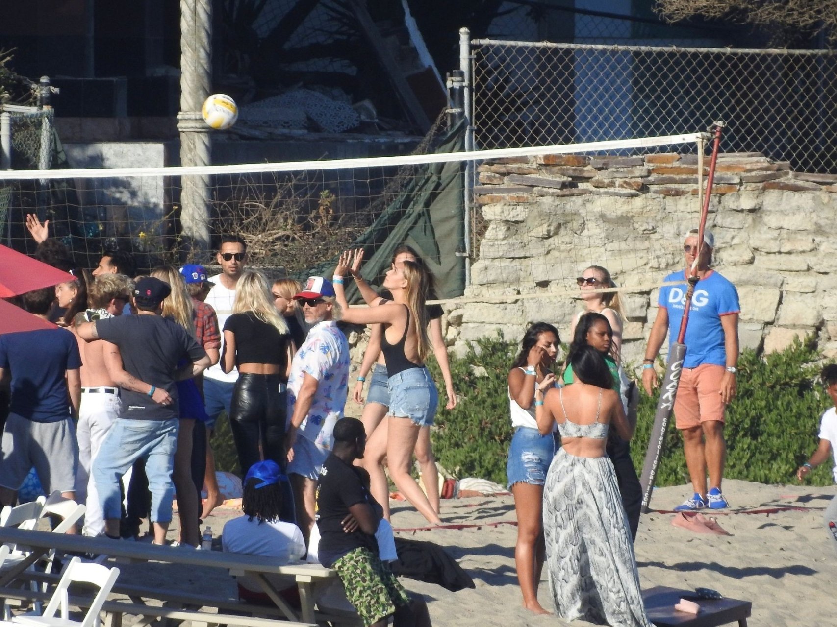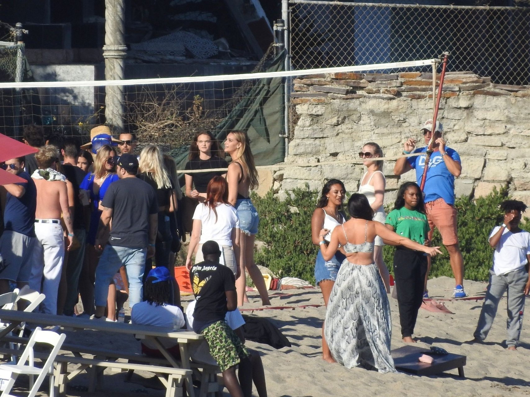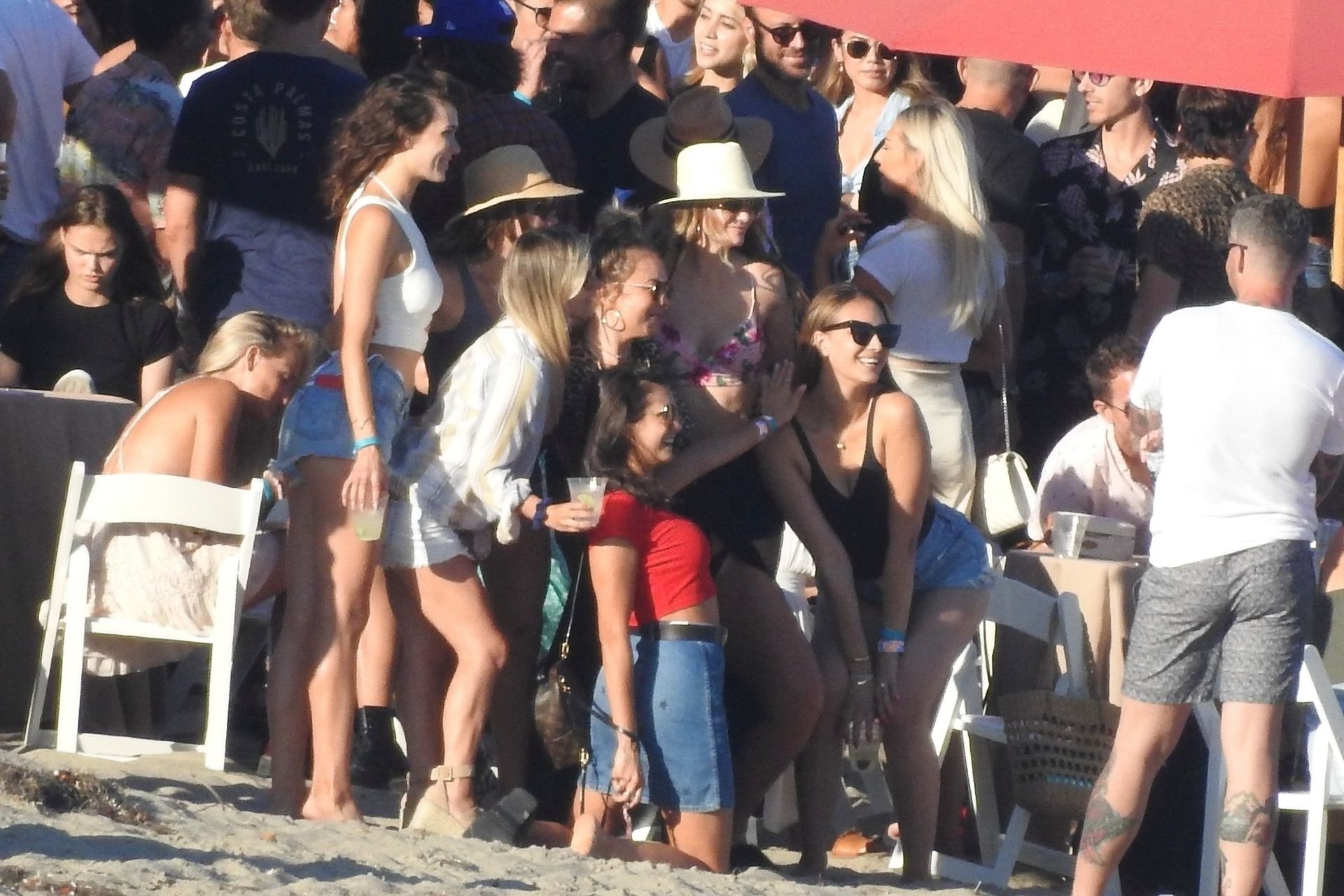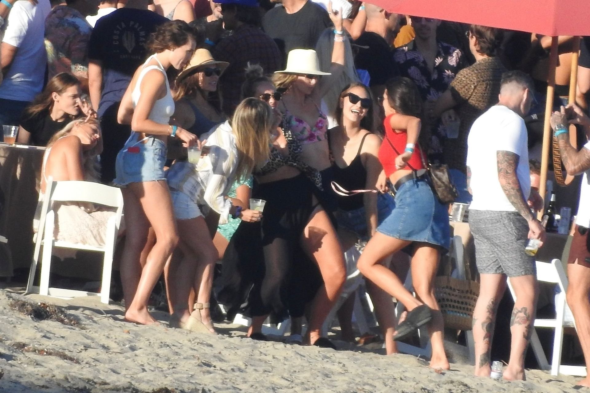 April Love Geary asiste a una fiesta en la playa en Malibu donde Jamie Foxx y Sean Penn también son invitados, 25/08/2019. La modelo llegó con algunas amigas y se la pudo ver disfrutando de una bebida fría en la playa.