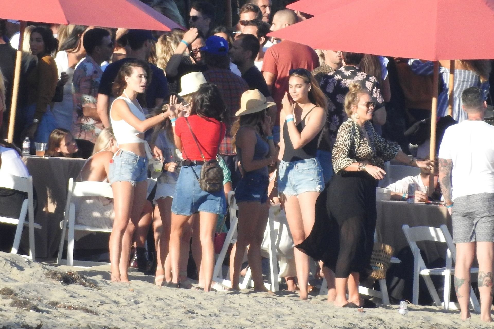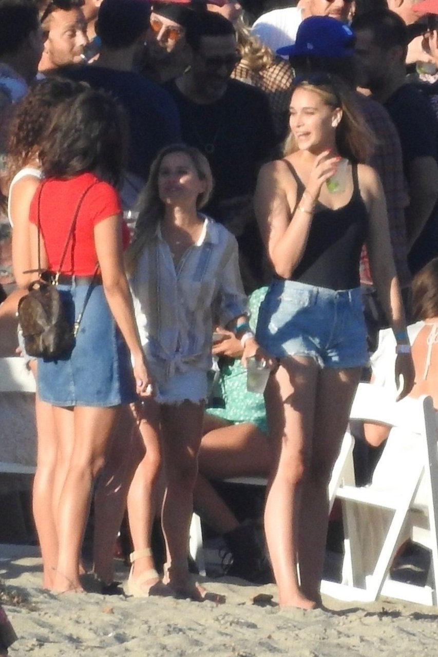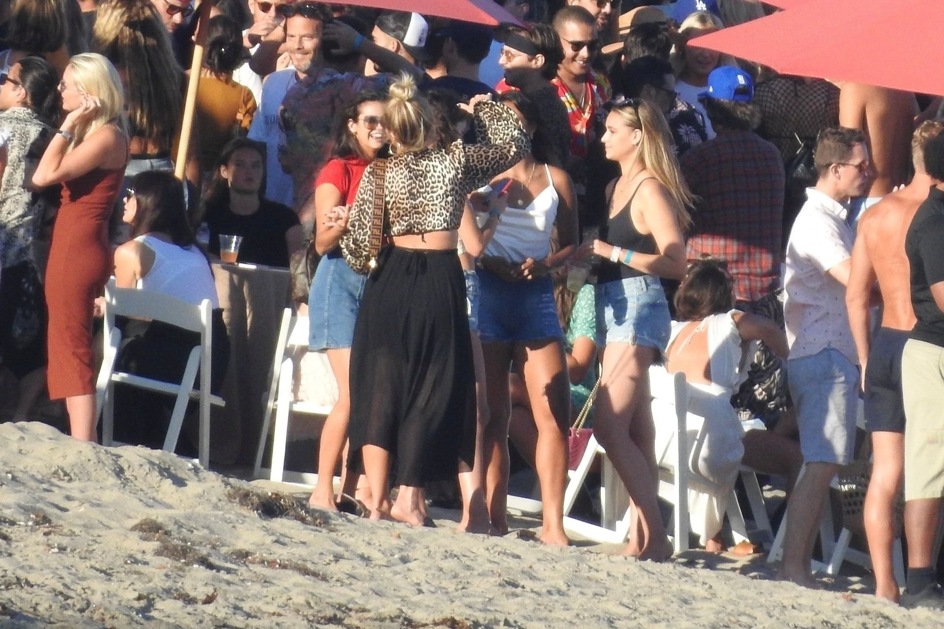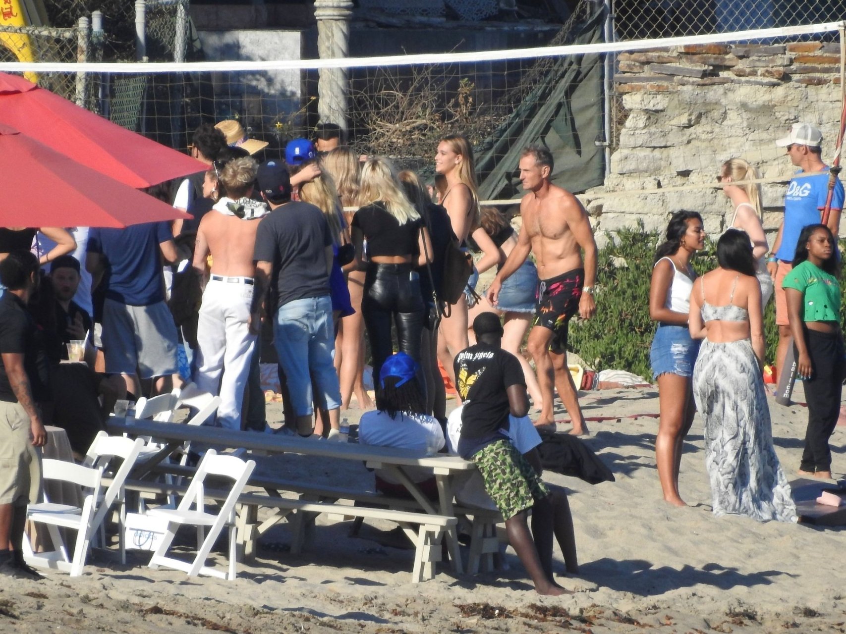 April Love Geary asiste a una fiesta en la playa en Malibu donde Jamie Foxx y Sean Penn también son invitados, 25/08/2019. La modelo llegó con algunas amigas y se la pudo ver disfrutando de una bebida fría en la playa.