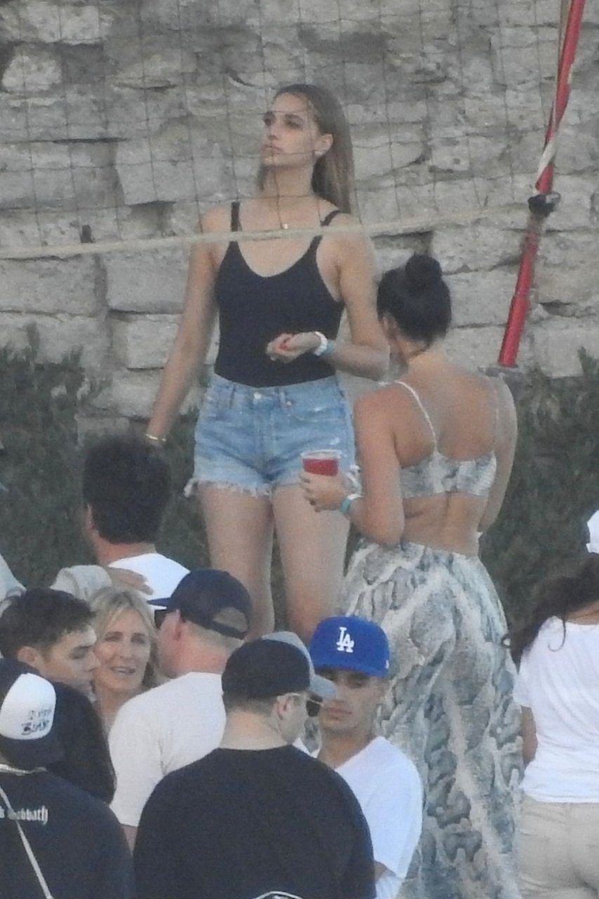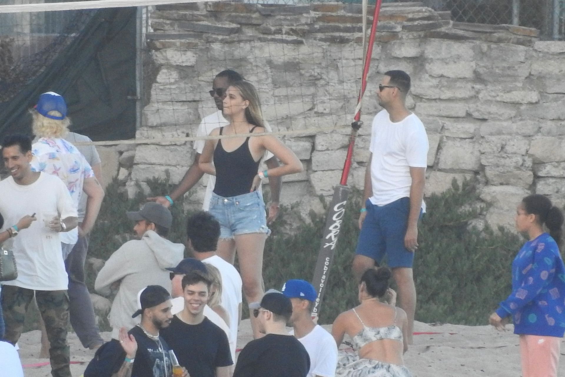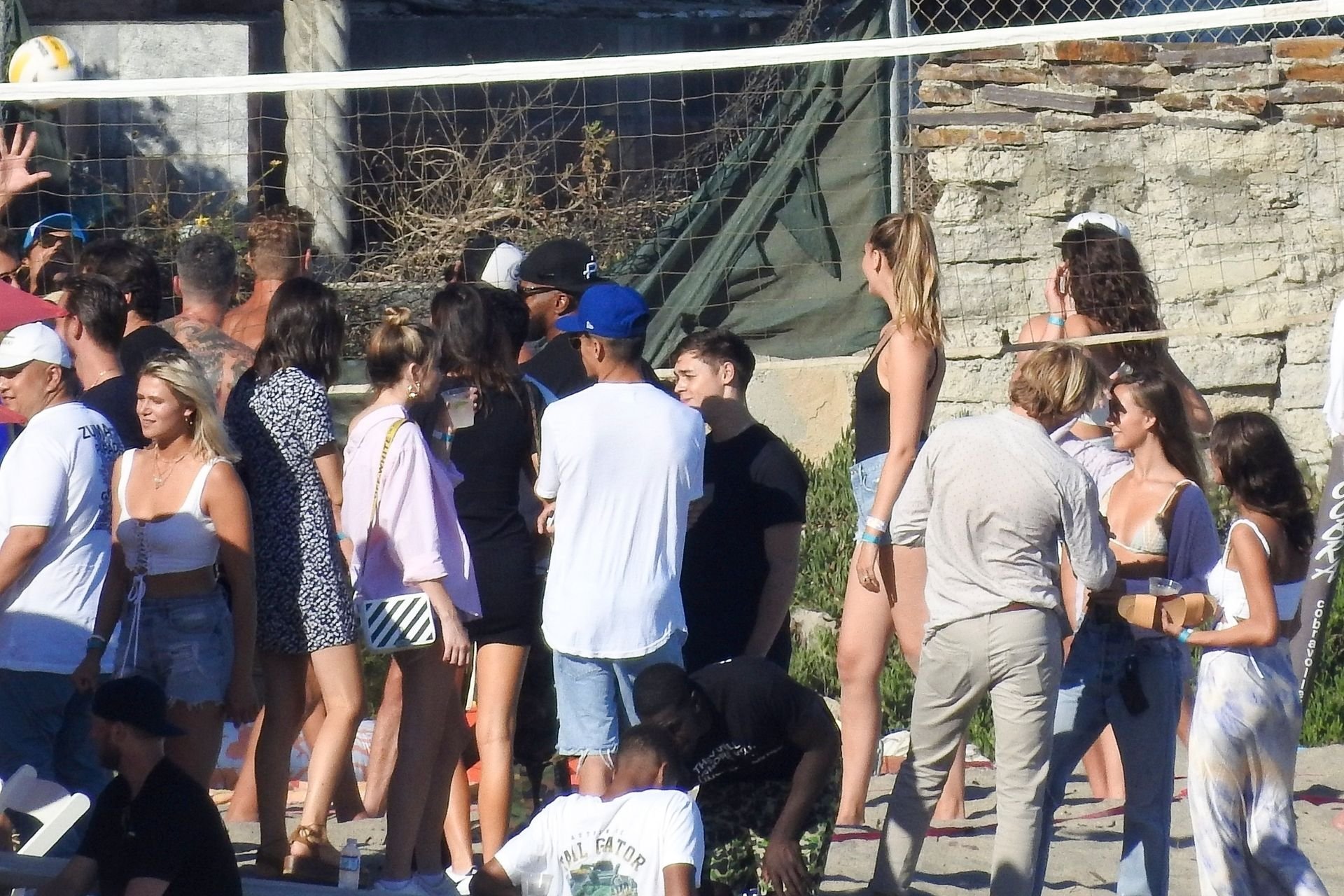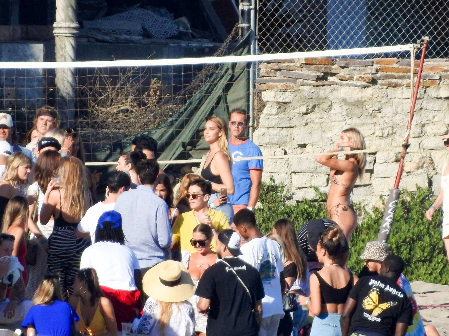 April Love Geary asiste a una fiesta en la playa en Malibu donde Jamie Foxx y Sean Penn también son invitados, 25/08/2019. La modelo llegó con algunas amigas y se la pudo ver disfrutando de una bebida fría en la playa.