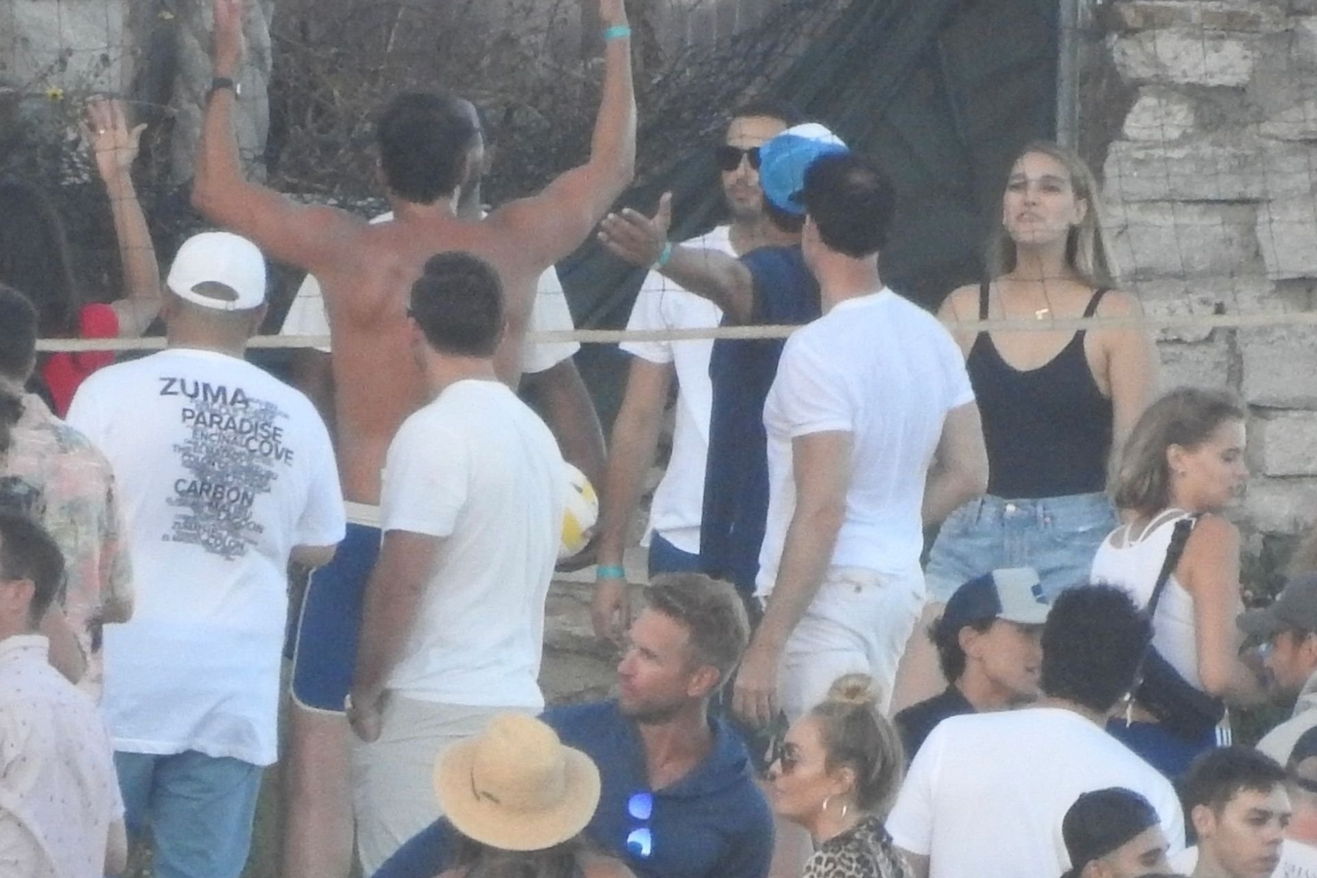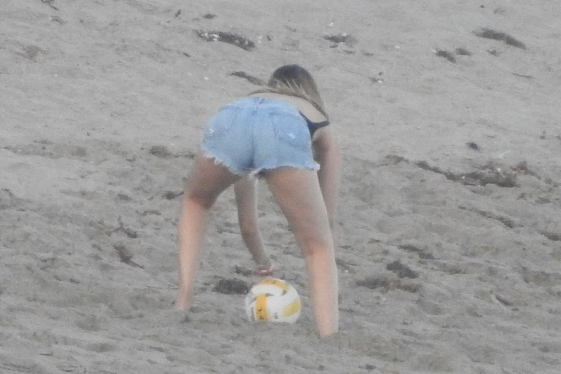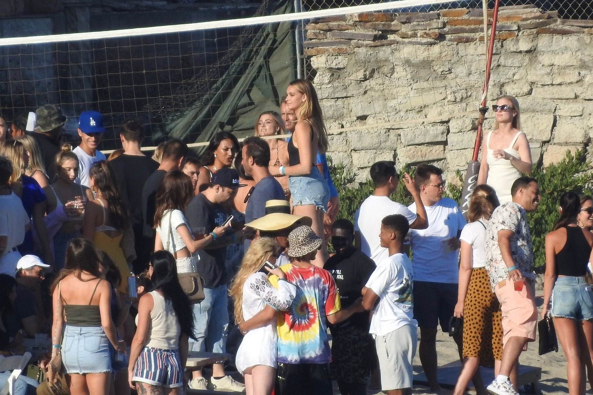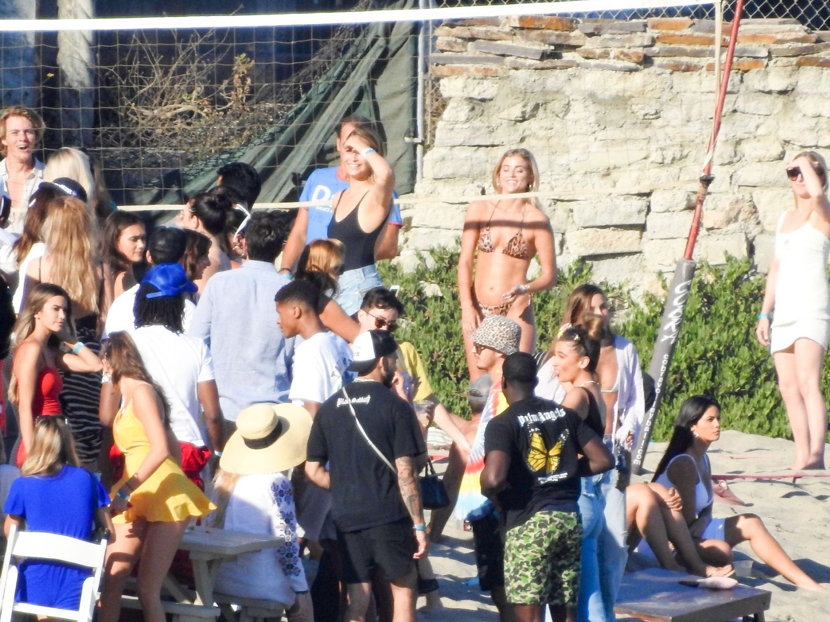 April Love Geary asiste a una fiesta en la playa en Malibu donde Jamie Foxx y Sean Penn también son invitados, 25/08/2019. La modelo llegó con algunas amigas y se la pudo ver disfrutando de una bebida fría en la playa.