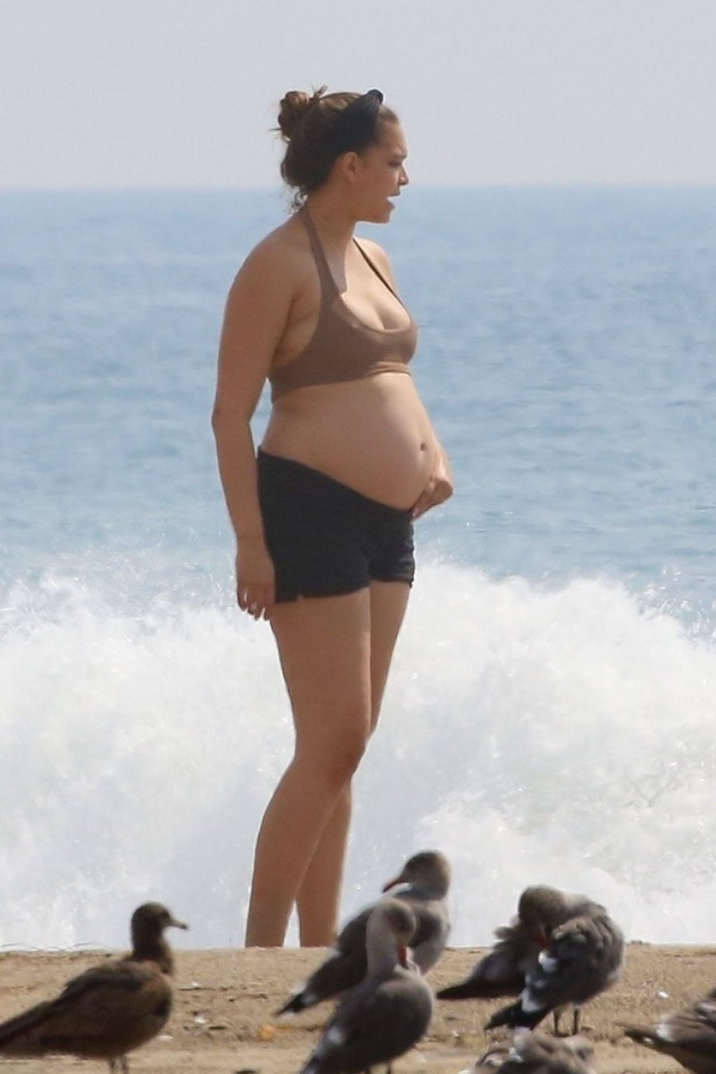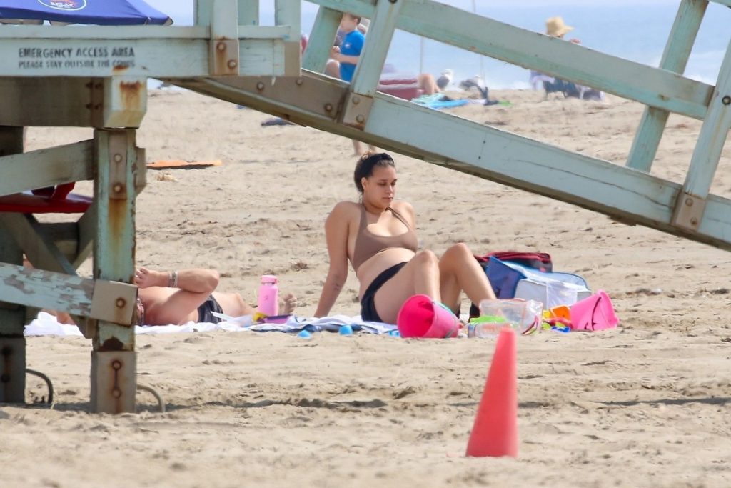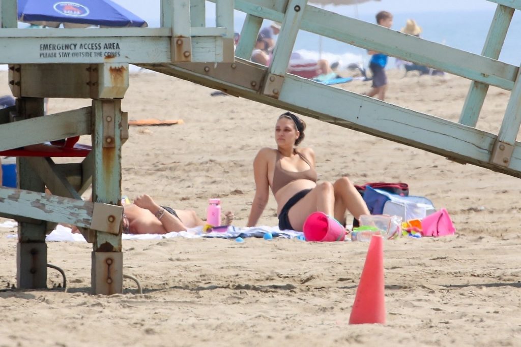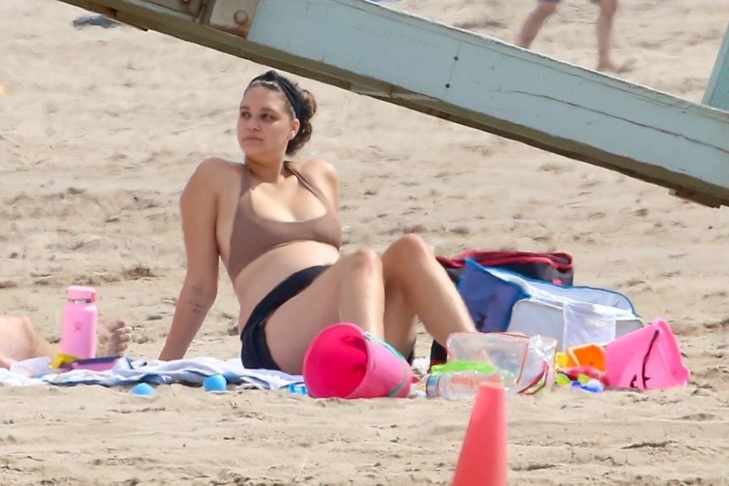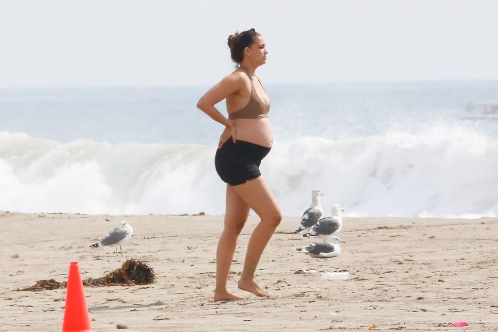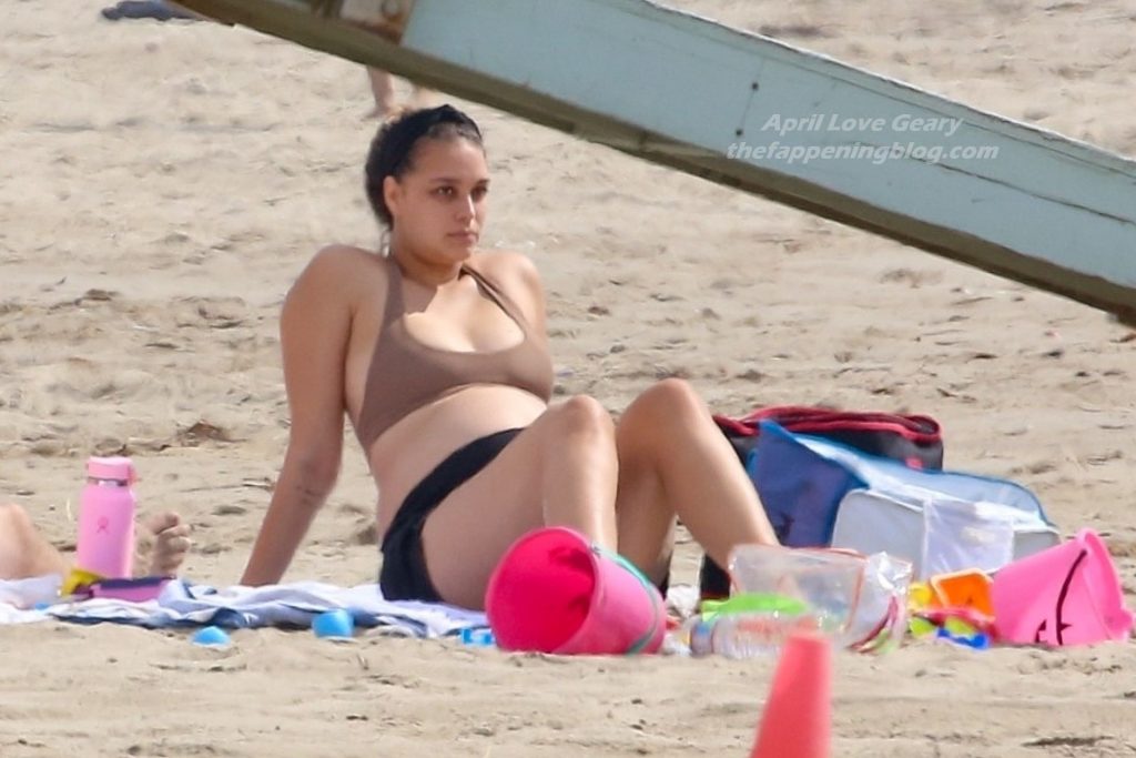 April Love Geary muestra su creciente barriga de embarazada en la playa con Robin Thicke (29 fotos)