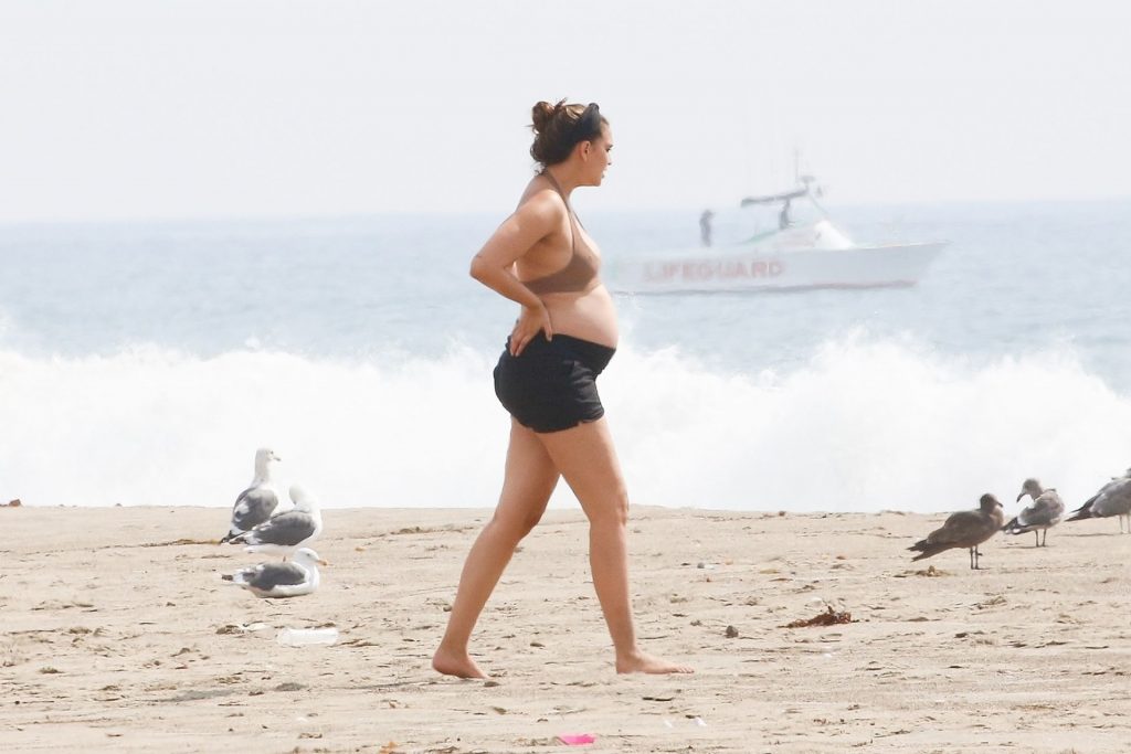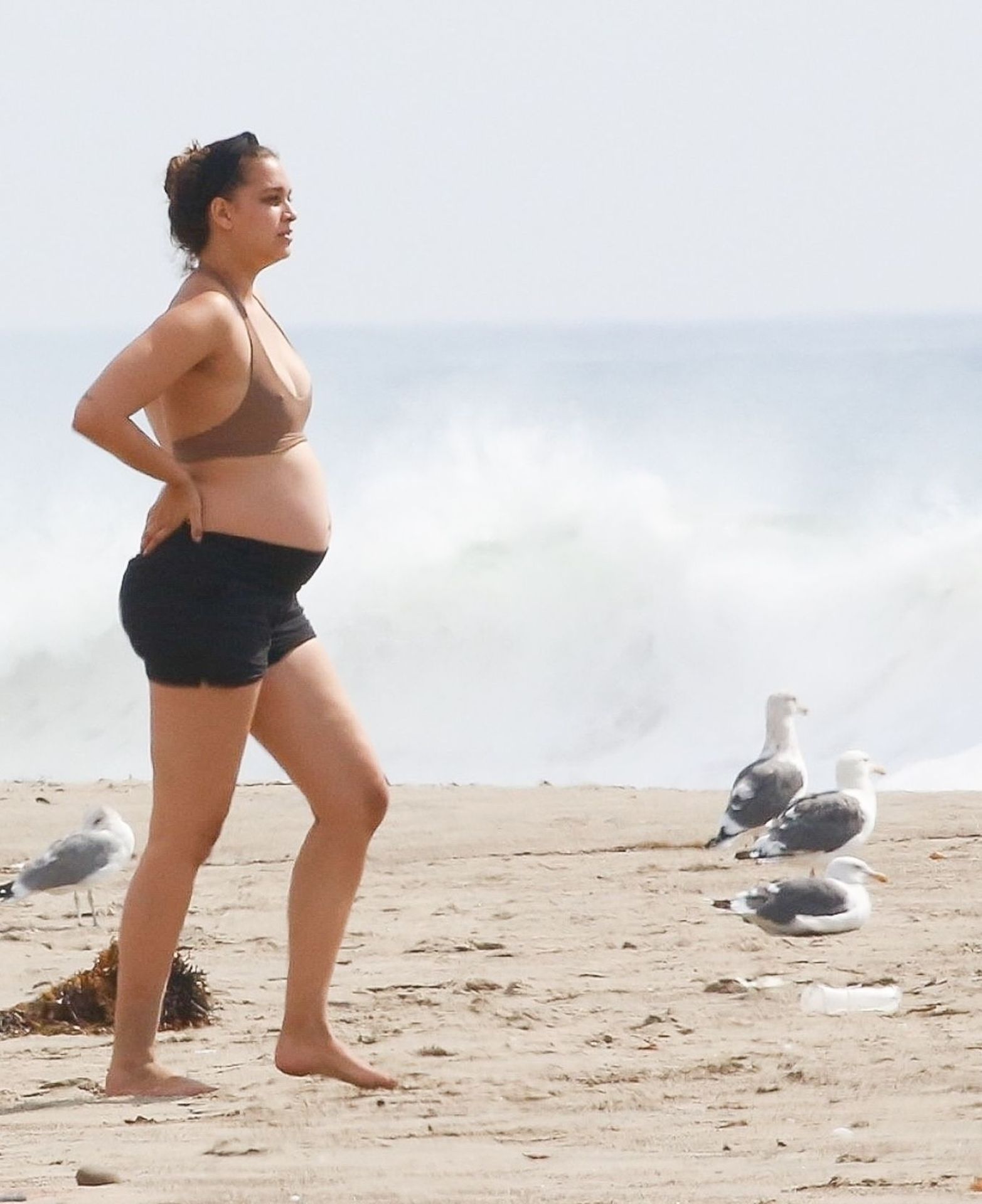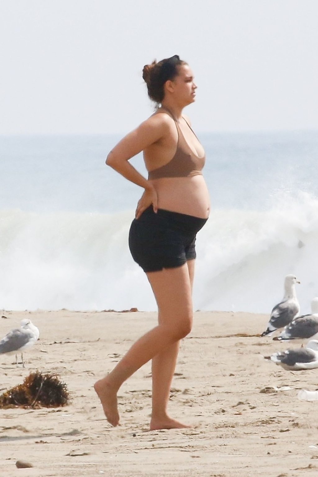 April Love Geary muestra su creciente barriga de embarazada en la playa con Robin Thicke (29 fotos)