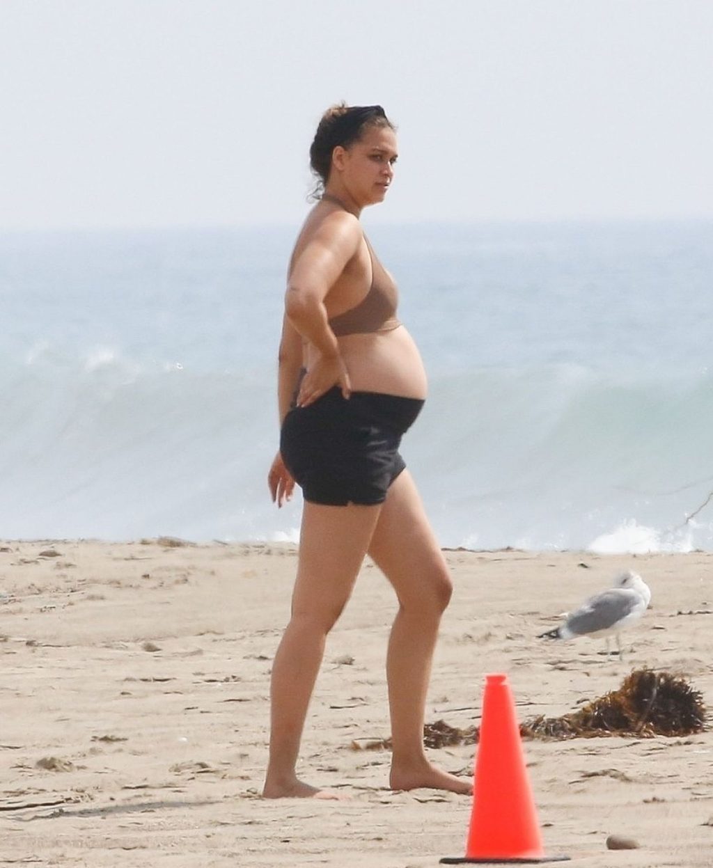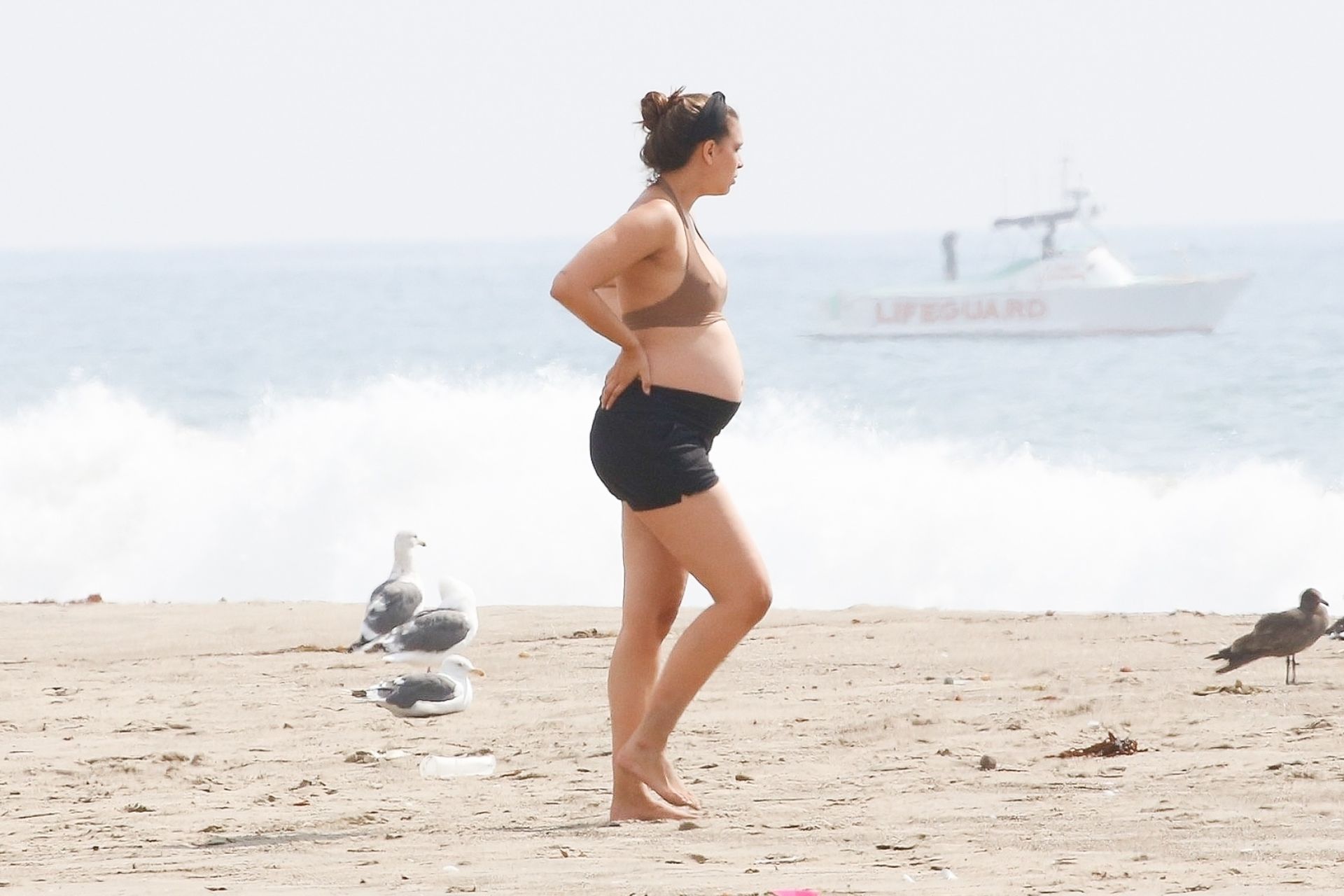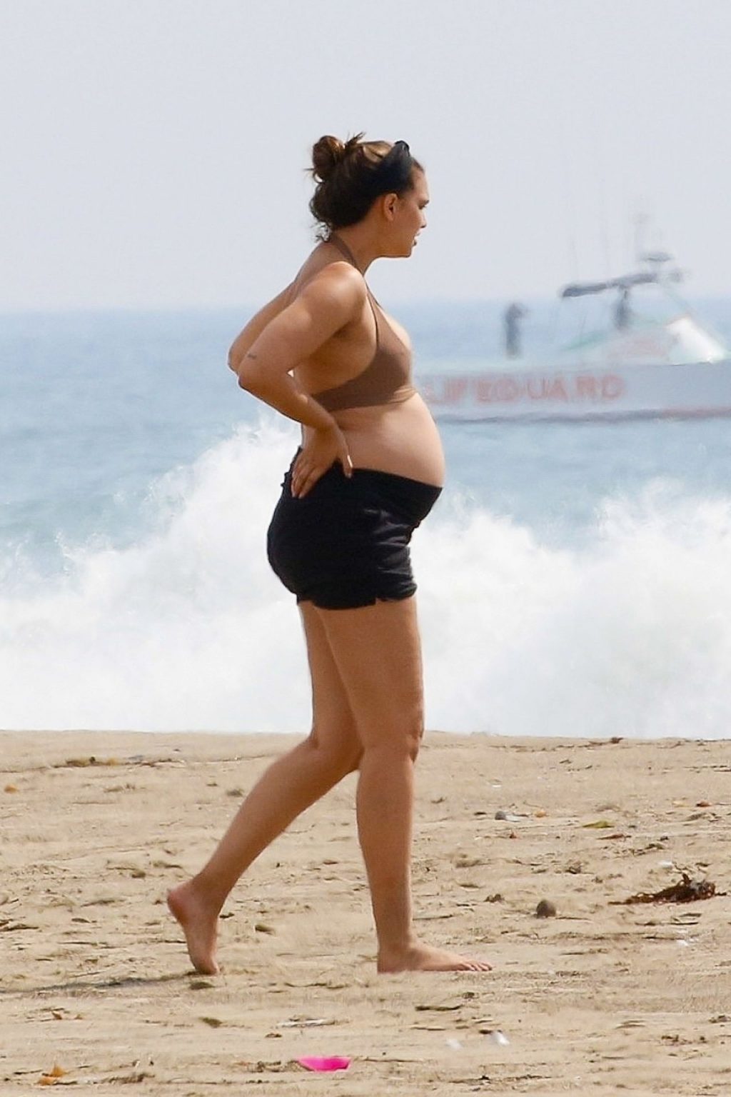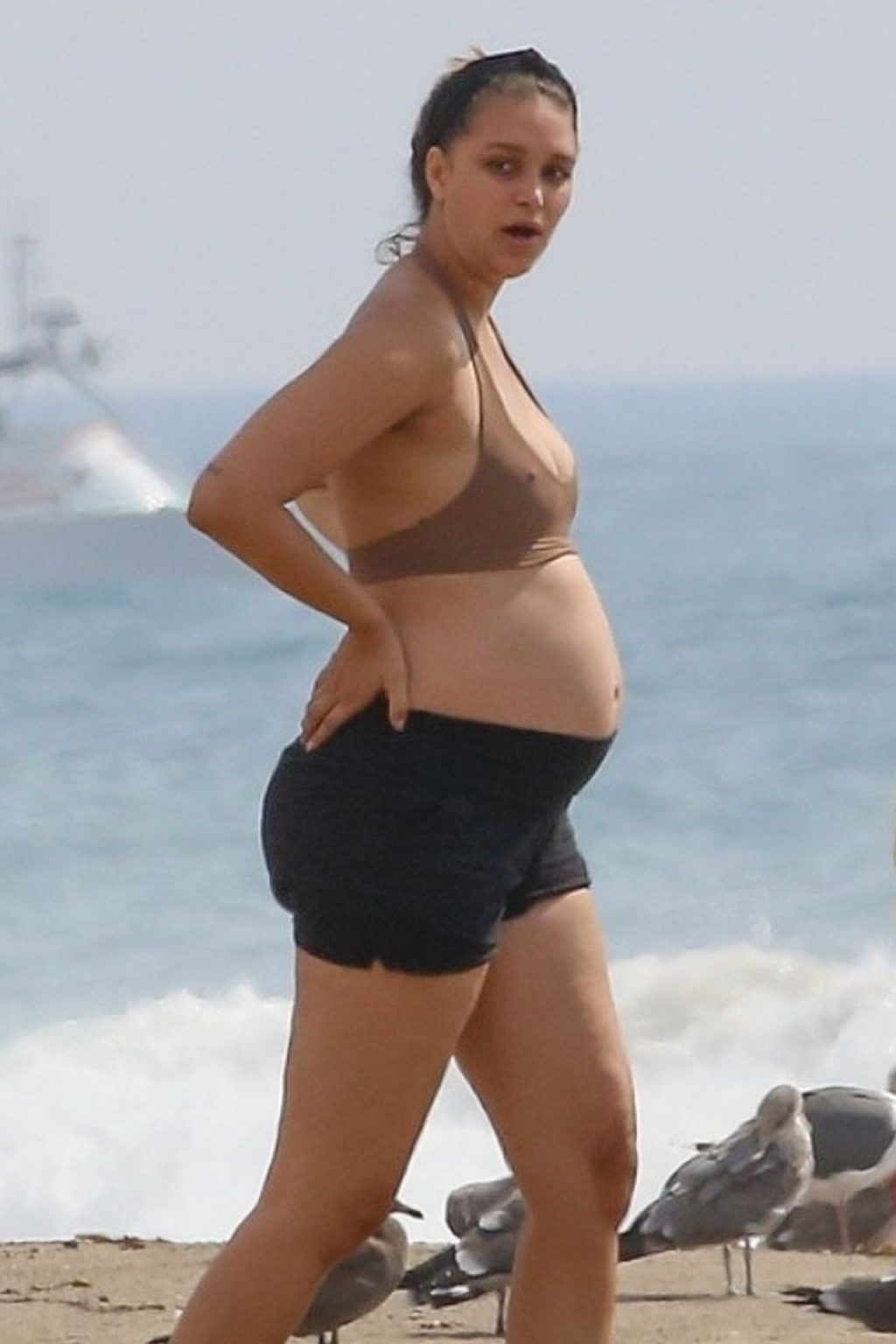 April Love Geary muestra su creciente barriga de embarazada en la playa con Robin Thicke (29 fotos)