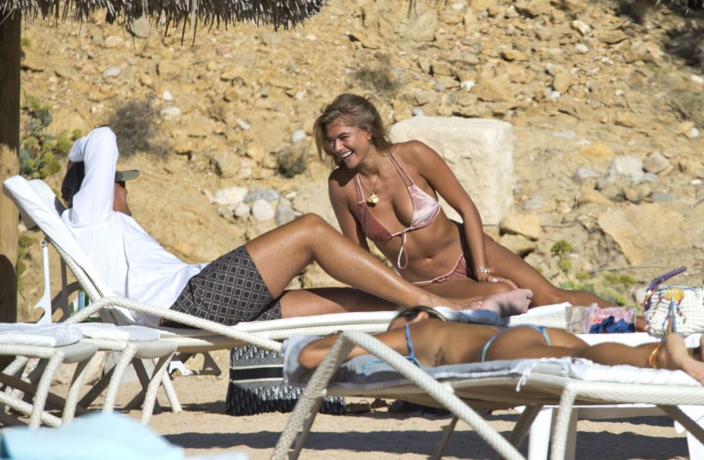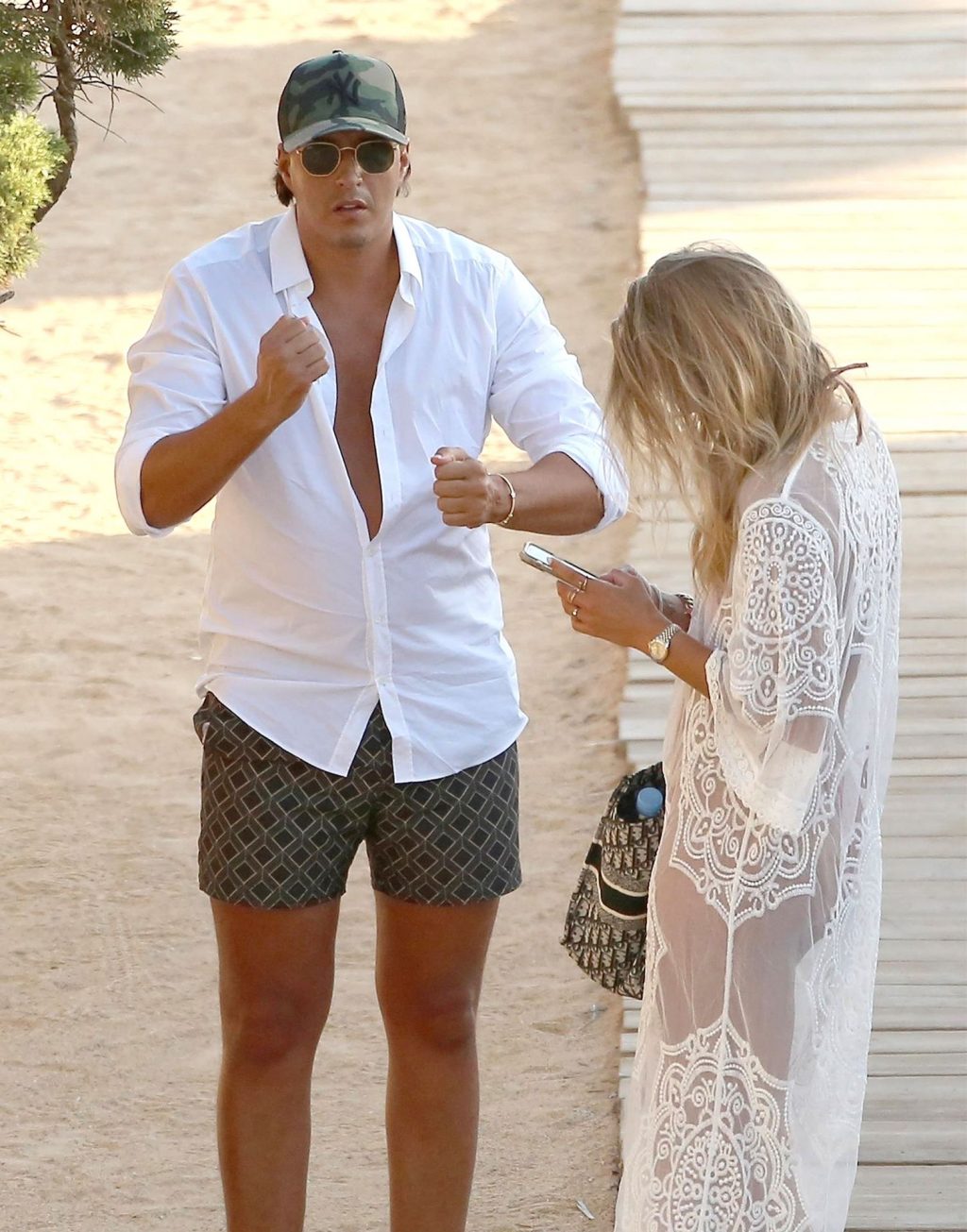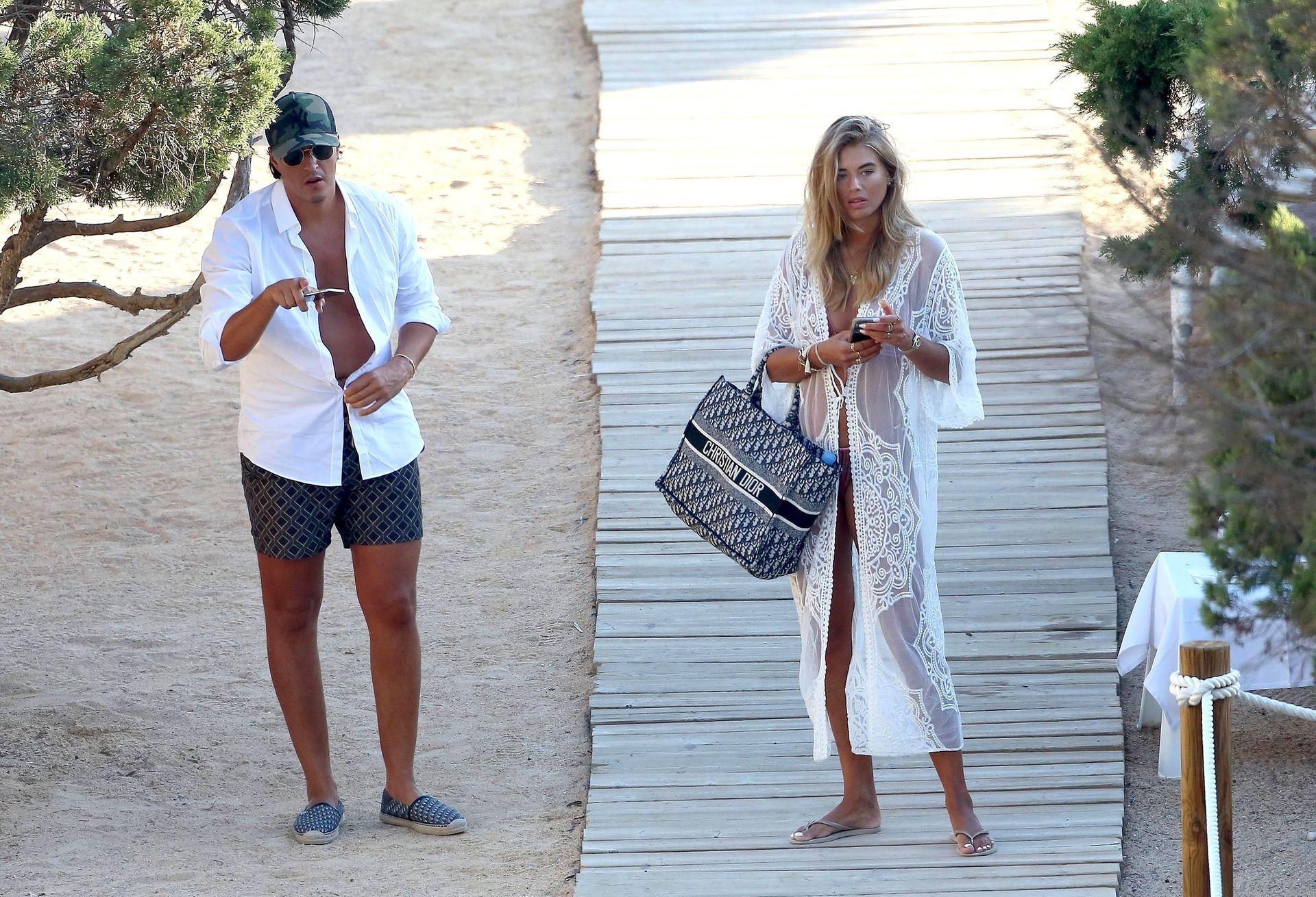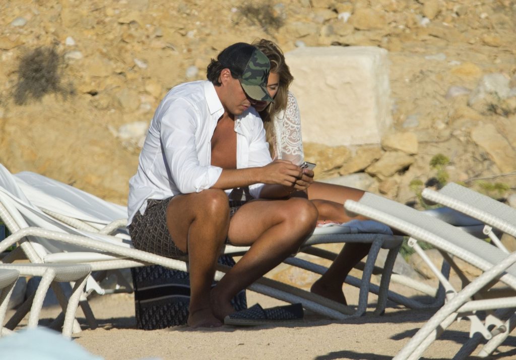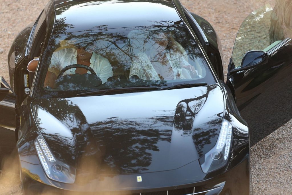 Arabella estuvo acompañada por su nuevo novio mientras tomaban el sol juntos con casi 30 grados de calor antes de subirse a su reluciente Ferrari negro.