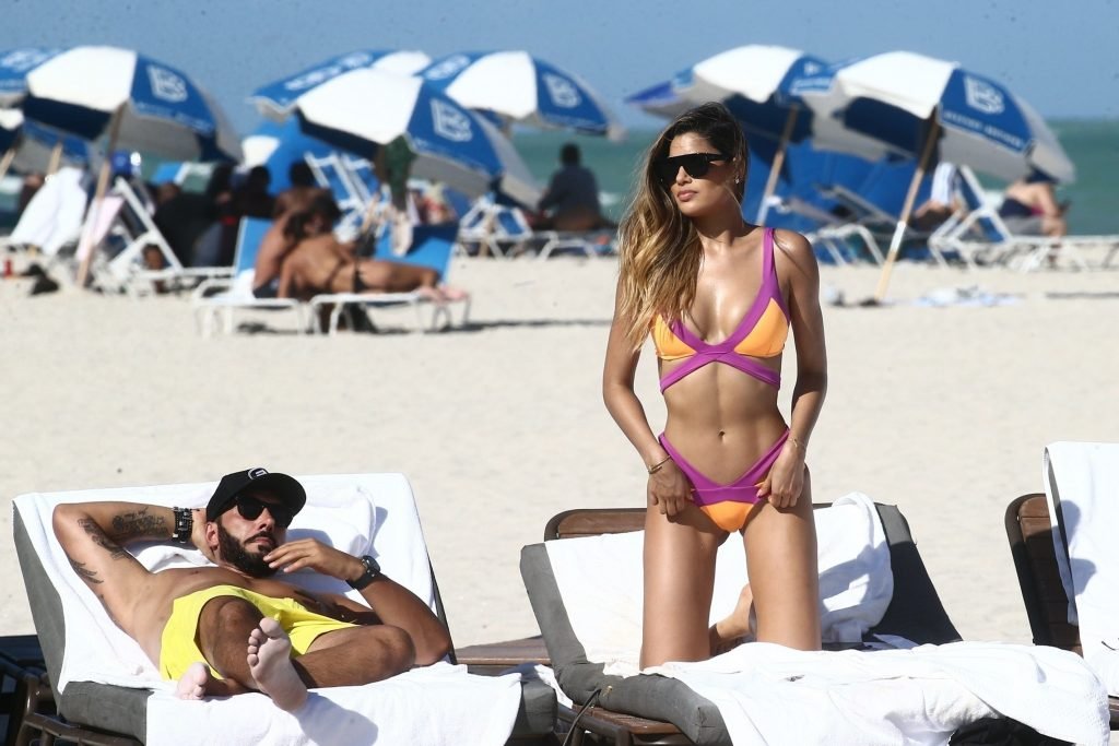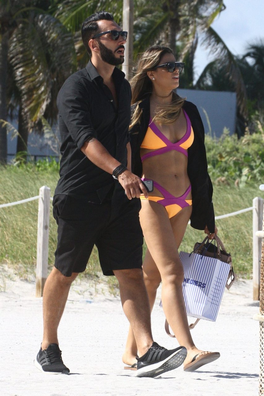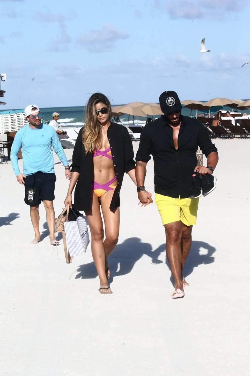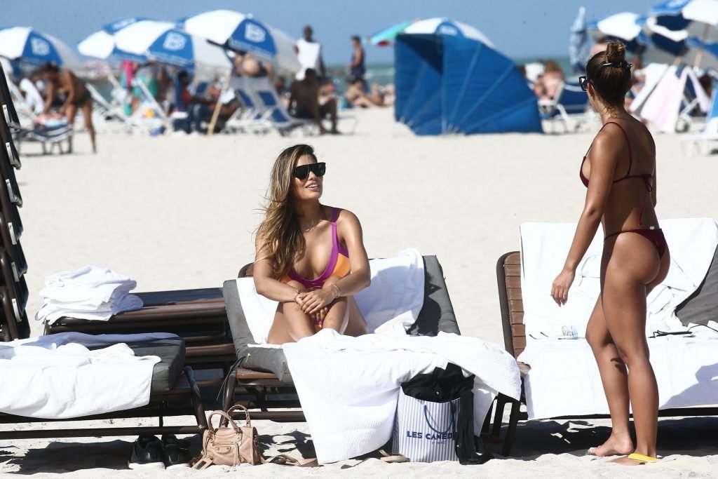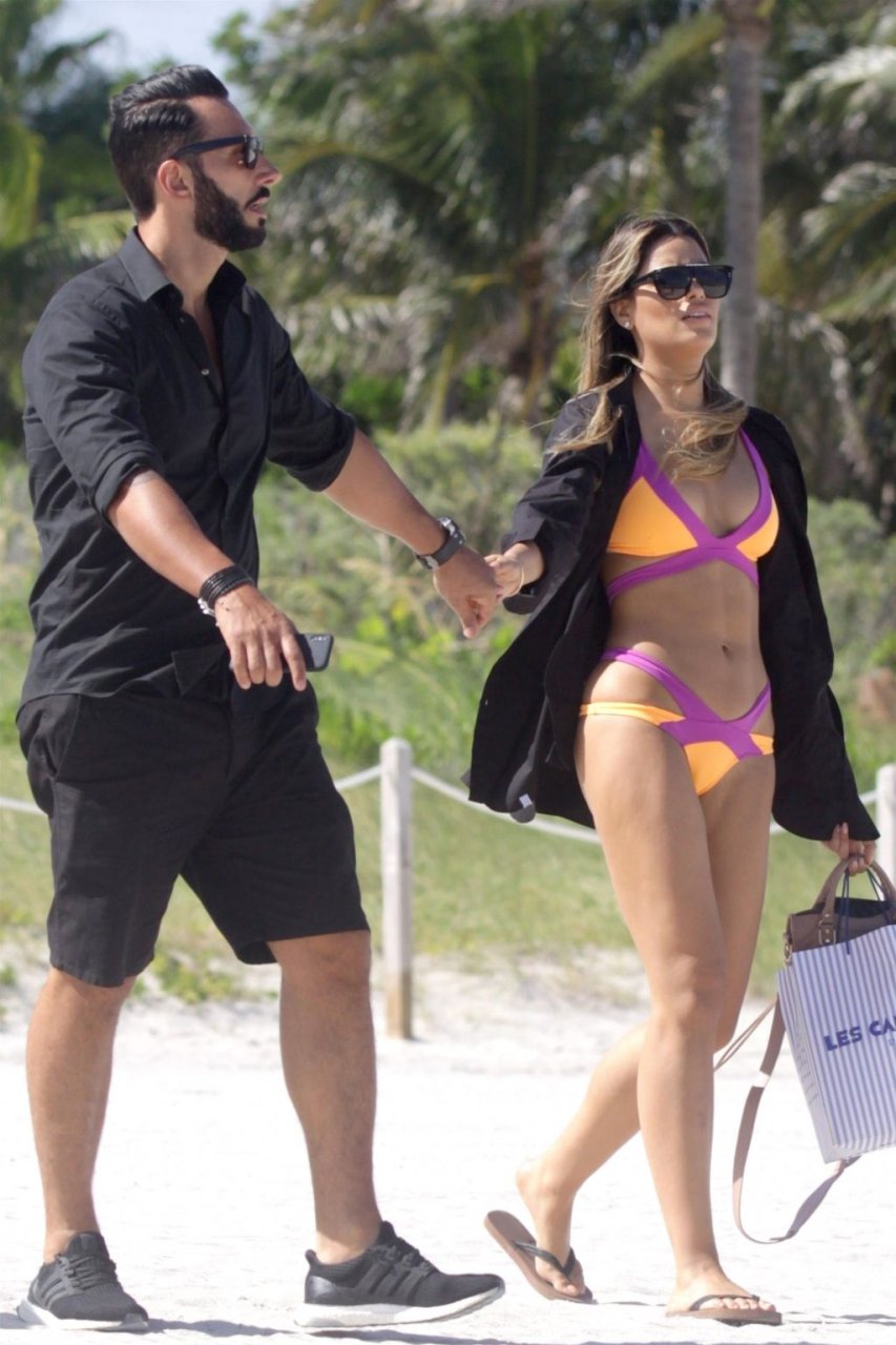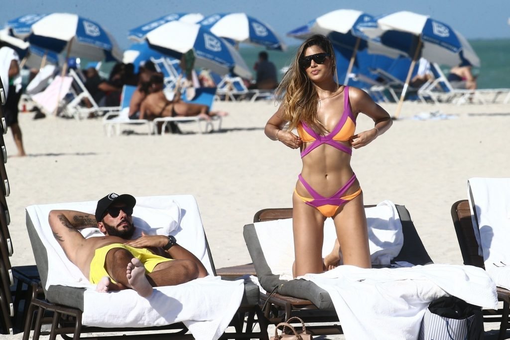 Colombiana sexy, la ex Miss Universo de 24 años, Ariadna Gutierrez, mostró su cuerpo en bikini jugando con una amiga en la playa de Miami Beach, 30/08/2018.