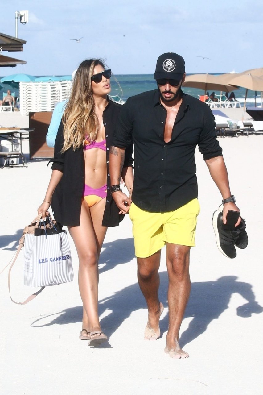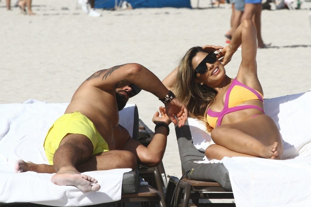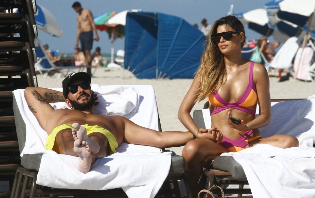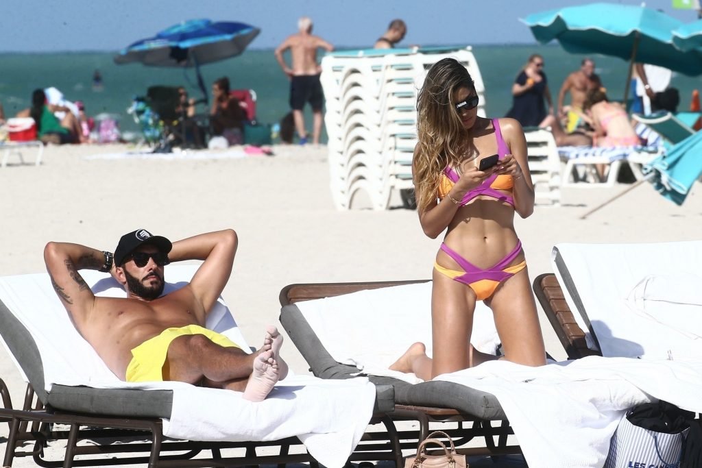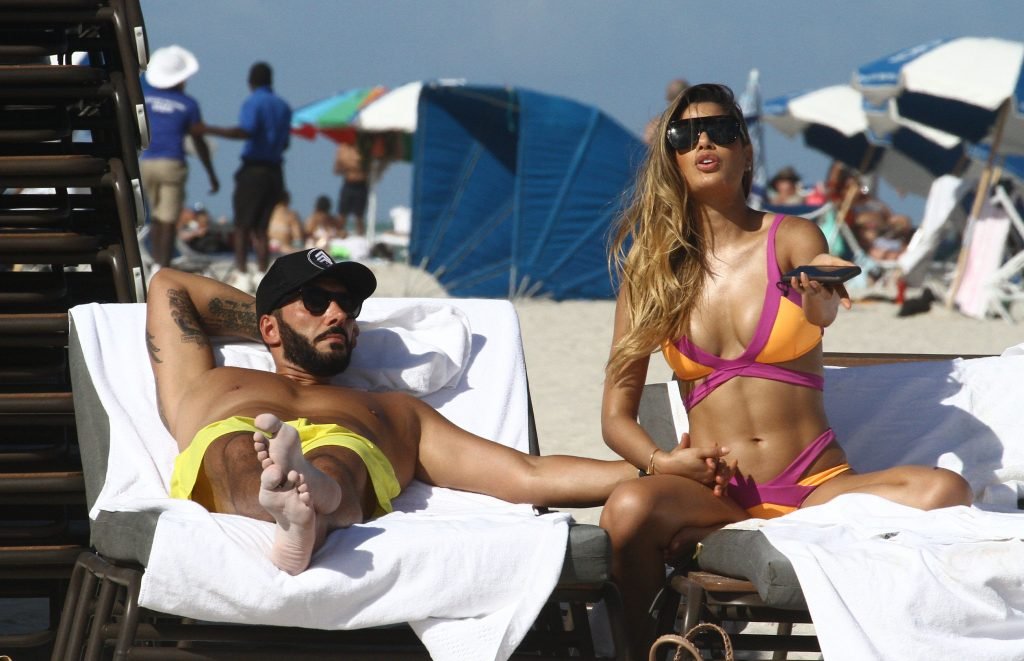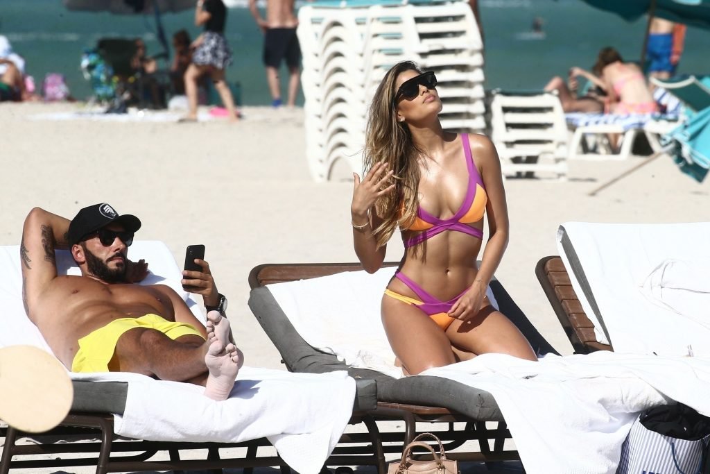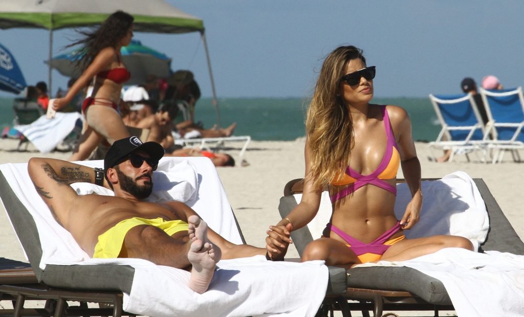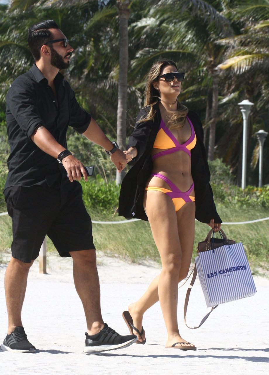 Colombiana sexy, la ex Miss Universo de 24 años, Ariadna Gutierrez, mostró su cuerpo en bikini jugando con una amiga en la playa de Miami Beach, 30/08/2018.