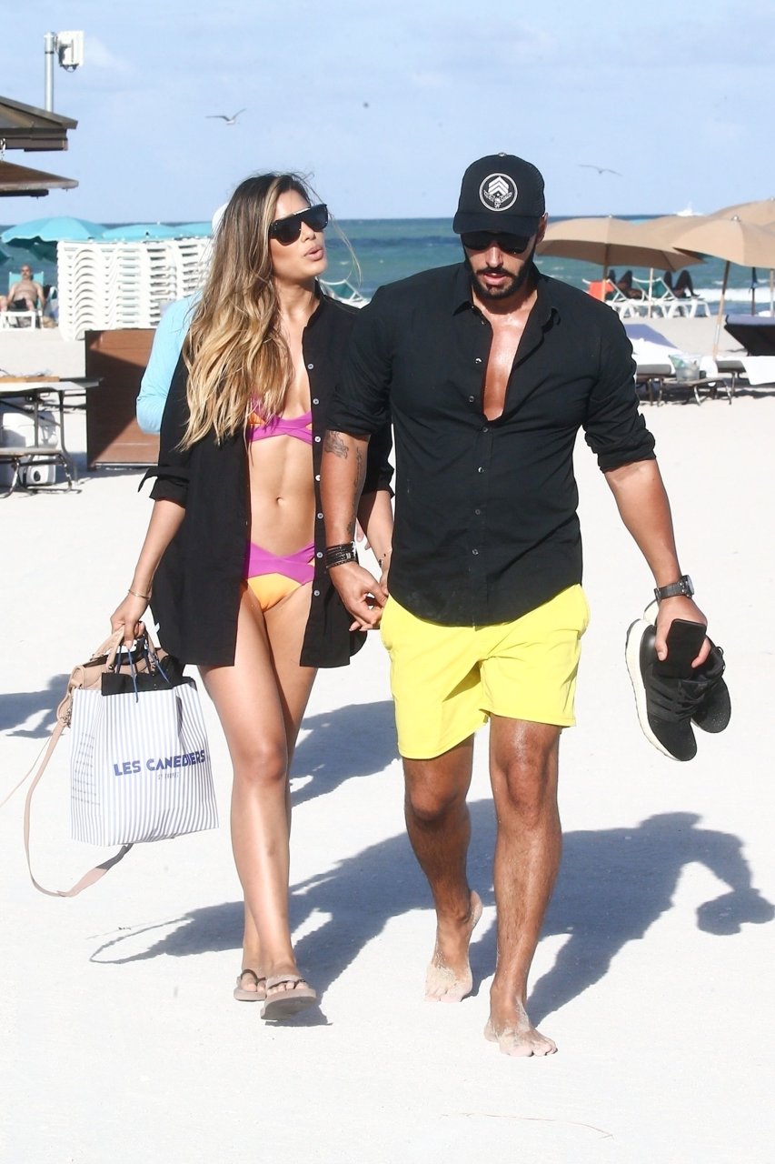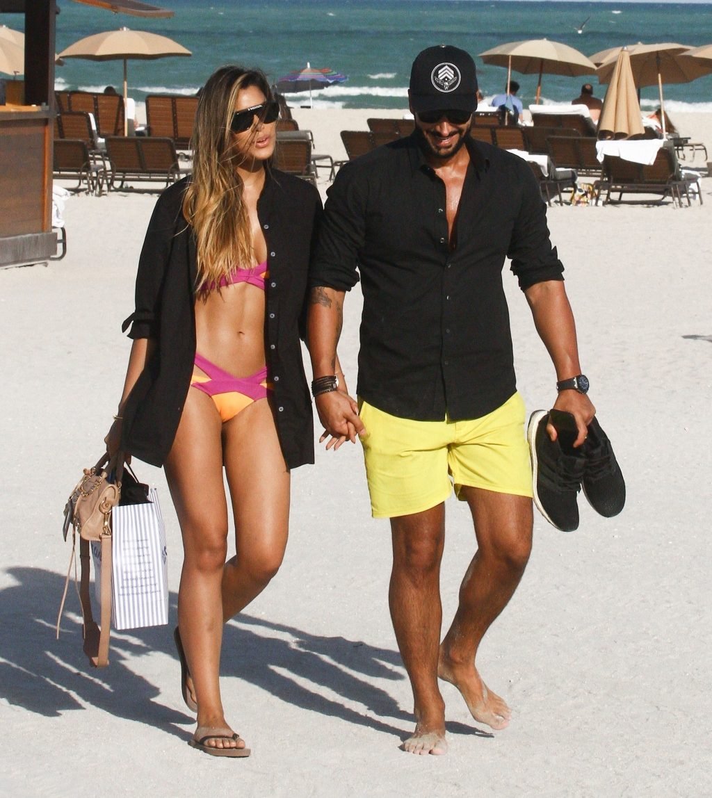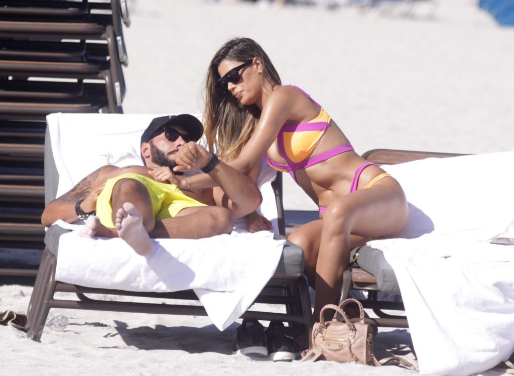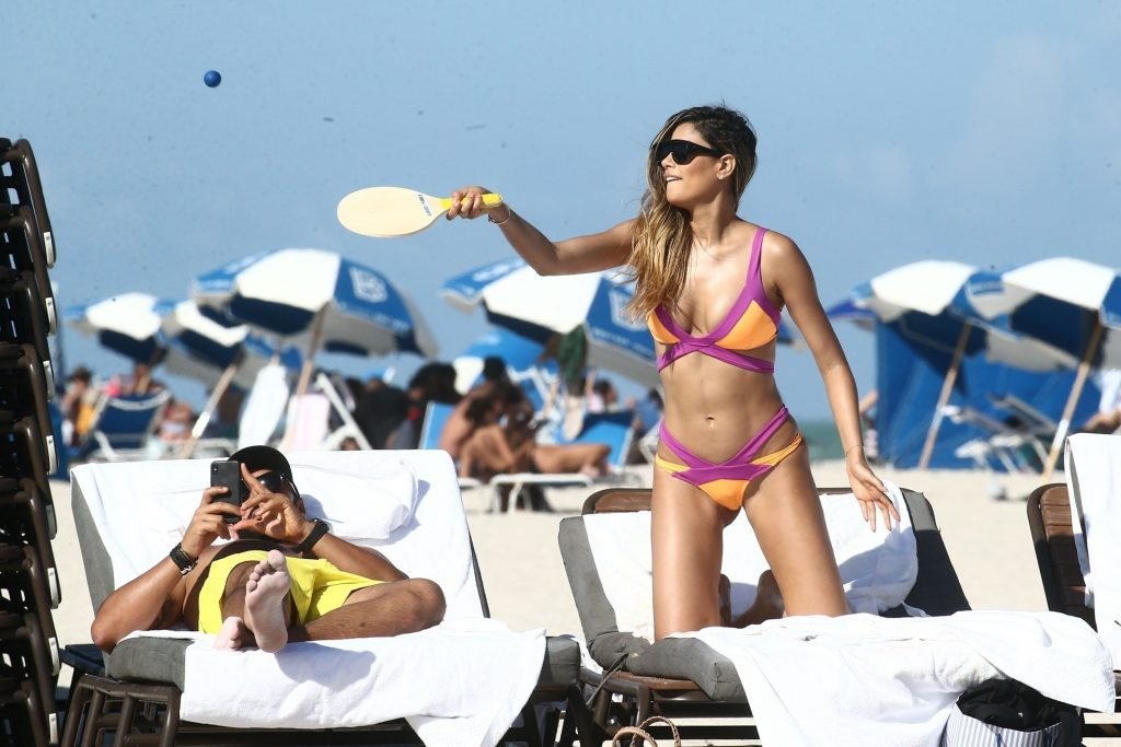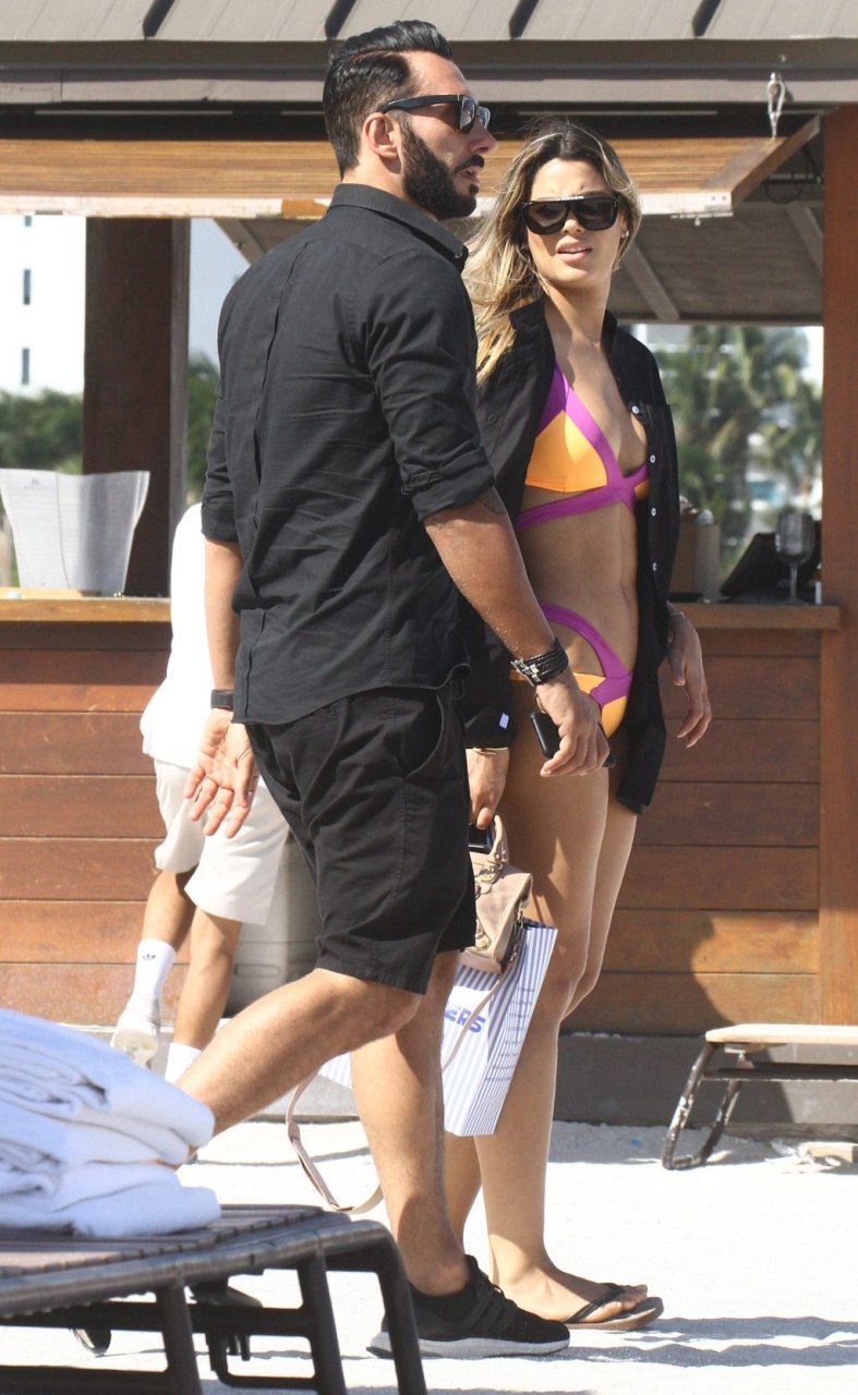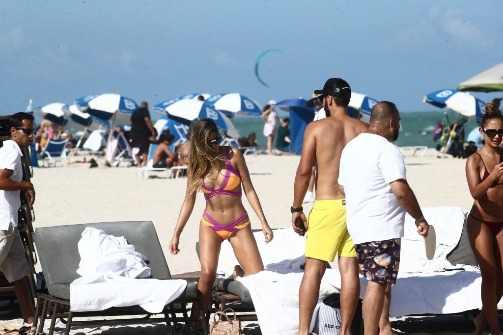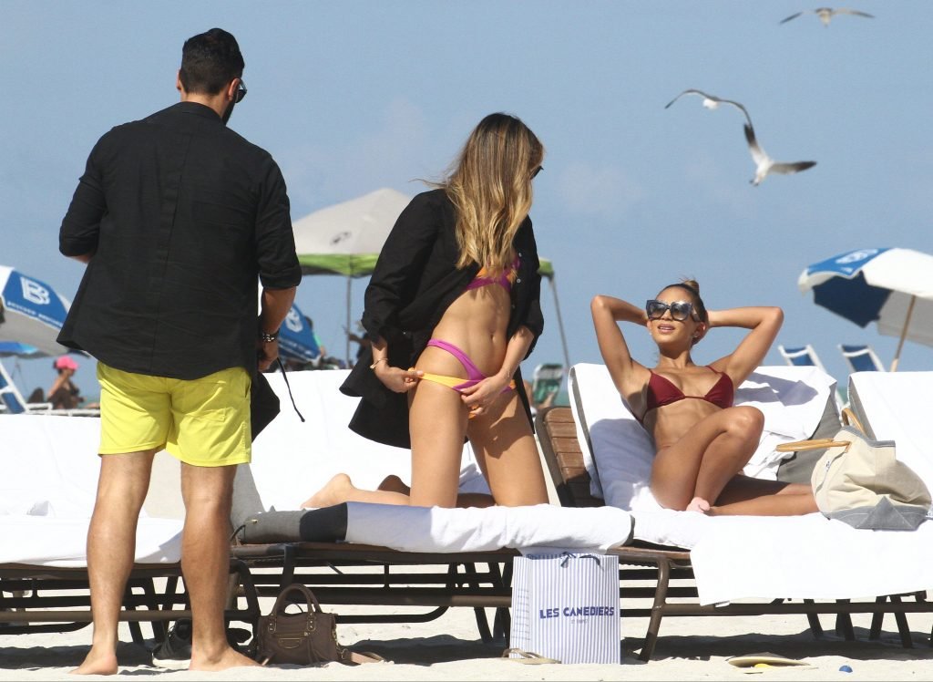 Colombiana sexy, la ex Miss Universo de 24 años, Ariadna Gutierrez, mostró su cuerpo en bikini jugando con una amiga en la playa de Miami Beach, 30/08/2018.