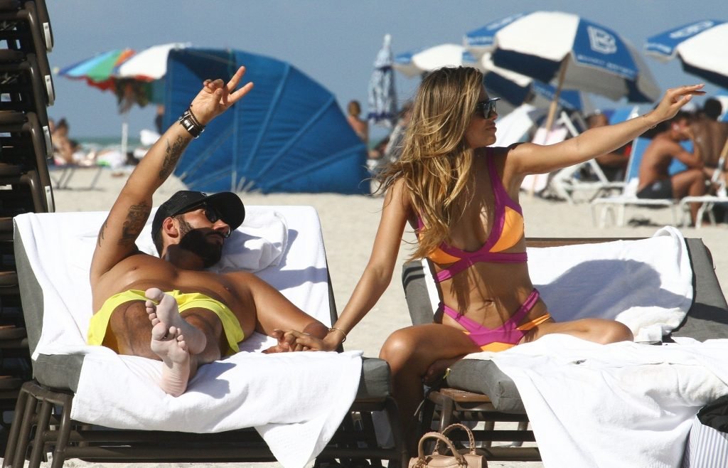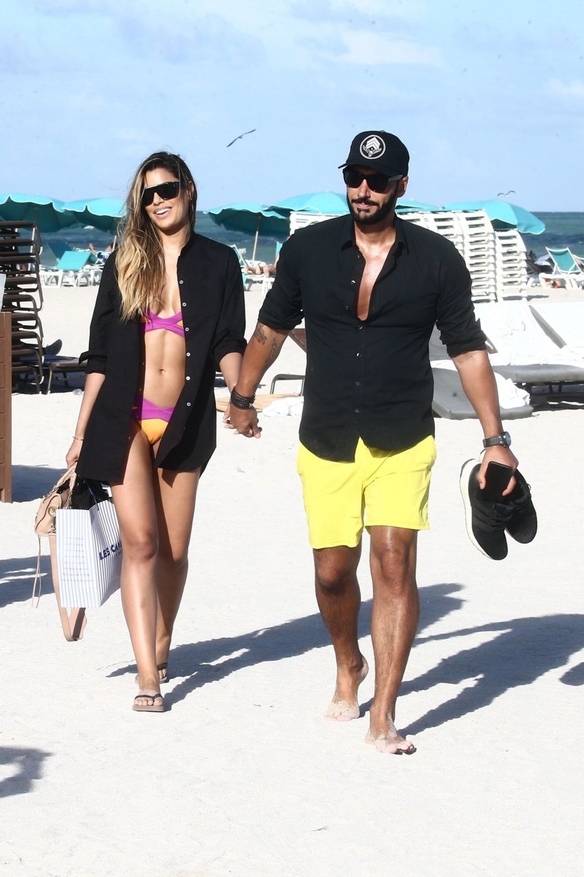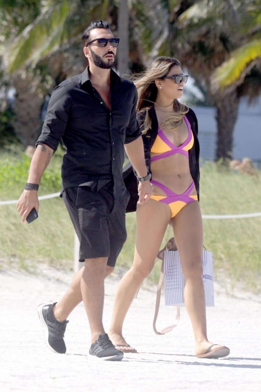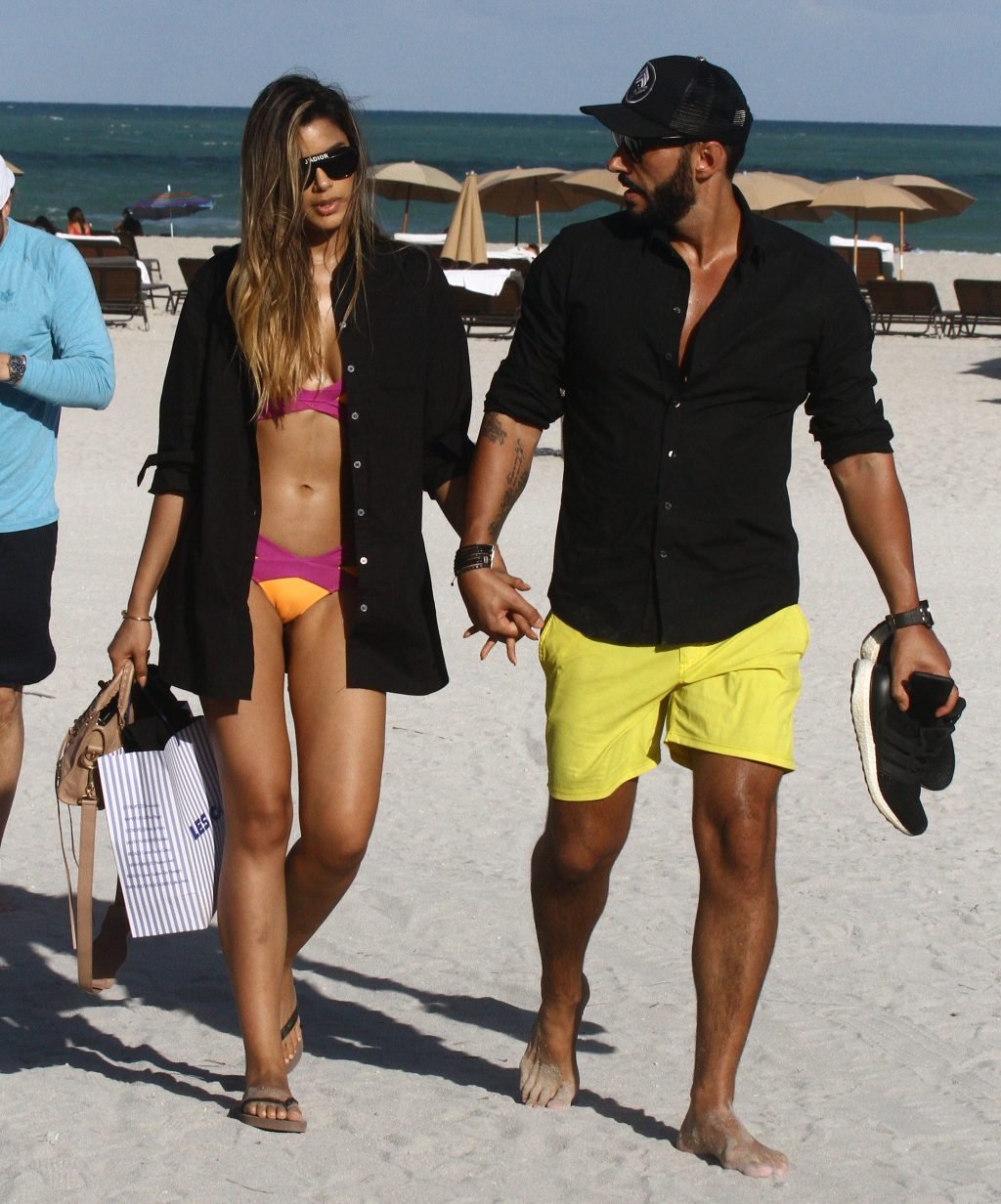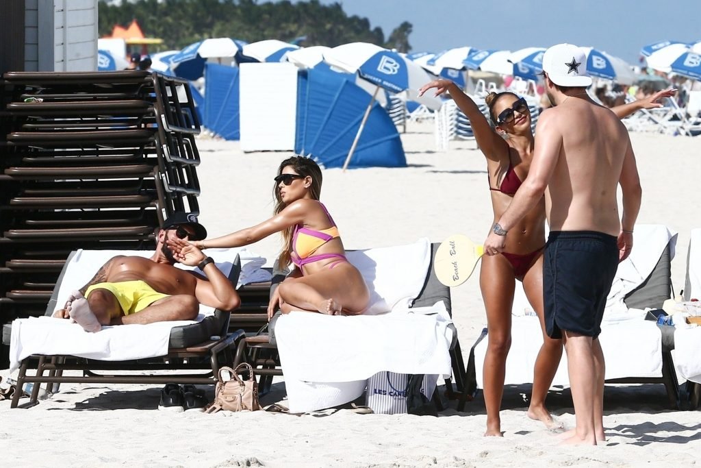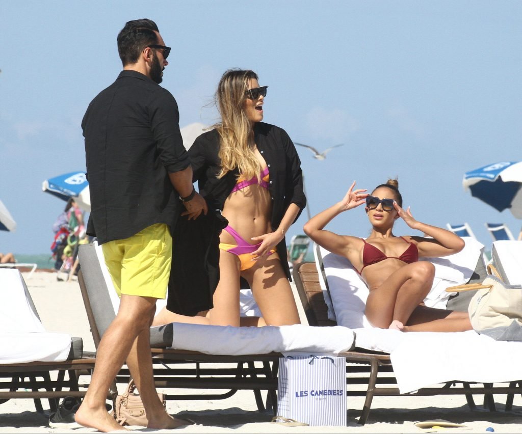 Colombiana sexy, la ex Miss Universo de 24 años, Ariadna Gutierrez, mostró su cuerpo en bikini jugando con una amiga en la playa de Miami Beach, 30/08/2018.
