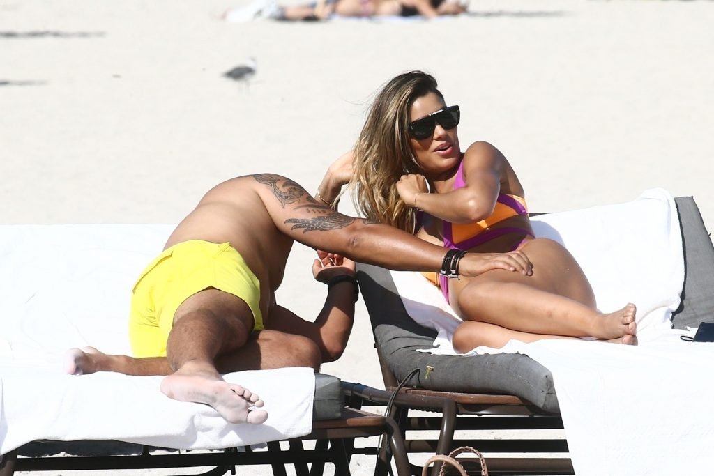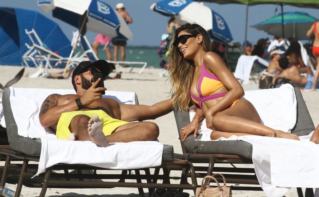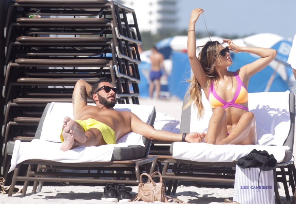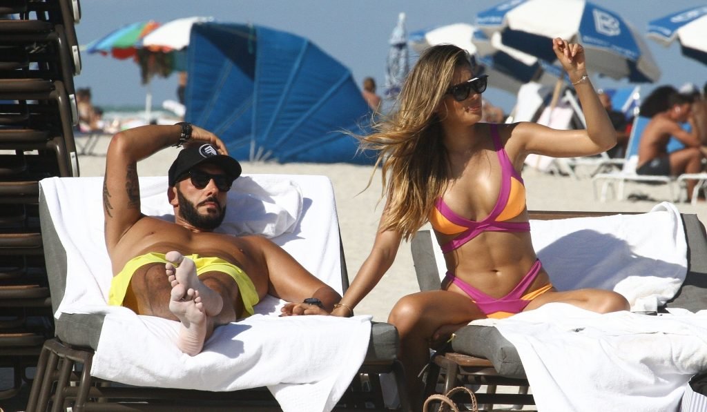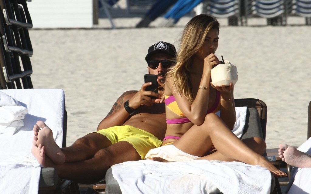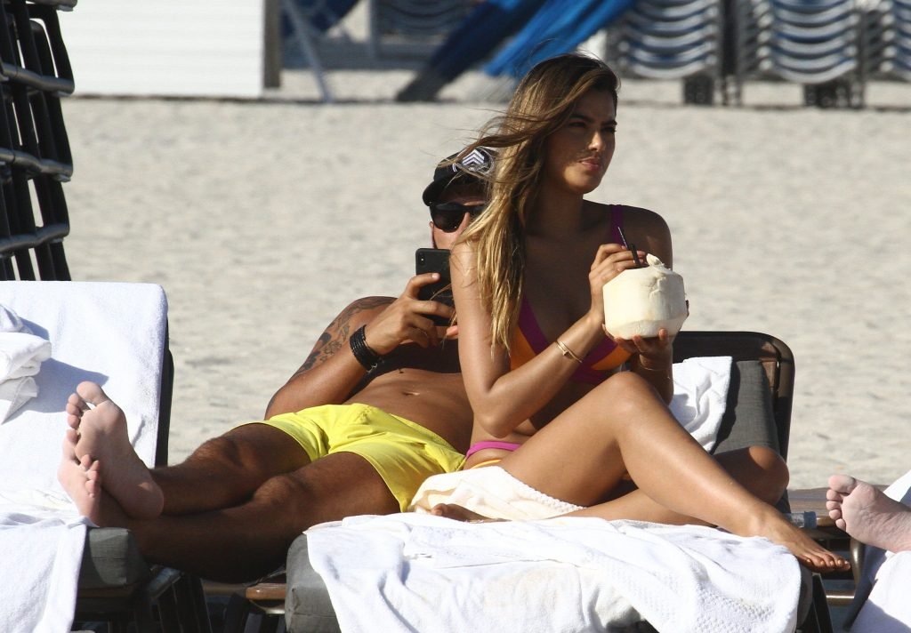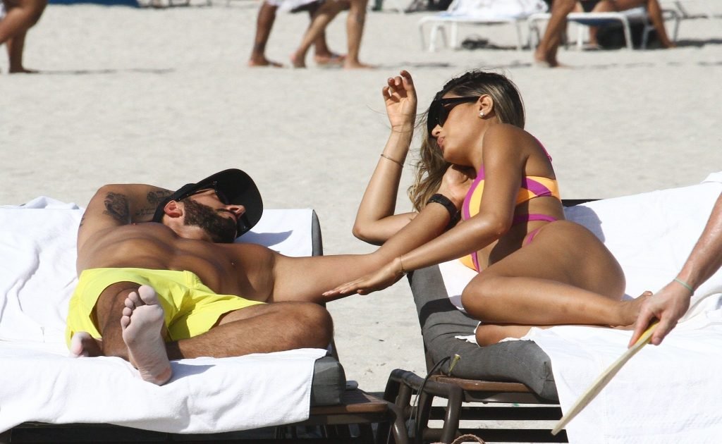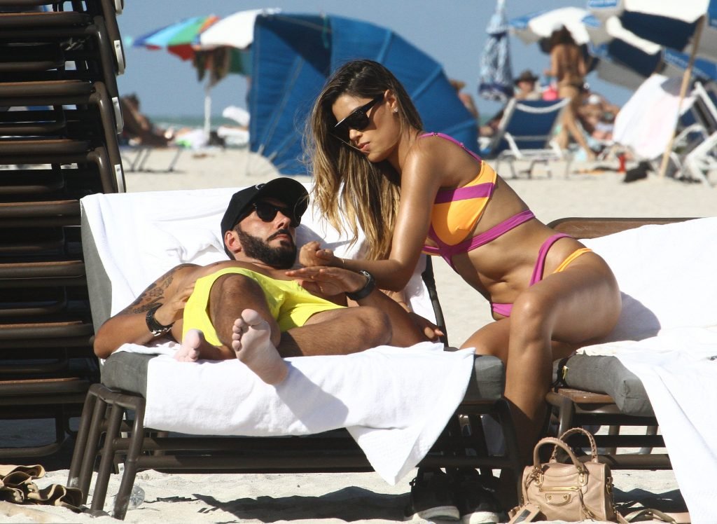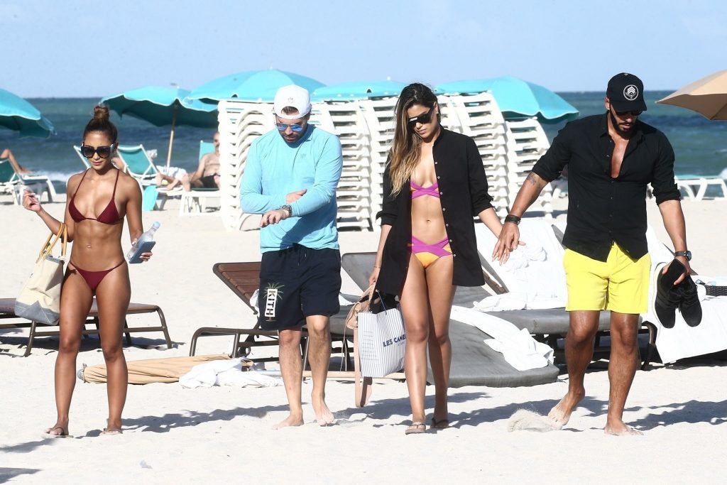Colombiana sexy, la ex Miss Universo de 24 años, Ariadna Gutierrez, mostró su cuerpo en bikini jugando con una amiga en la playa de Miami Beach, 30/08/2018.