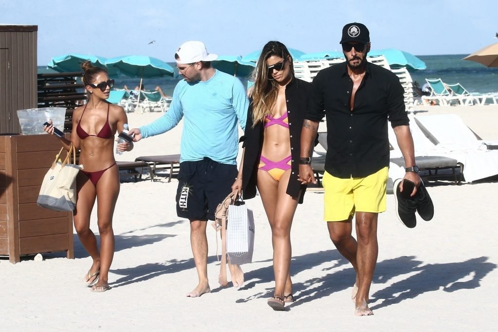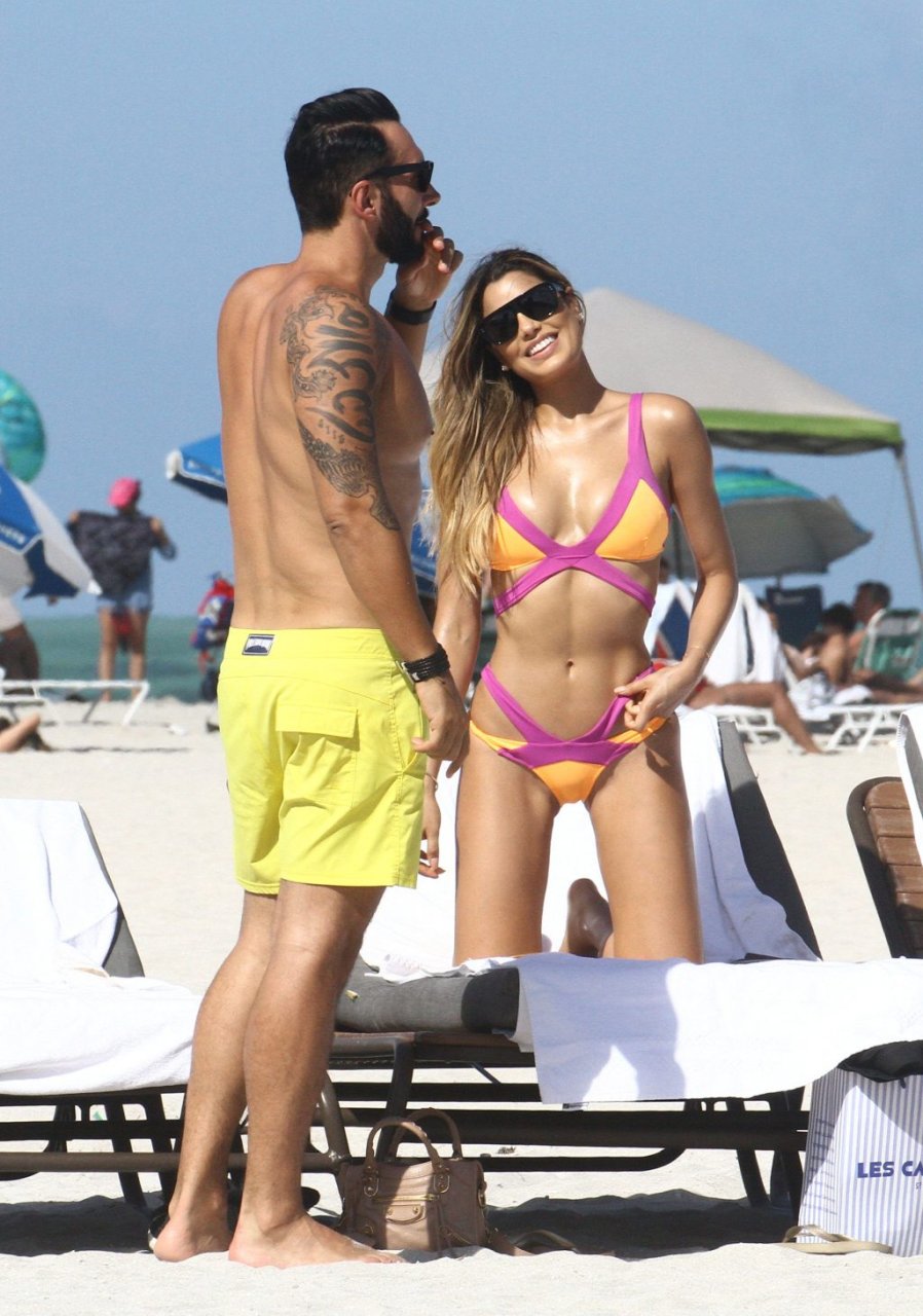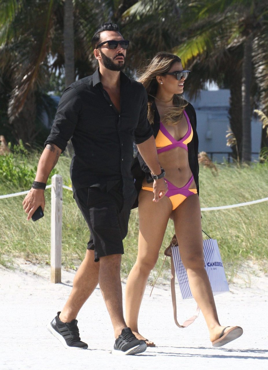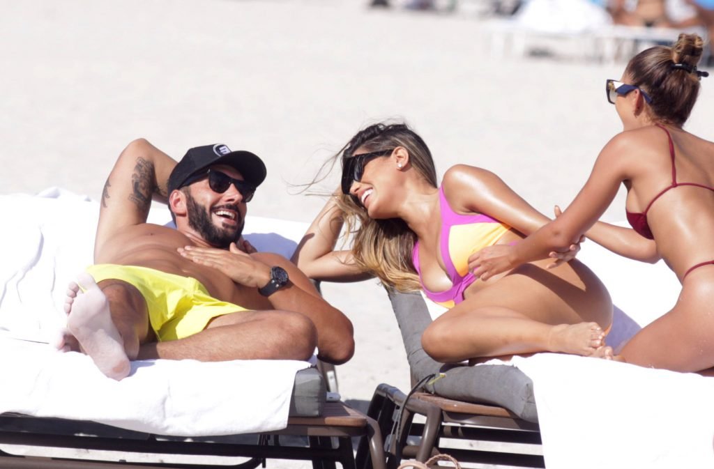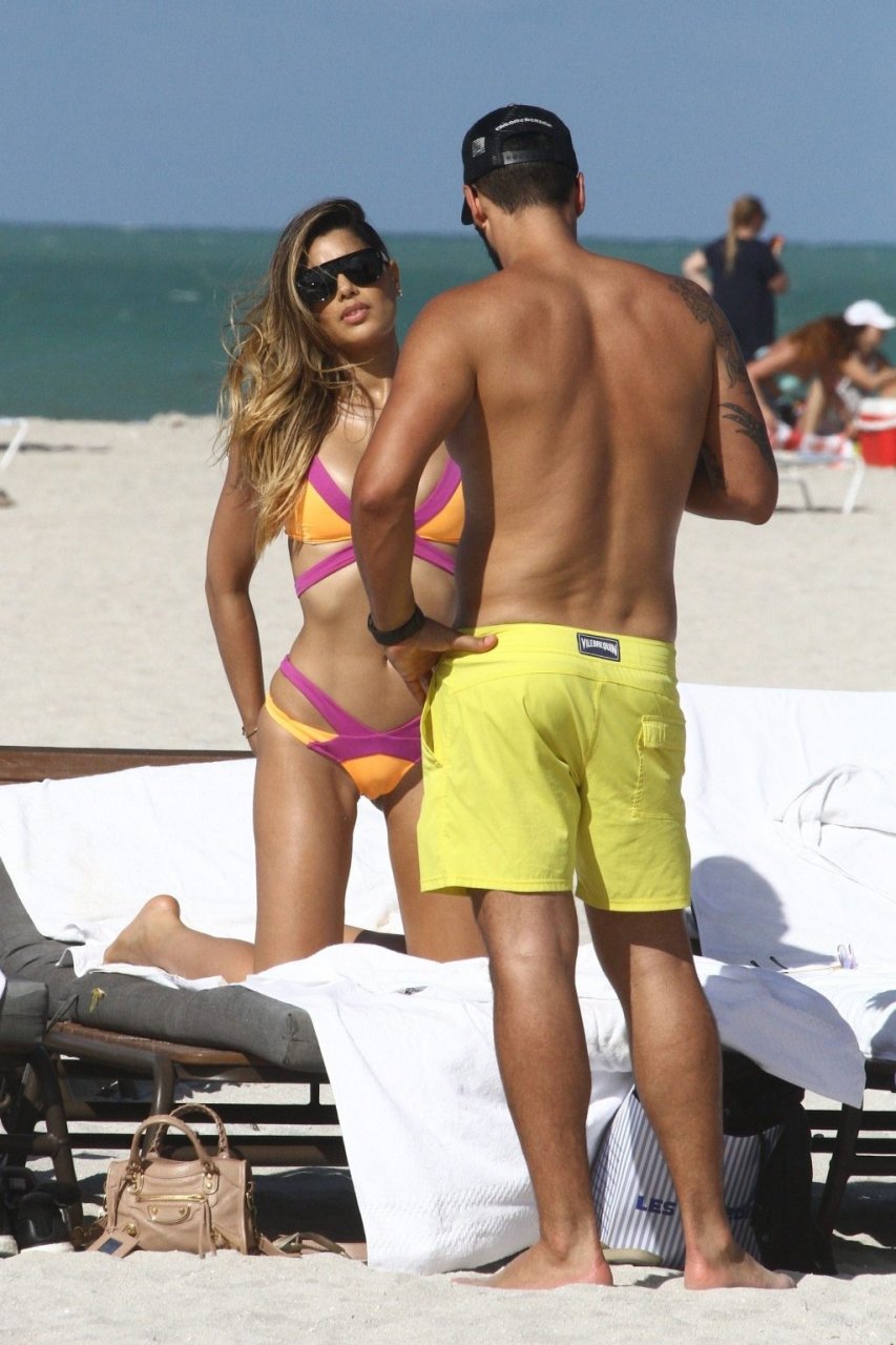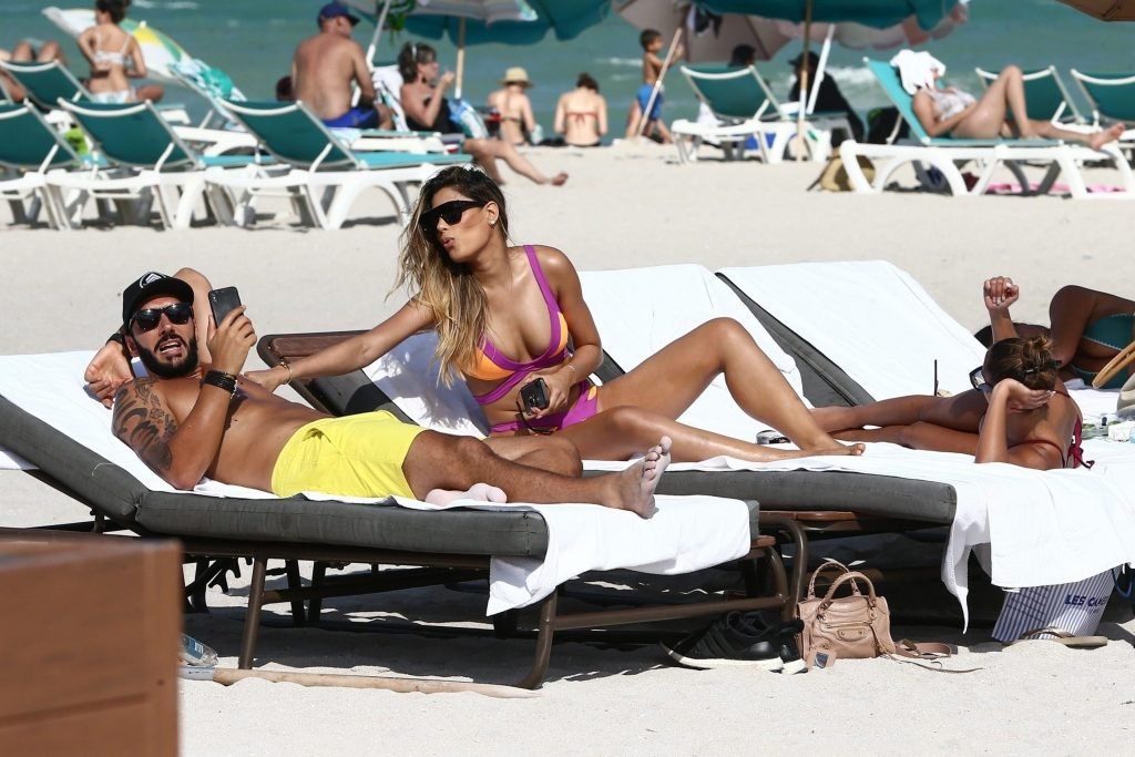 Colombiana sexy, la ex Miss Universo de 24 años, Ariadna Gutierrez, mostró su cuerpo en bikini jugando con una amiga en la playa de Miami Beach, 30/08/2018.