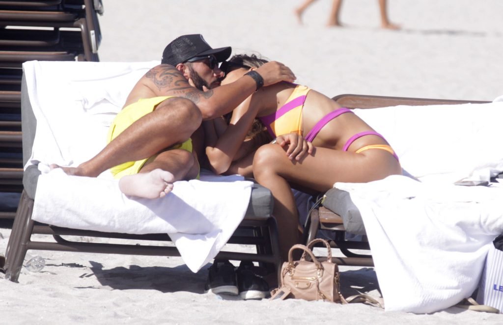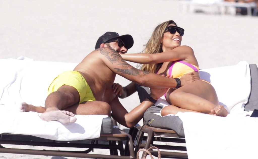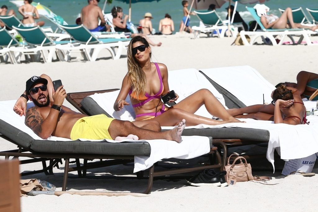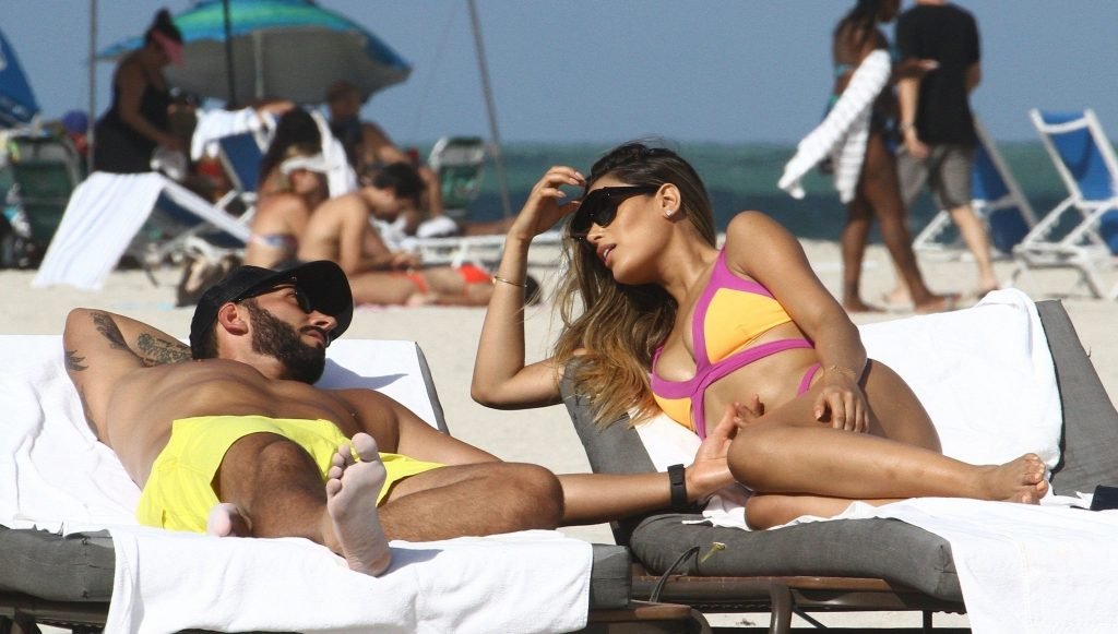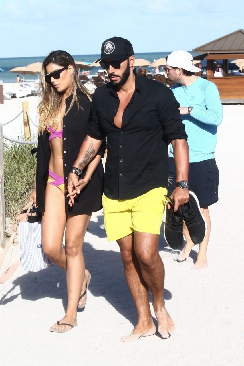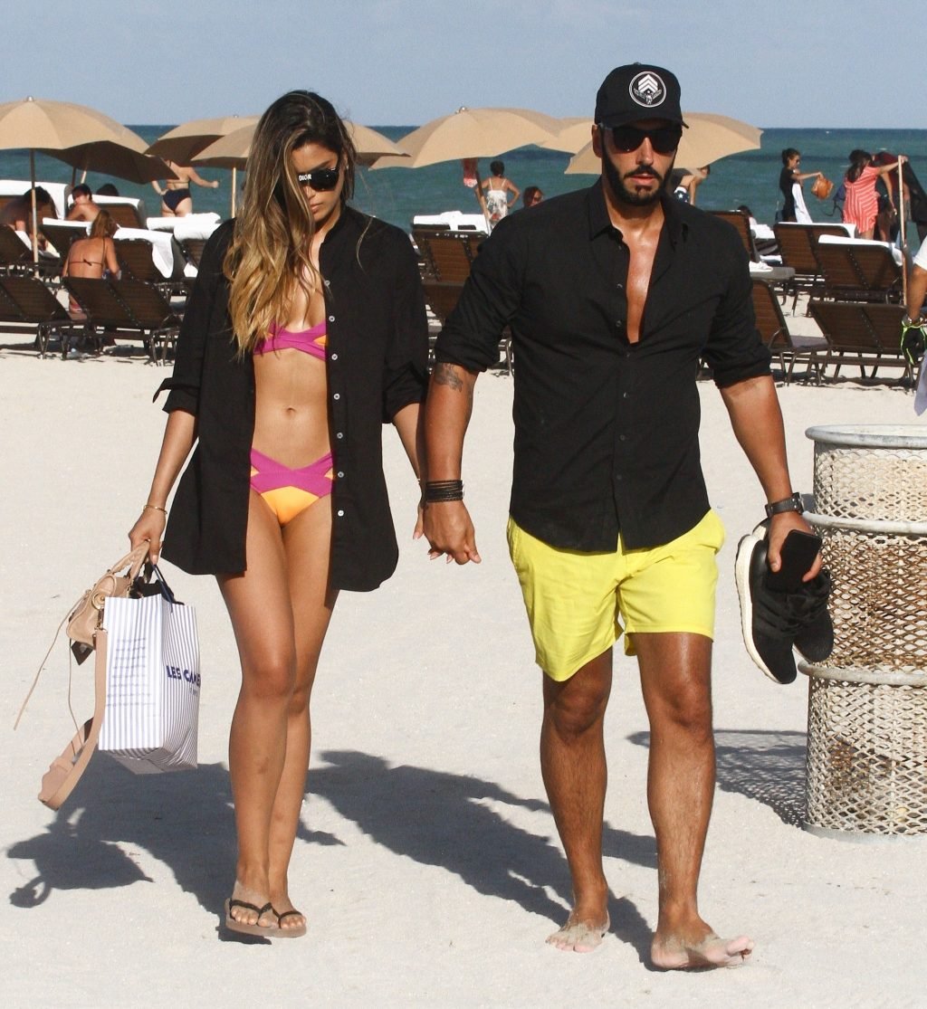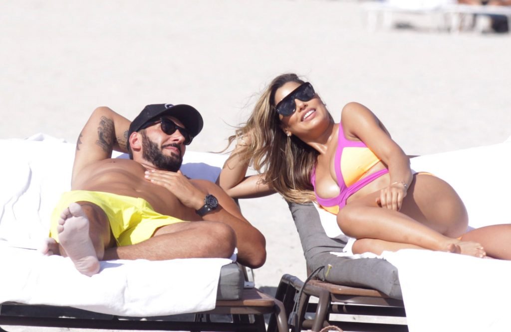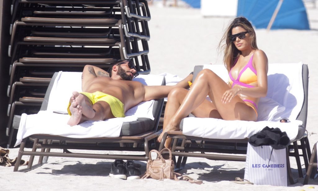 Colombiana sexy, la ex Miss Universo de 24 años, Ariadna Gutierrez, mostró su cuerpo en bikini jugando con una amiga en la playa de Miami Beach, 30/08/2018.